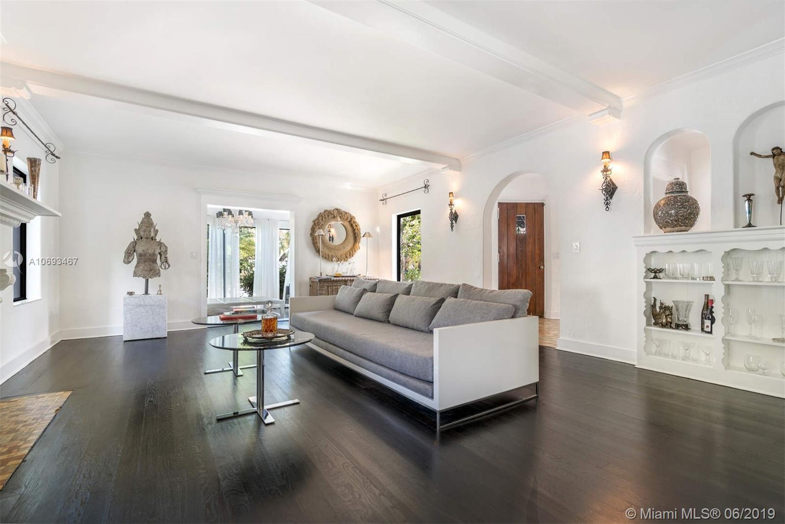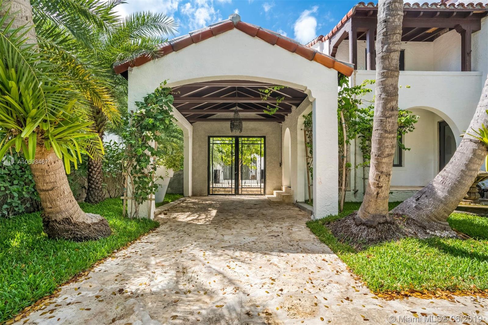 Stunning old Spanish style remodeled home with 3600+ square feet. Brand new barrel roof, impact windows, master bath, new custom kitchen, brand new Subzero fridge & La Cornue oven & hood fan combo. Huge living room w/ fireplace & hardwood floors. TV/media room off the living room. 1st floor bdrm (4th bdrm) or office with private side entrance. Brand new pool & patio areas. Guest home can be finished to the buyers needs (guest home/spa/office/5th bdrm- buyers choice. Three bdrms upstairs all very good sized. Balcony off the master (front) & balcony off the back bdrm. Circular driveway for easy in & out. Off street parking for 6 cars + carport. Master bath suite has solid copper soaking tub & separate dual heads shower room. This elegant home offers exterior patio/lounge area and private sec