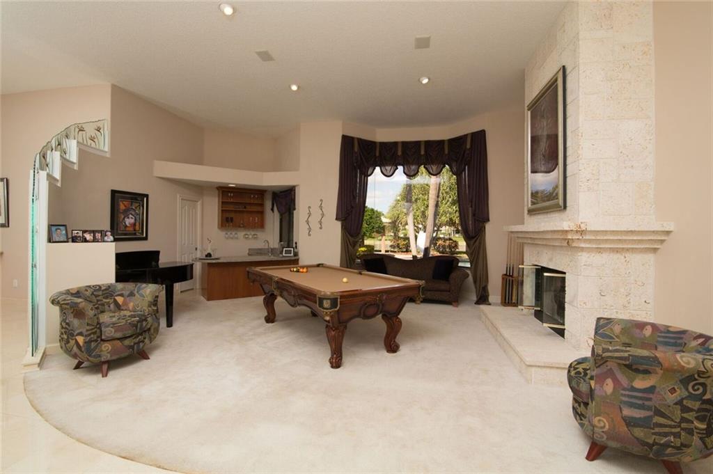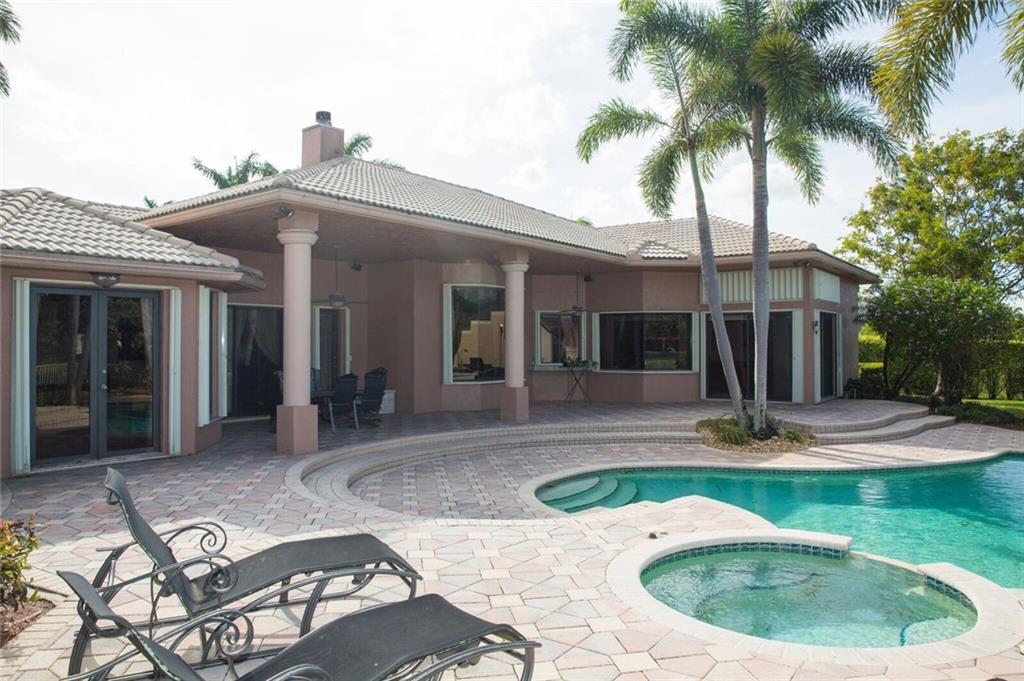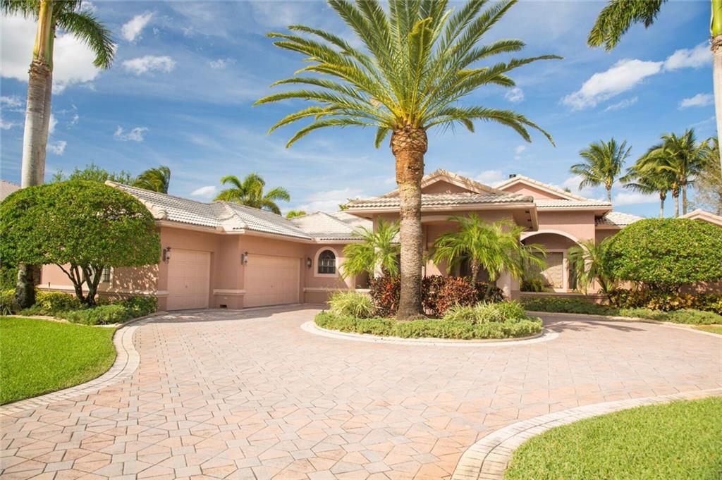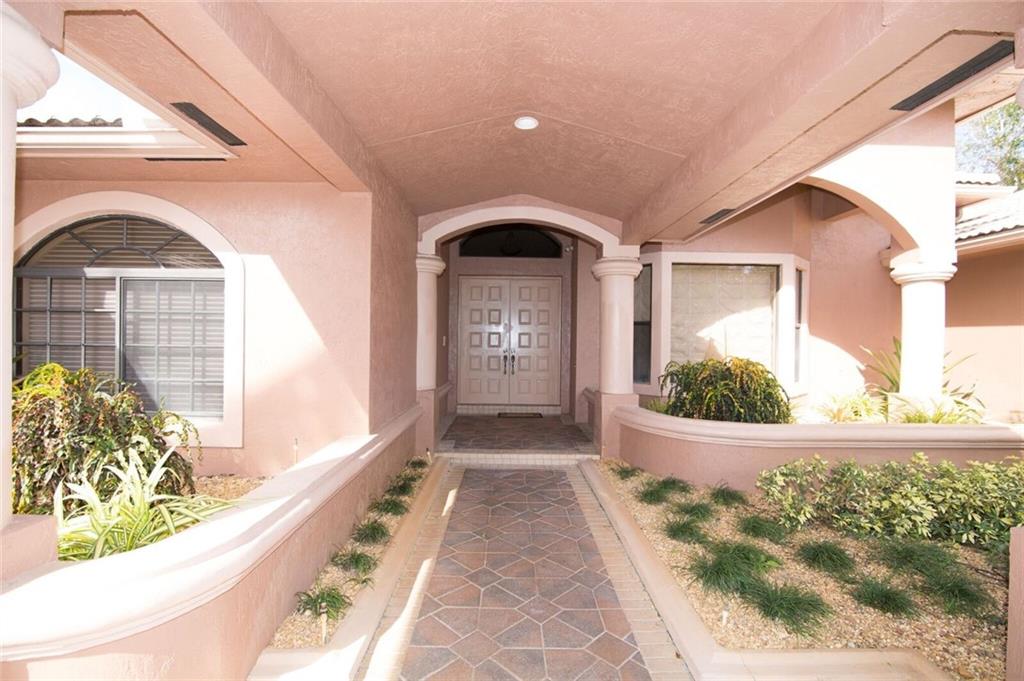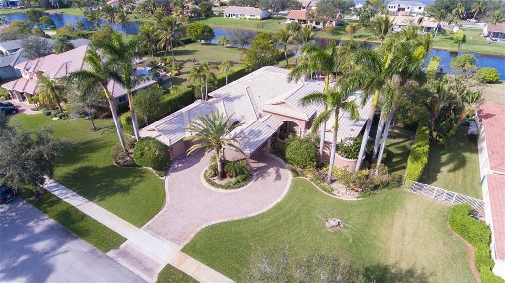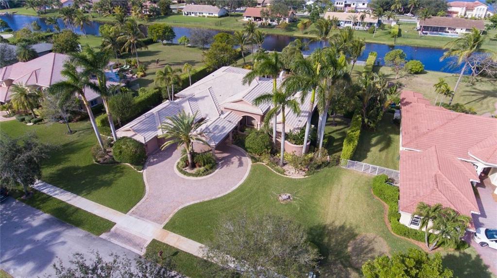 Spectacular waterfont home in guard gated community of Westridge. 5 bdrms + a den / office & a formal dining room. Soaring volume ceilings. Gourmet kitchen with SS appliances, granite countertops, gas range, wine cooler & breakfast nook. Wet bar. Marble floors. Central vac. Master suite features walk in closets, spa bath. Accordion shutters. Private outdoor oasis with a sparkling pool, covered summer kitchen & a spacious yard overlooking the water. 3 car garage + extended circular driveway. A must see.
