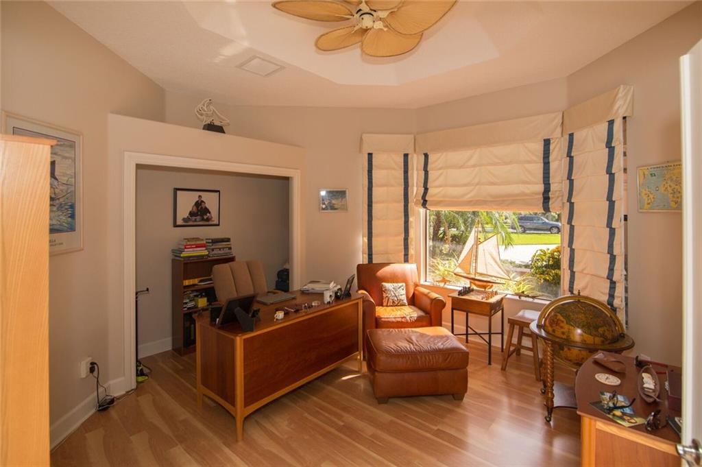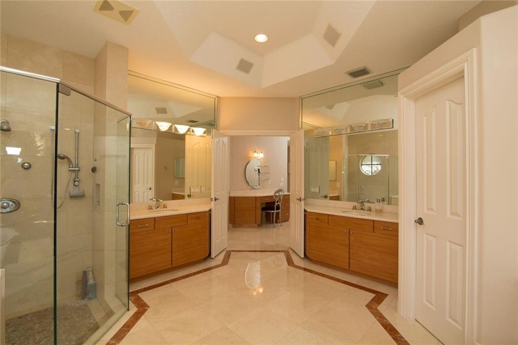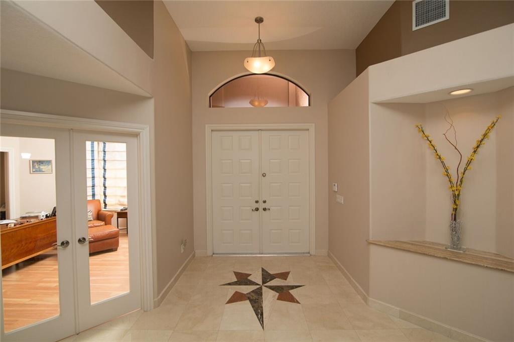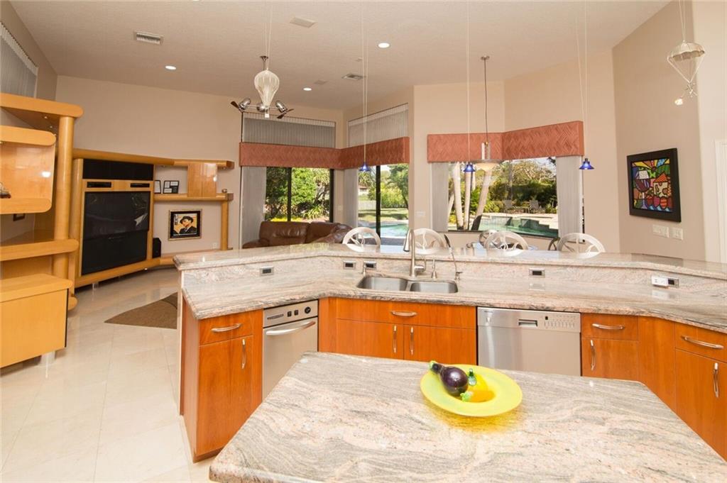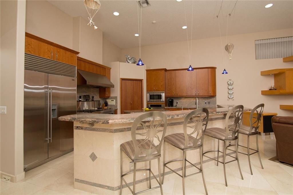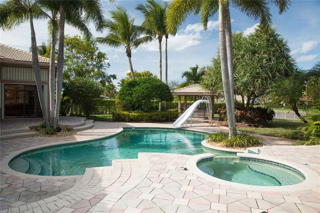 Spectacular waterfont home in guard gated community of Westridge. 5 bdrms + a den / office & a formal dining room. Soaring volume ceilings. Gourmet kitchen with SS appliances, granite countertops, gas range, wine cooler & breakfast nook. Wet bar. Marble floors. Central vac. Master suite features walk in closets, spa bath. Accordion shutters. Private outdoor oasis with a sparkling pool, covered summer kitchen & a spacious yard overlooking the water. 3 car garage + extended circular driveway. A must see.