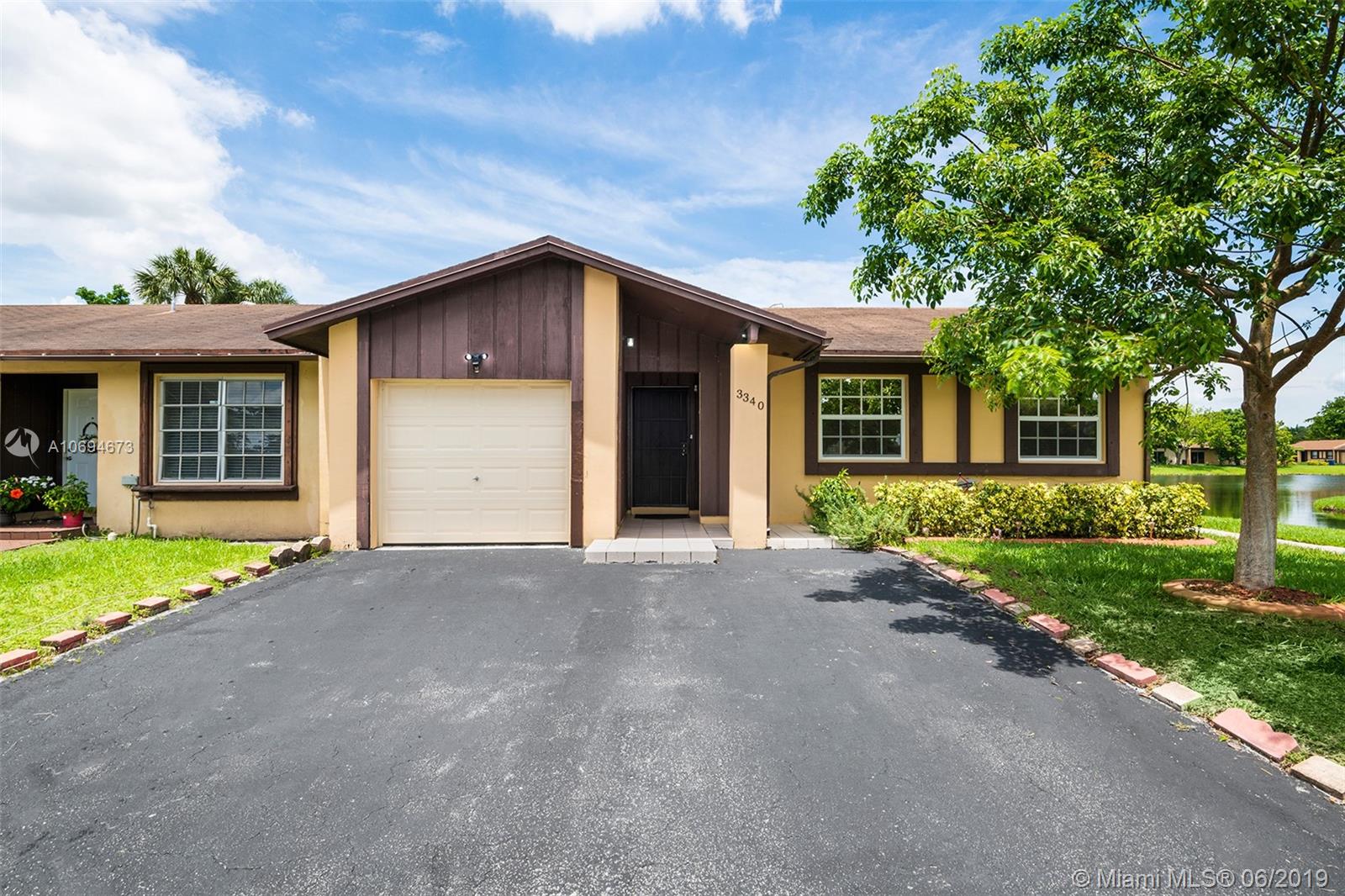Beautiful 3 bedroom 2 bathroom home with one car garage in Miramar! Highly sought-after corner unit (no neighbors on one side) has a wonderful view of the canal. Home faces east. The interior features tile floors, wood kitchen cabinets, walk-in closet, and screened in patio for additional living space. Great location! Close to schools, shopping, highways, etc. A must see, bring your pickiest buyer!