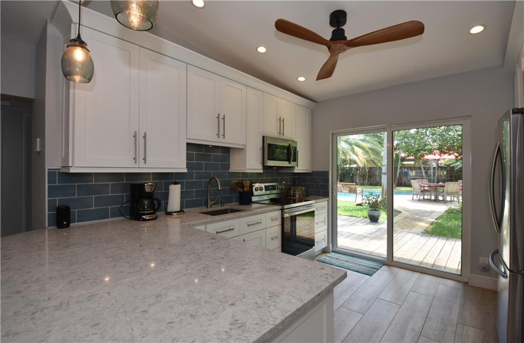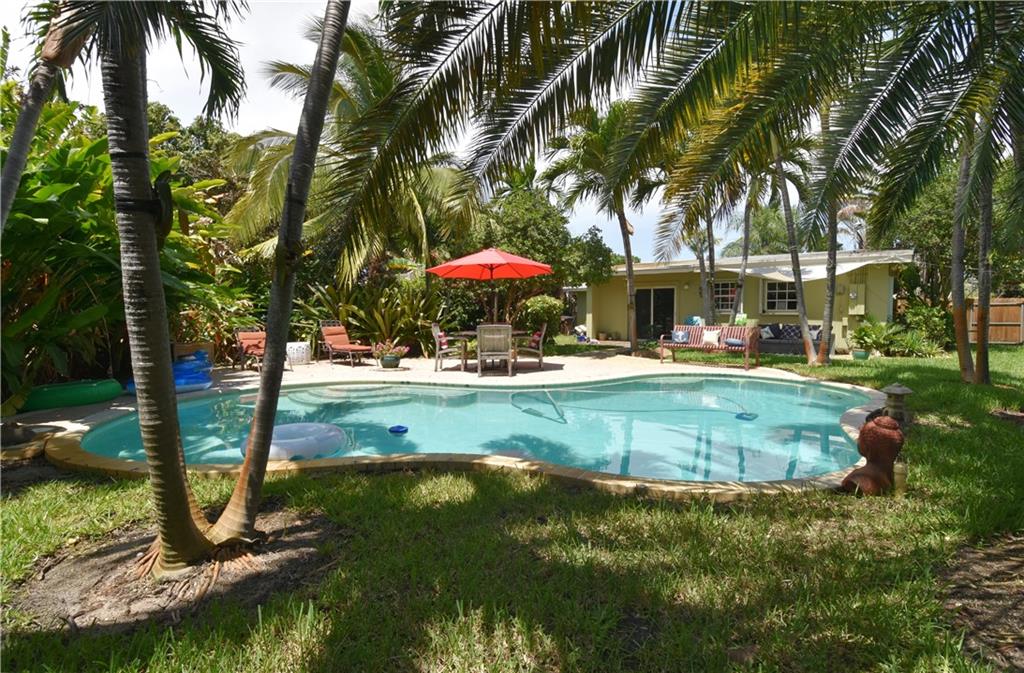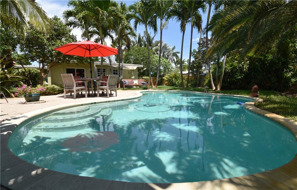 Perfectly situated Poinsettia Heights home ready for you to move in and make it your own. This charming home has an open floor plan with a Florida room, living room and impeccably remodeled kitchen all flowing into one another. The backyard is park-like with a gorgeous pool and ample grounds for entertaining and gardening. Other features include: pavers, vaulted ceilings with wooden beams, porcelain floors & carport.
