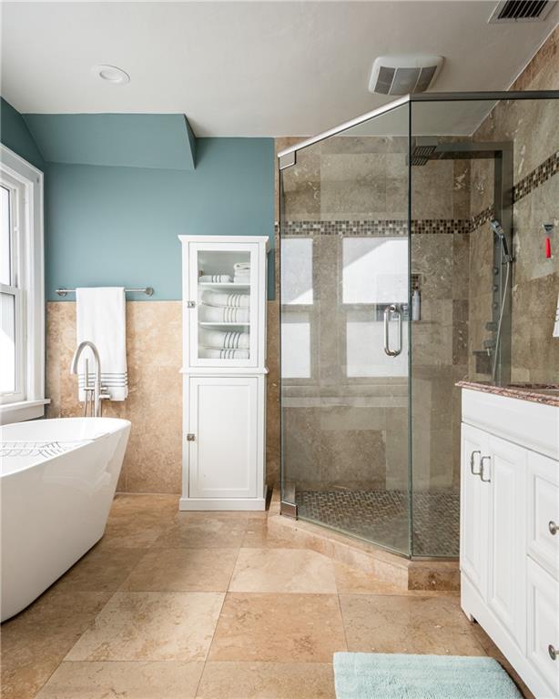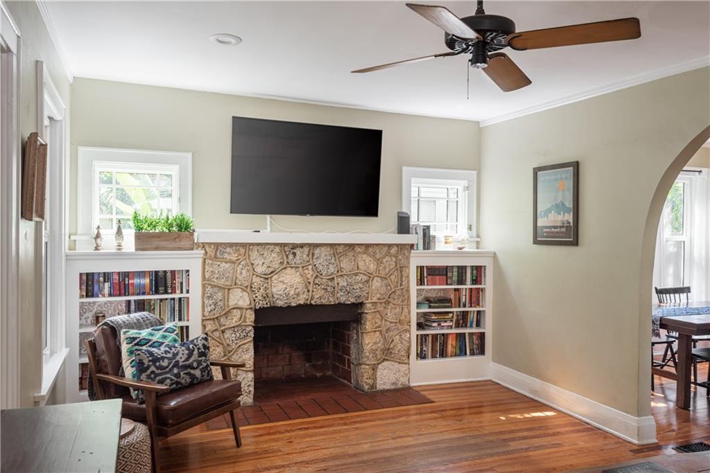 • Интерьер:BuiltinFeatures, ClosetCabinetry, Fireplace, GardenTubRomanTub, HighCeilings, LivingDiningRoom, UpperLevelMaster, WalkInClosets