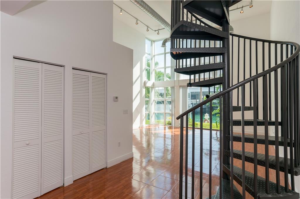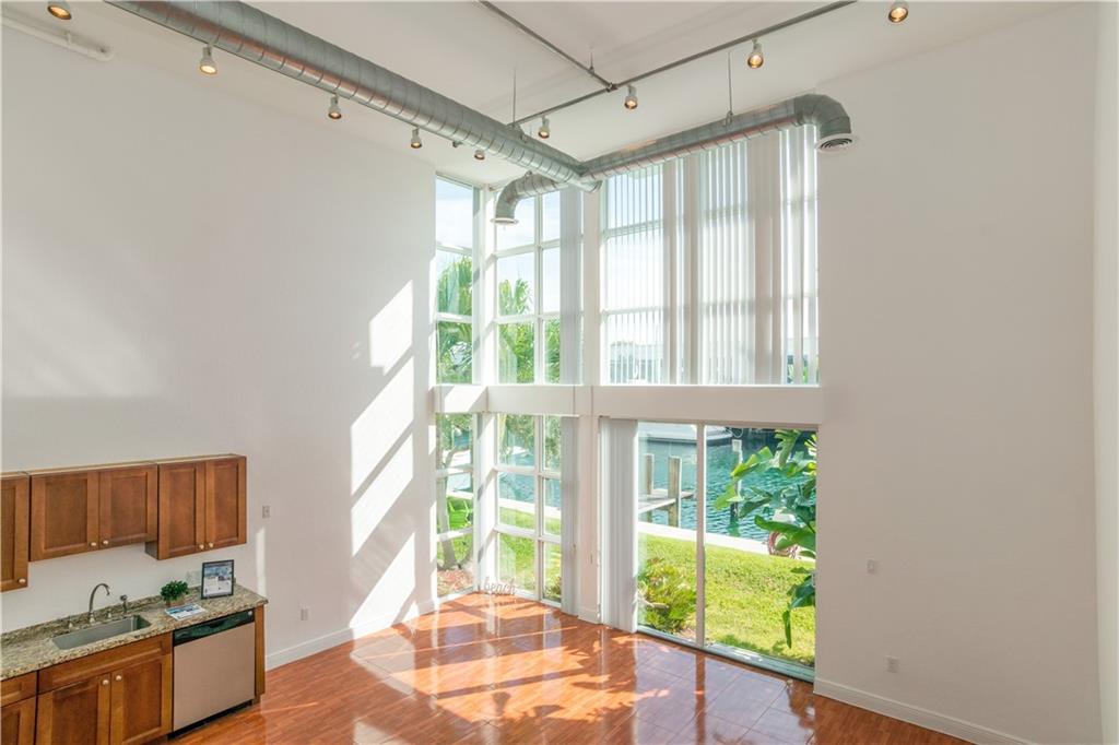 LOFT LIVING - Calling all Boaties and Yachties. Modern loft in 8 unit boutique complex in a PRIME location. Ground floor unit with voluminous 18' ceilings, floor to ceiling windows to enjoy the peaceful views of the wide canal where ocean access is only a few min away with no fixed bridges. Really wonderful light throughout. Master upstairs. Updated kitchen with granite counter tops & stainless-steel appliances. Washer & dryer in the unit. No dock with this unit. Only 8 units in the building. Impact windows. SHORT DISTANCE TO GROCERY STORE AND SOUTH PORT RAW BAR. CLOSET O THE BEACH, DOWNTOWN, HIGHWAYS, RESTAURANTS AND SHOPPING. Association covers building exterior, common area, elevator, insurance, landscaping/lawn maintenance, parking, roof repairs, parking, reserve funds & water.