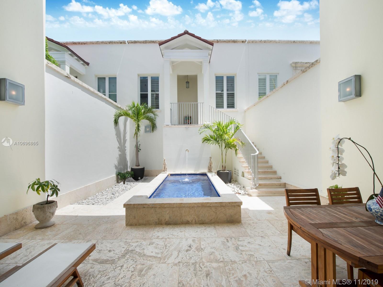 Ceremoniously crafted, Almeria Row No. 645 enjoys spacious living areas with volume ceilings, custom built-ins, skylight, Smart Lutron system, transom windows, 17-ft vaulted ceiling in master, sweeping staircase, walled-in courtyard with a European bath pool and fountain. Its distinct floor plan consists of 2 bedrooms, 2.5 baths in the main house plus separate 2 bedrooms and 2 baths beyond the courtyard and above the 2-car garage. The home is elevator-ready for those preferring this option.