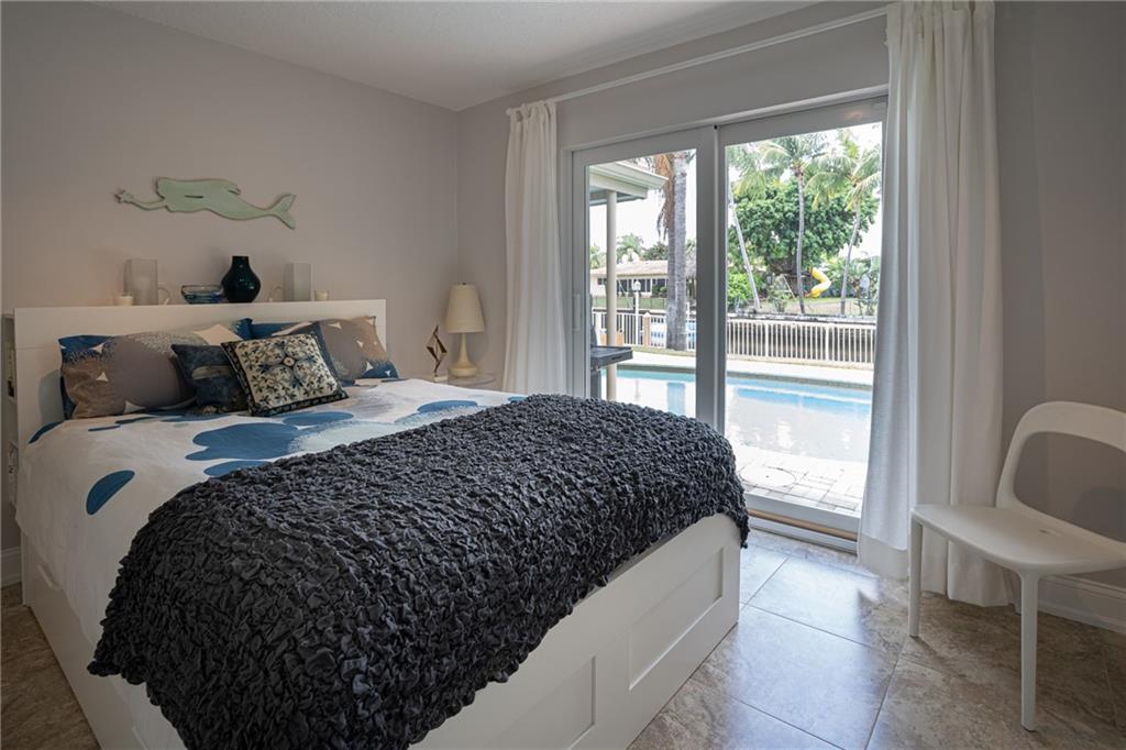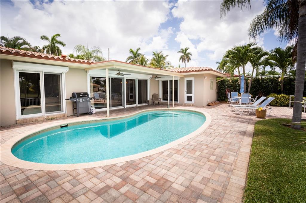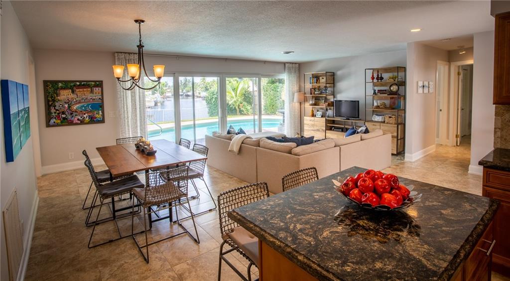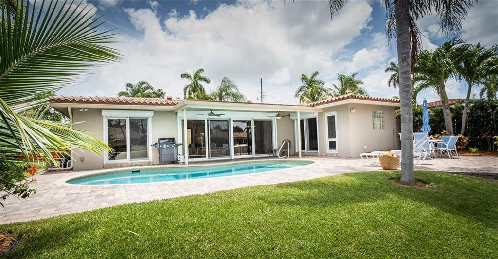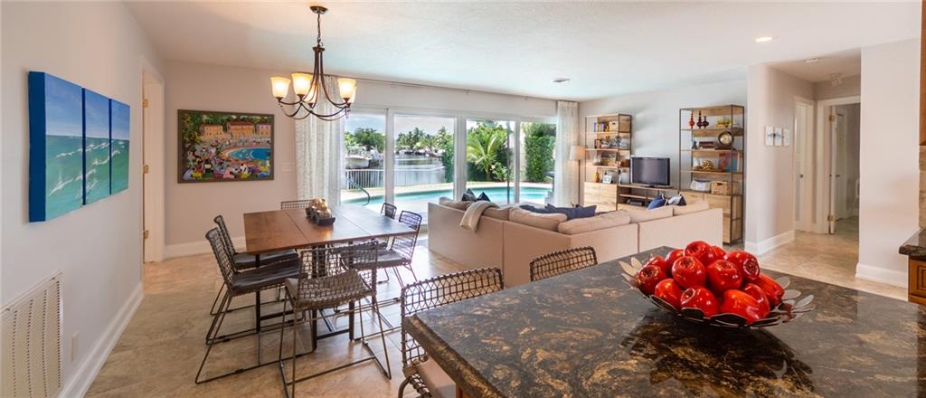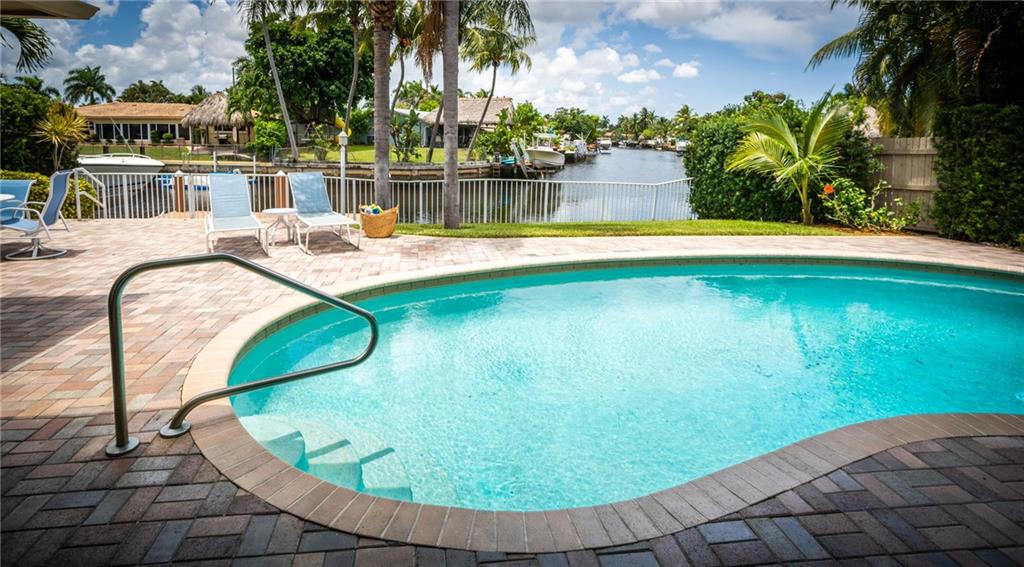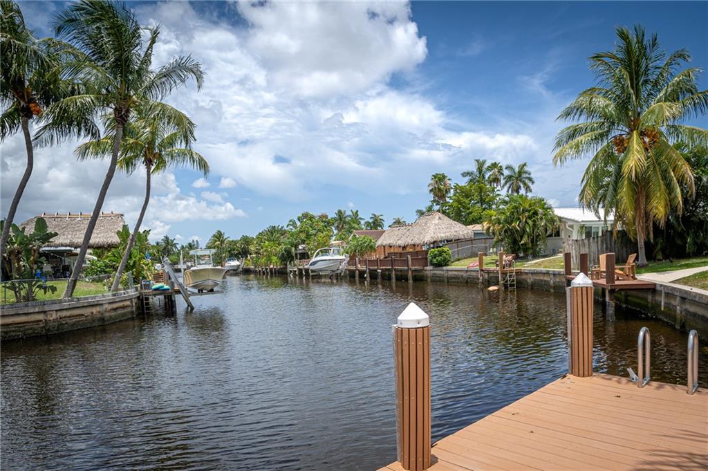 A picture perfect house. Completely redone! Beautiful long canal views with a pristine pool, pavered patio and large yard. Ocean access waterfront & new dock. Circular pavered driveway, mature landscaping, Impact windows & sliders, neutral 24” tile throughout, new bathrooms and organizational storage shelving throughout! Open kitchen with stainless steel appliances, granite and entertainer’s island. A very low maintenance home. Great location. Near numerous schools, easy access to I-95 and the beaches. Can be purchased furnished.