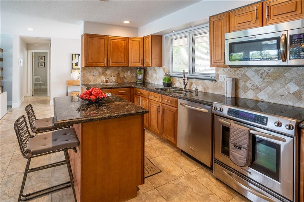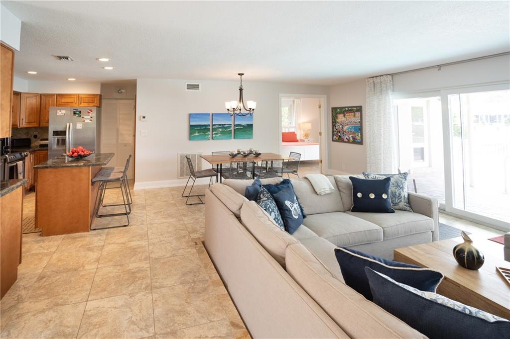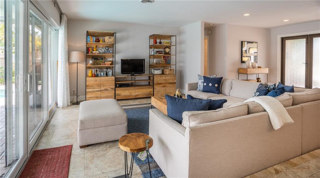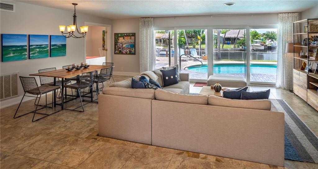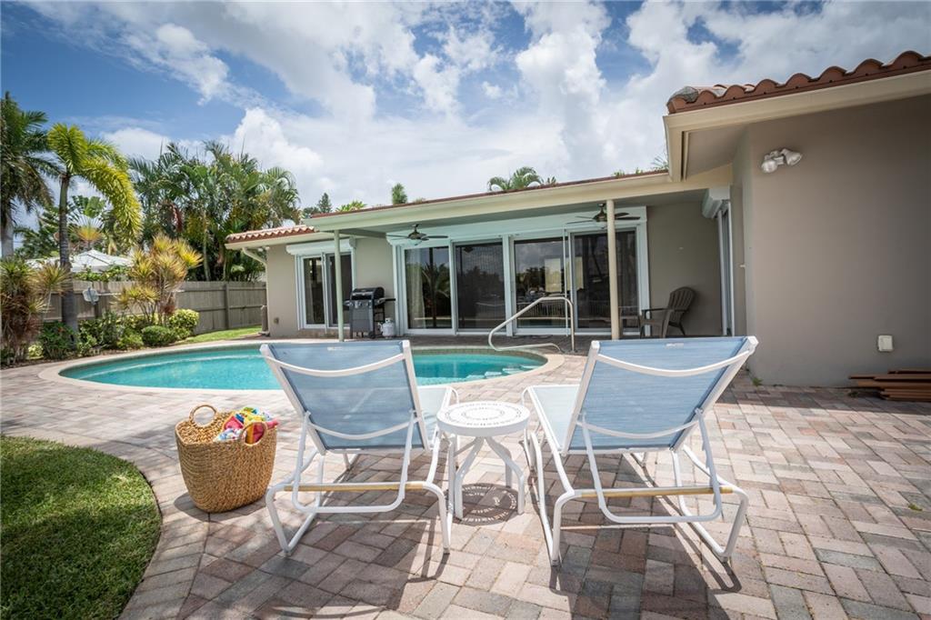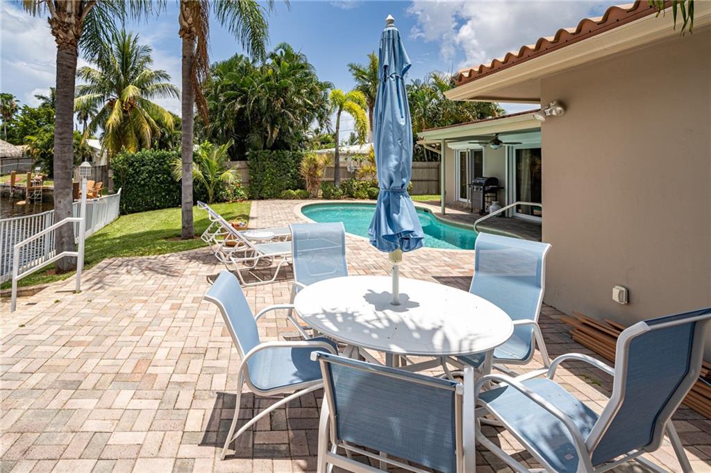 A picture perfect house. Completely redone! Beautiful long canal views with a pristine pool, pavered patio and large yard. Ocean access waterfront & new dock. Circular pavered driveway, mature landscaping, Impact windows & sliders, neutral 24” tile throughout, new bathrooms and organizational storage shelving throughout! Open kitchen with stainless steel appliances, granite and entertainer’s island. A very low maintenance home. Great location. Near numerous schools, easy access to I-95 and the beaches. Can be purchased furnished.
