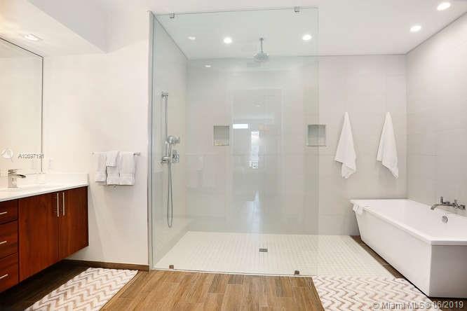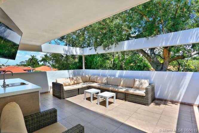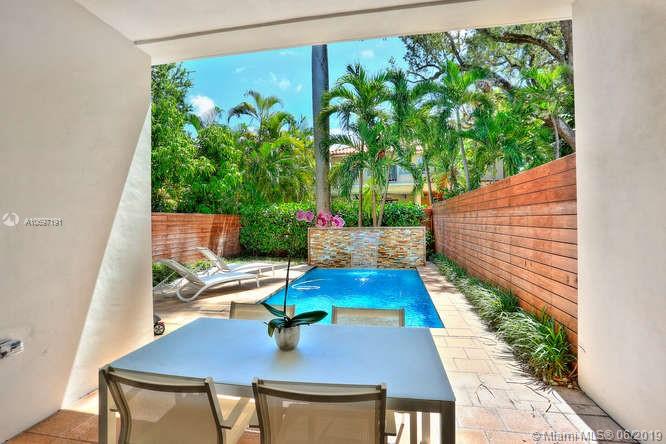 Luxury town home offered for sale by the first owners. Coconut Grove urban living at its best. Tile floors through out. Three spacious bedrooms with their private baths. Full bath on the first floor. Top of the line kitchen and bathroom cabinets. Upgraded kitchen with double oven, additional cabinet/pantry space, gas cook top and large island with eating area. High ceilings in the foyer and living room. Large family room overlooking the salt water pool & covered patio. Expansive master suite with large walk-in closet with built ins. Spa style master bath has a free standing tub, spacious shower with rain shower, double vanity and additional storage space. Two more nice size bedrooms with decent closet space. Private roof top terrace with electric retractable awning, wet bar and outdoor TV