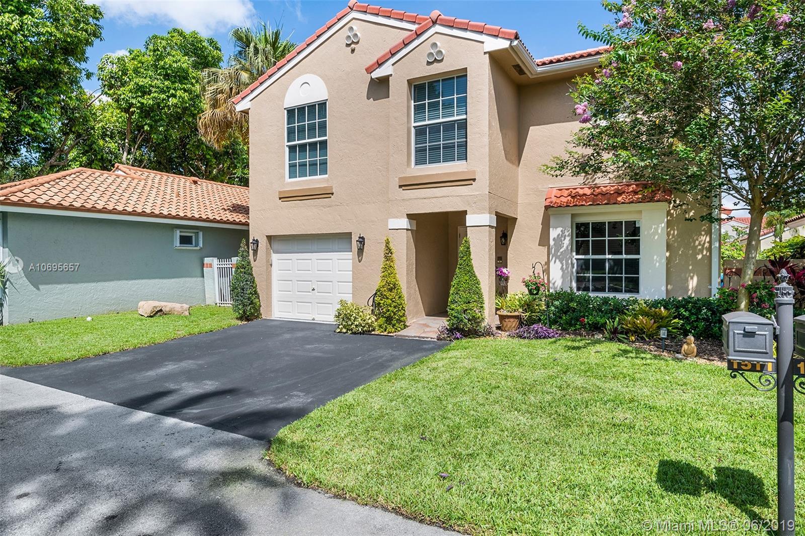 Extremely well maintained and updated 2 story home in Garden Homes of Country Isles Weston. Largest model in n'hood with fully permitted extension creating a xlarge remodeled kitchen. Impact windows & doors plus retrofitted roof for FULL insurance discounts (tile roof 2004). Wood look tile downstairs, carpet upstairs. All baths updated. Brand new painted interior and recently painted outside. One car garage with epoxy marble finish floor. Move in ready! 1 Year home warranty for new buyer.