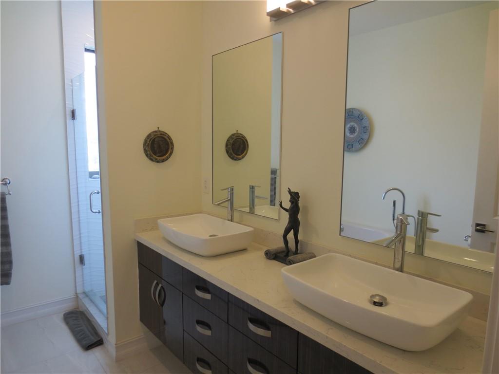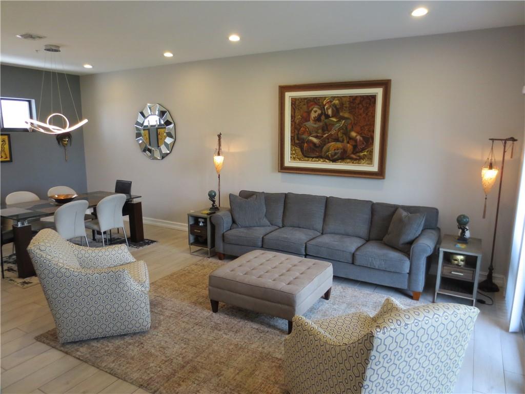 Welcome to The Mandarin Townhomes. This Stunning Modern Masterpiece will knock your socks off. Porcelain Tile Floors throughout All Three Levels. First Floor Bedroom with Private Bath leads to private patio and Fenced yard that was recently covered in Air Rated Astro Turf. Large window openings allows abundant Sunlight in every room. Second Floor Open Floor Plan has a Gorgeous Kitchen with Center Island, Quartz Countertops, Gas Range and Sliders to a Balcony area that overlooks the Back Yard. Third Floor has two Generous Bedrooms with Two Baths. The Master Bath is Incredible and offers Dual Sinks , a large Soaking Tub and Separate Walk in Shower. Third Floor Laundry Room and Hallway Foyer. Entrance Level has a Spacious Entry Hall. Hurry over before this is gone.