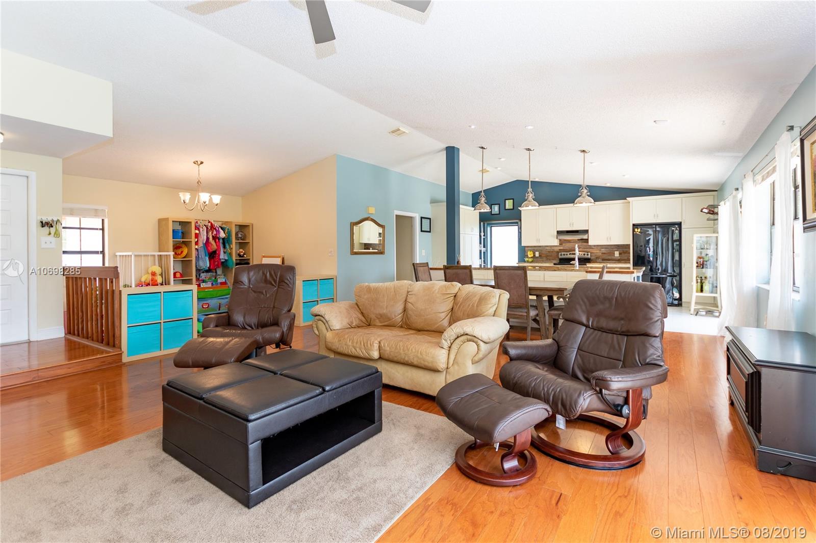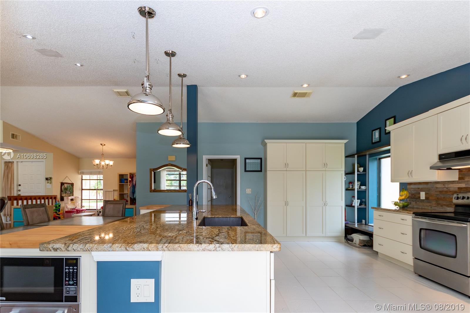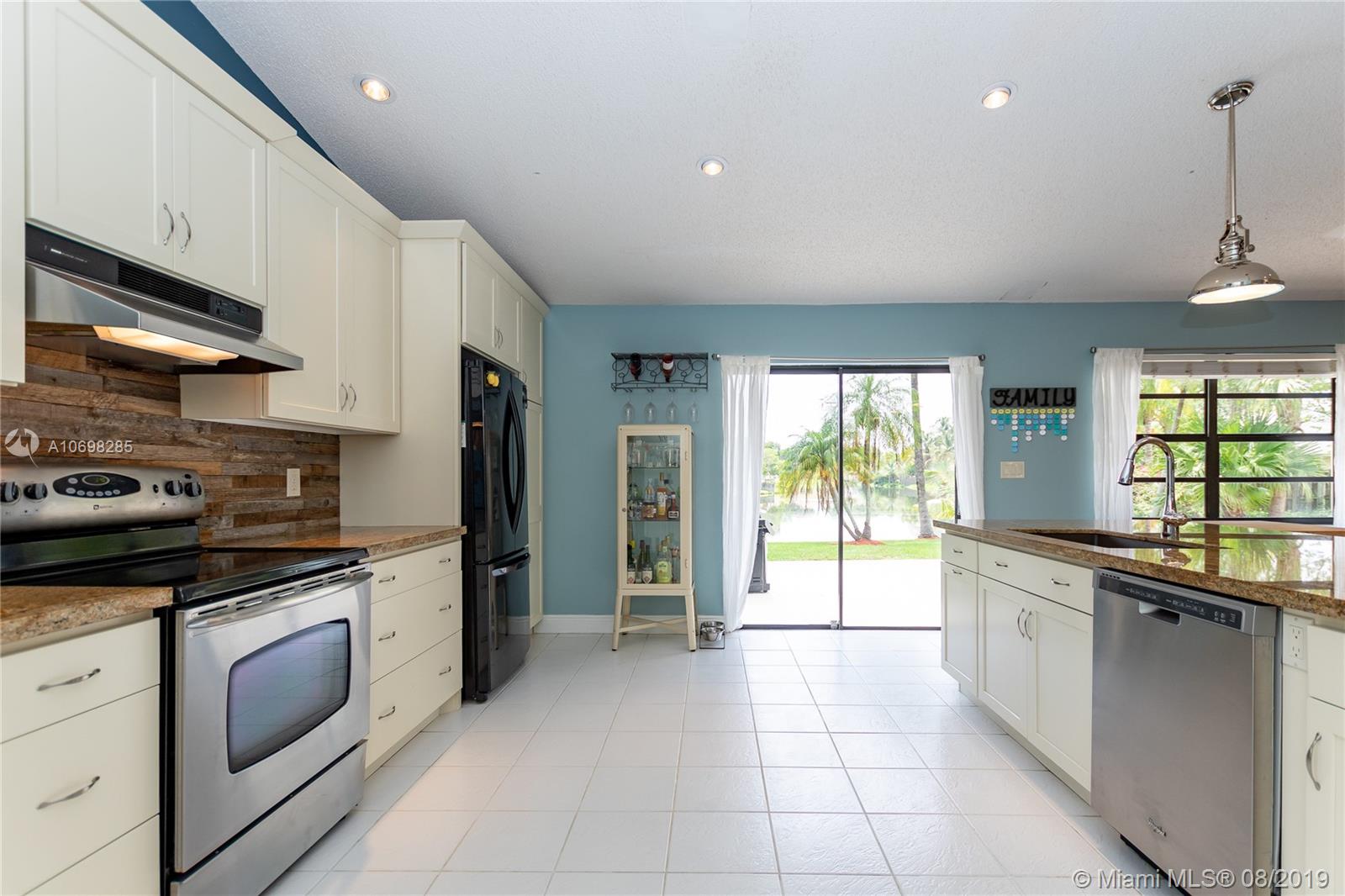Updated WATERFRONT home with pool located in the Shenandoah community! Tile & hardwood flooring run throughout the home - NO CARPET! Open floorplan includes great room, kitchen and dining room currently utilized as a playroom. Kitchen was relocated creating an open floorplan & renovated featuring solid wood cabinets, granite counters, reclaimed barn wood backsplash, oversized island with built-in banquet seating, and wine fridge! Updated master suite has oversized shower, and walk-in closet. Step outside to the open patio and enjoy your private oasis complete with pool and water view, where you can also see the incredible sunsets in the evening. Other features of this home include new A/C & pool pump (2019), newer solar hot water tank with solar panel, utility sink in garage and MORE!