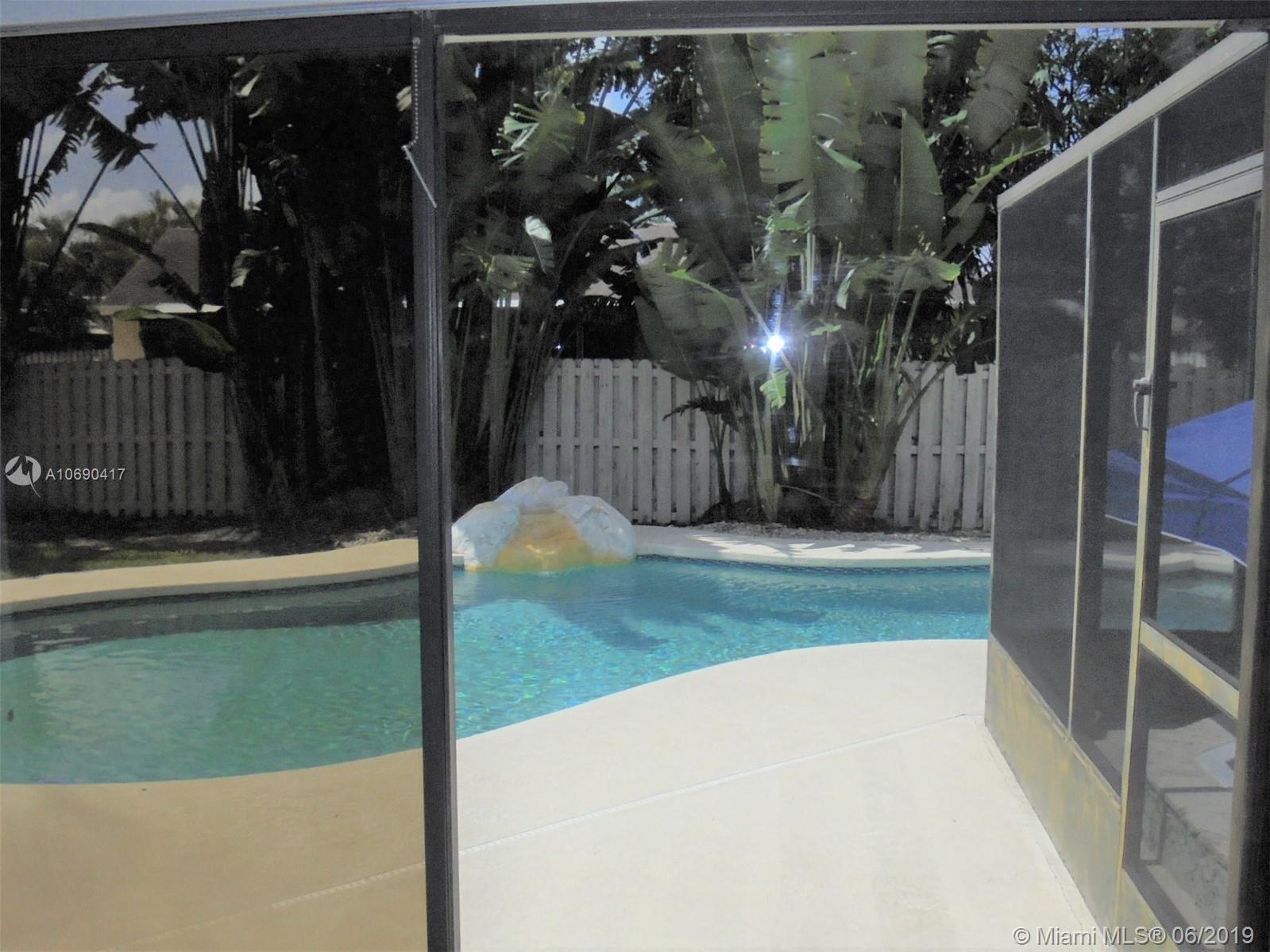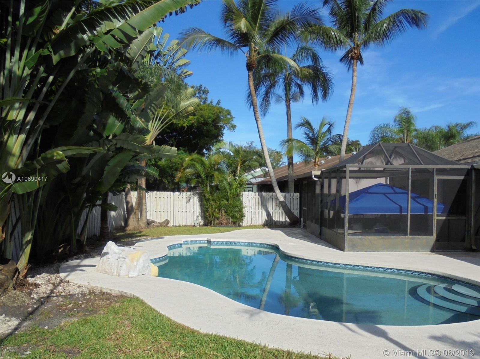 Live the good life in Shenandoah! 4 bed 2 bath, 1 story home that just needs your personal touch. With a lush, tropical, fenced backyard perfect for entertaining or just relaxing. Enjoy the hot tub in your screened-in porch or cool off in the inviting pool. Plenty of room for the kids and pets. Low HOA fees. Roof replaced in 2006. Washer dryer left for convenience only. Convenient to everything. A short drive to Sawgrass Mills shopping and entertainment complex. Easy access to I-595, I-75 and the Sawgrass Xway. Come and make this home your own!