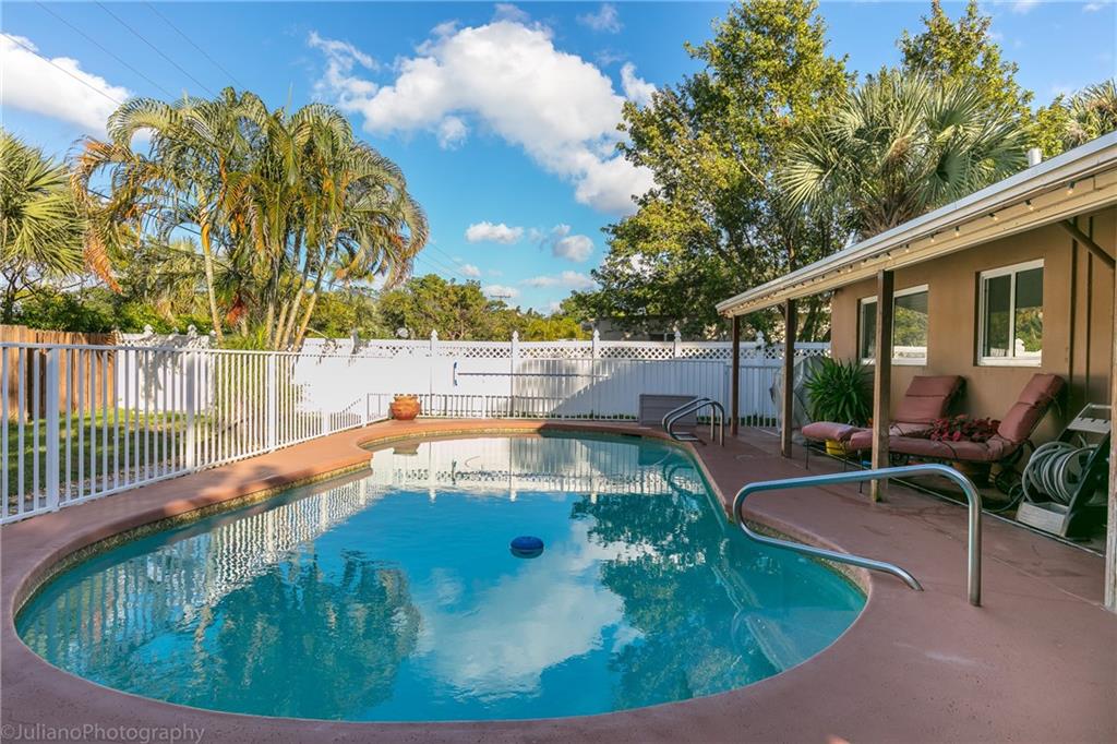 east of federal highway .Crystal Clear Swimming Pool and beautiful patio . fence in back yard , shed , impact windows, updated kitchen, updated sprinkler system. newer A/C 3 1/2 years old