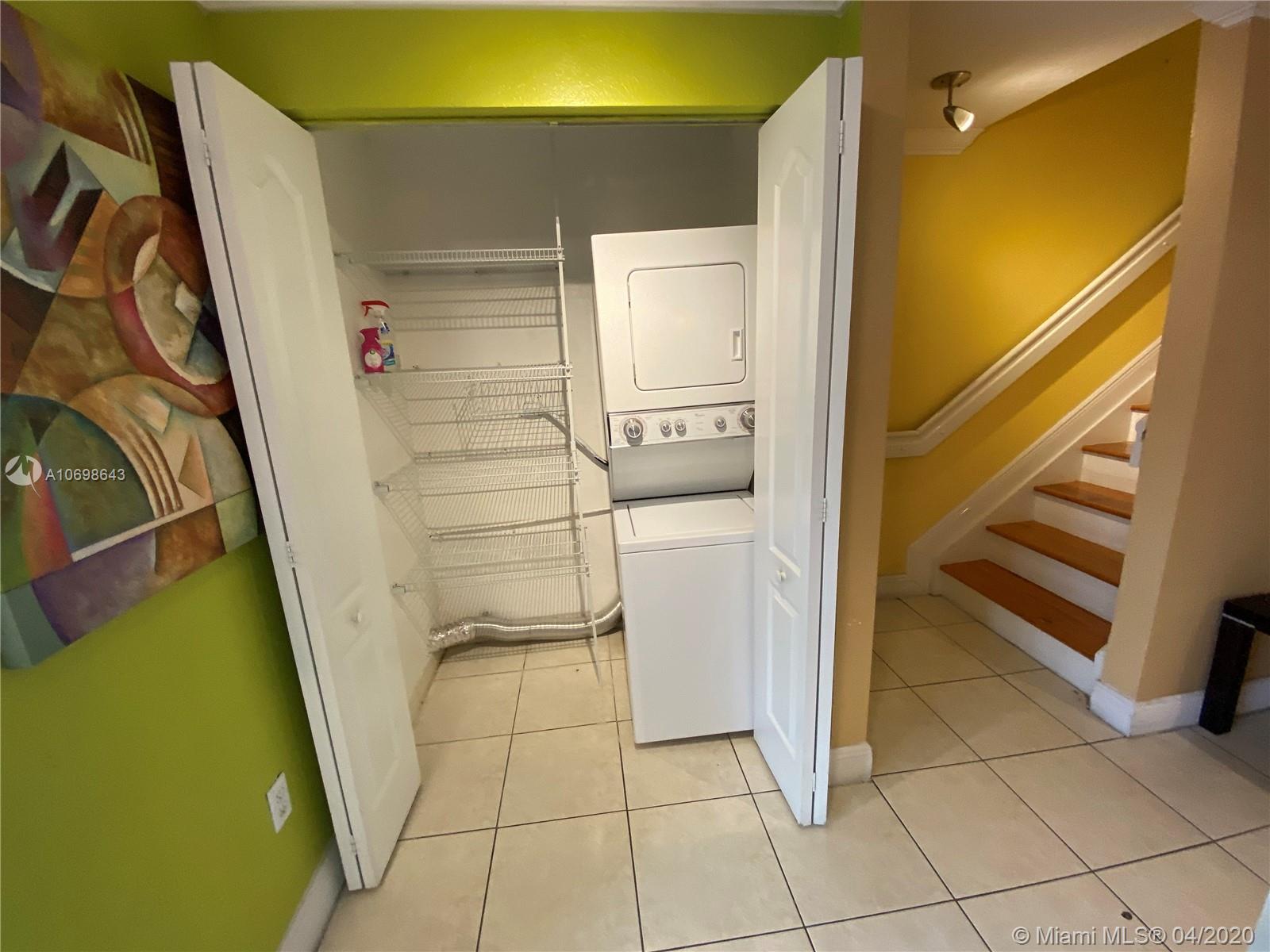 Lovely & Spacious 3 bedrooms, 2.5 bathrooms, 2-story townhouse in a quiet & centrally located Los Portales Community! This great unit offers: Ceramic tile floors on the first floor & wood floors on the 2nd floor, 1 bedroom & half bathroom located on first floor, large closets, washer & dryer inside unit, small fenced patio, hurricane shutters & 2 assigned parking spaces. Excellent location, across from a+ schools, city hall of Hialeah, restaurants, supermarkets, shopping centers, blocks from Miami Springs. Perfect for First Time Home Buyers or Investors! This Unit will not Last!! Ready to Move-In!