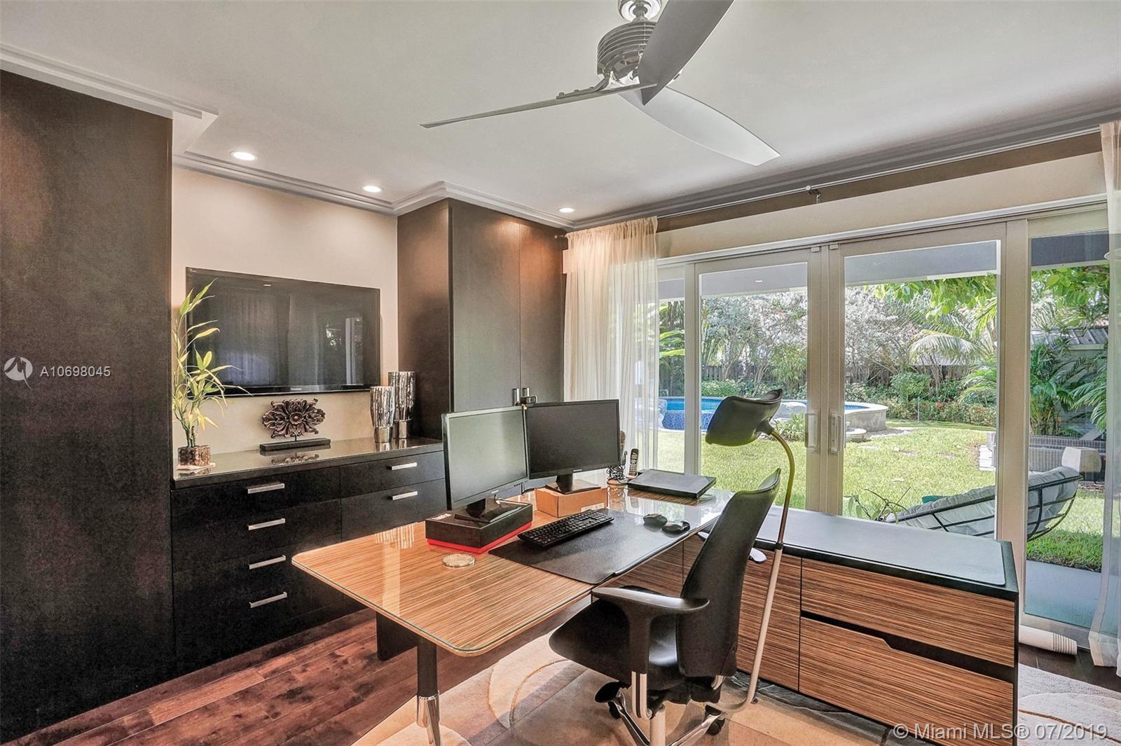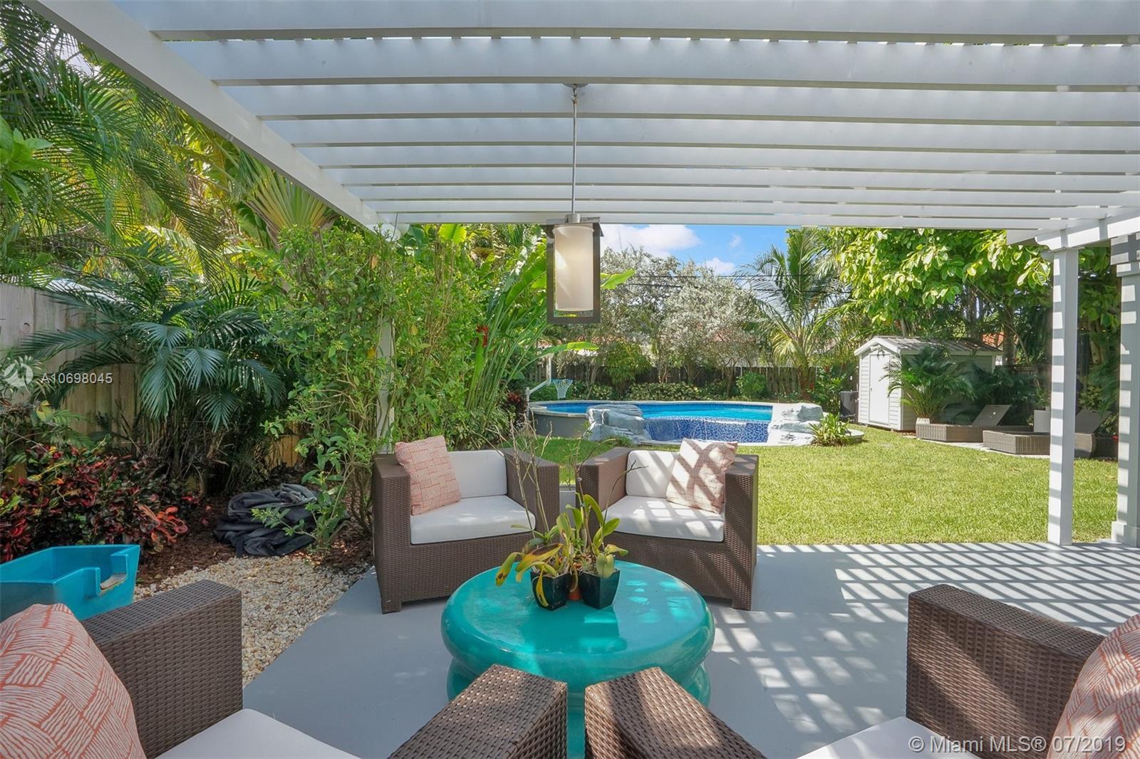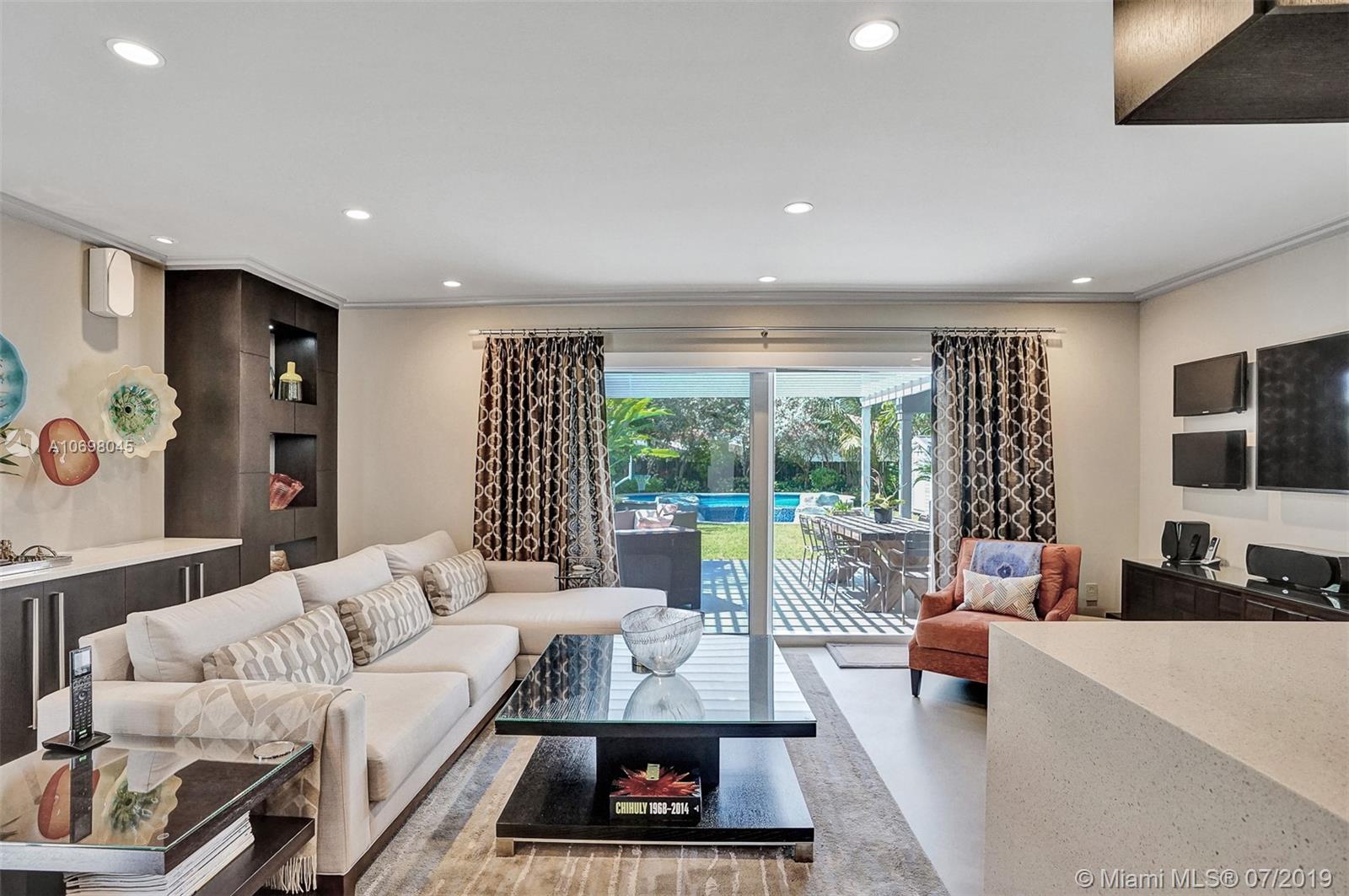 Fully gutted/rebuilt in 2016! All new plumbing, electrical, mechanical, etc. cat 6 wiring throughout. Open floor plan kitchen, dining, family rooms with seamless polished concrete floors, custom built in cabinets/closets, led lighting, designer tiles/finishings & furnished. On suite bathrooms, private master suite.Contemporary Barn Doors with stainless hardware Custom sun shades in every room with blackouts for bedrooms. Salt water pool with heater & fountain, natural gas whole home generator (from street/meter), solar panels, 3 zone a/c, gas range & cooktop, tankless hot water heater, & whole water filtration system with alkaline water ionizer. Hurricane windows & doors, metal roof. The backyard features a mini golf course, shed, landscape lighting, aluminum pergola.
