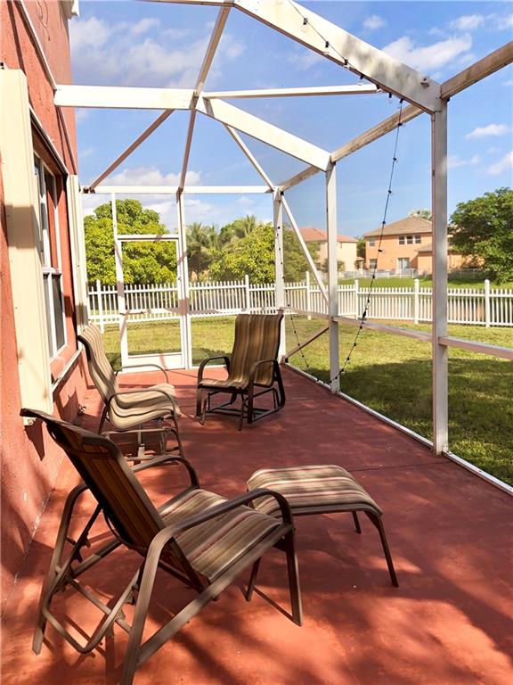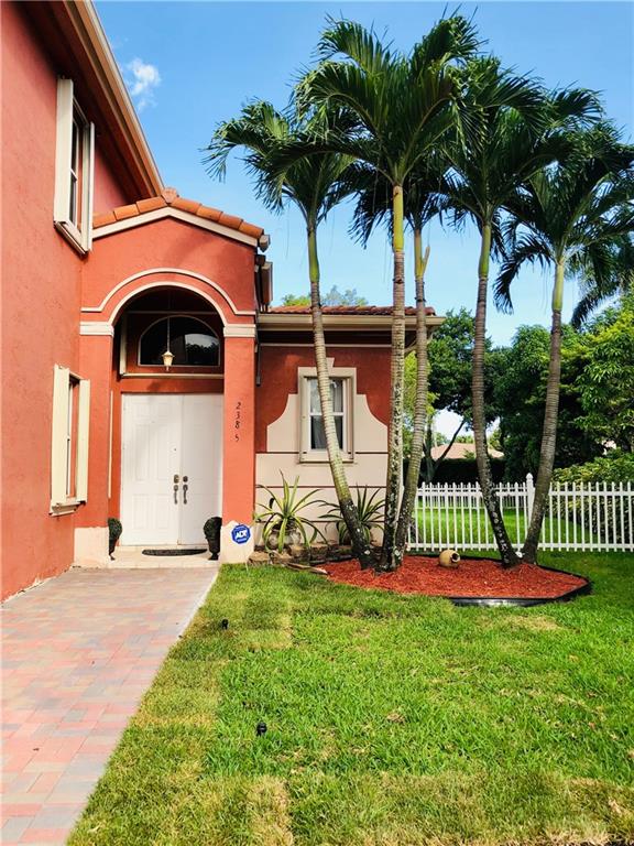 Spacious house for Sale in Palm Cove of Monarch Lakes; Gated subdivision, 4 Bedrooms, 2.5 bathrooms; 2-story, 2 car garage; big paved driveway for more parking, huge fenced backyard on the Lake; Interior is big & open; tall ceilings, large living room; high impact patio doors; screened patio, hurricane shutters; huge family room, formal dining area, office/den; nice kitchen, many cabinets and counter space, stainless steel appliances; 1st floor wooden floors & stairs, wrought iron bannister, Saltillo floor tiles upstairs; updated bathrooms; Master bedroom with sitting area; walk-in custom closets; wired security camera system.