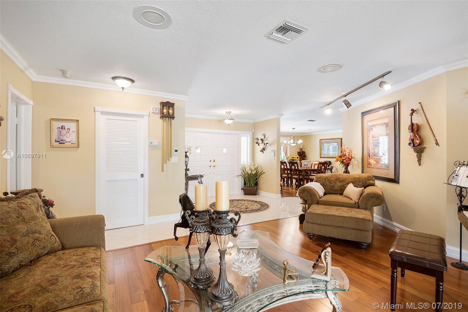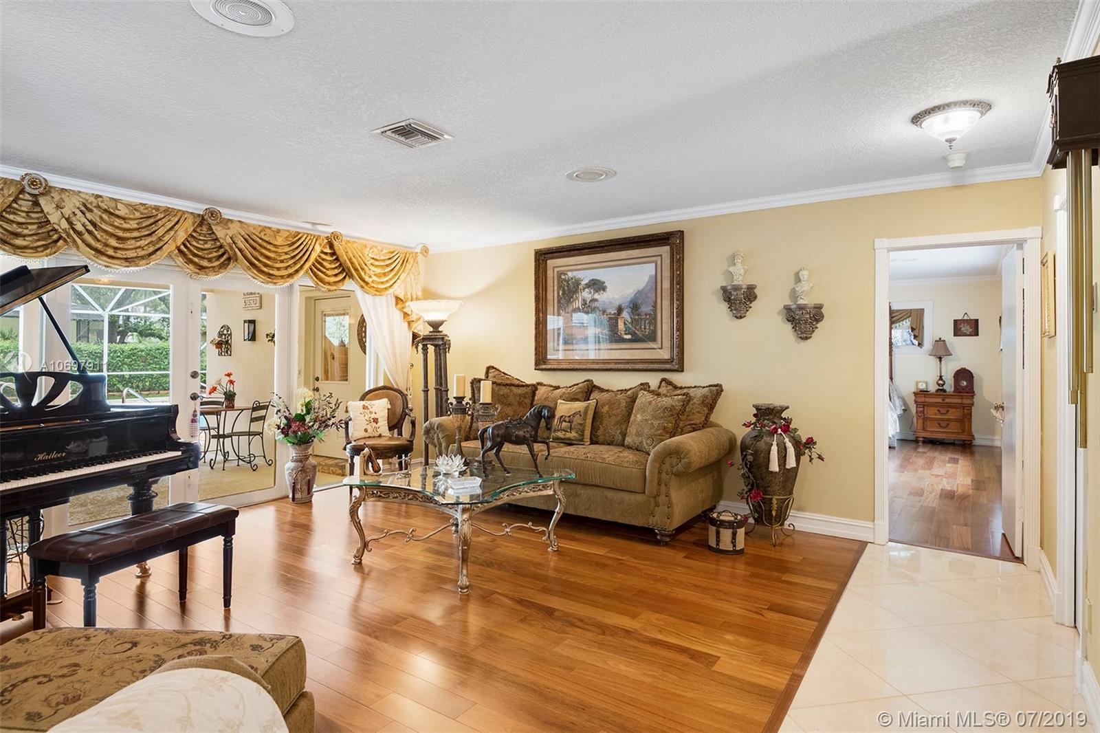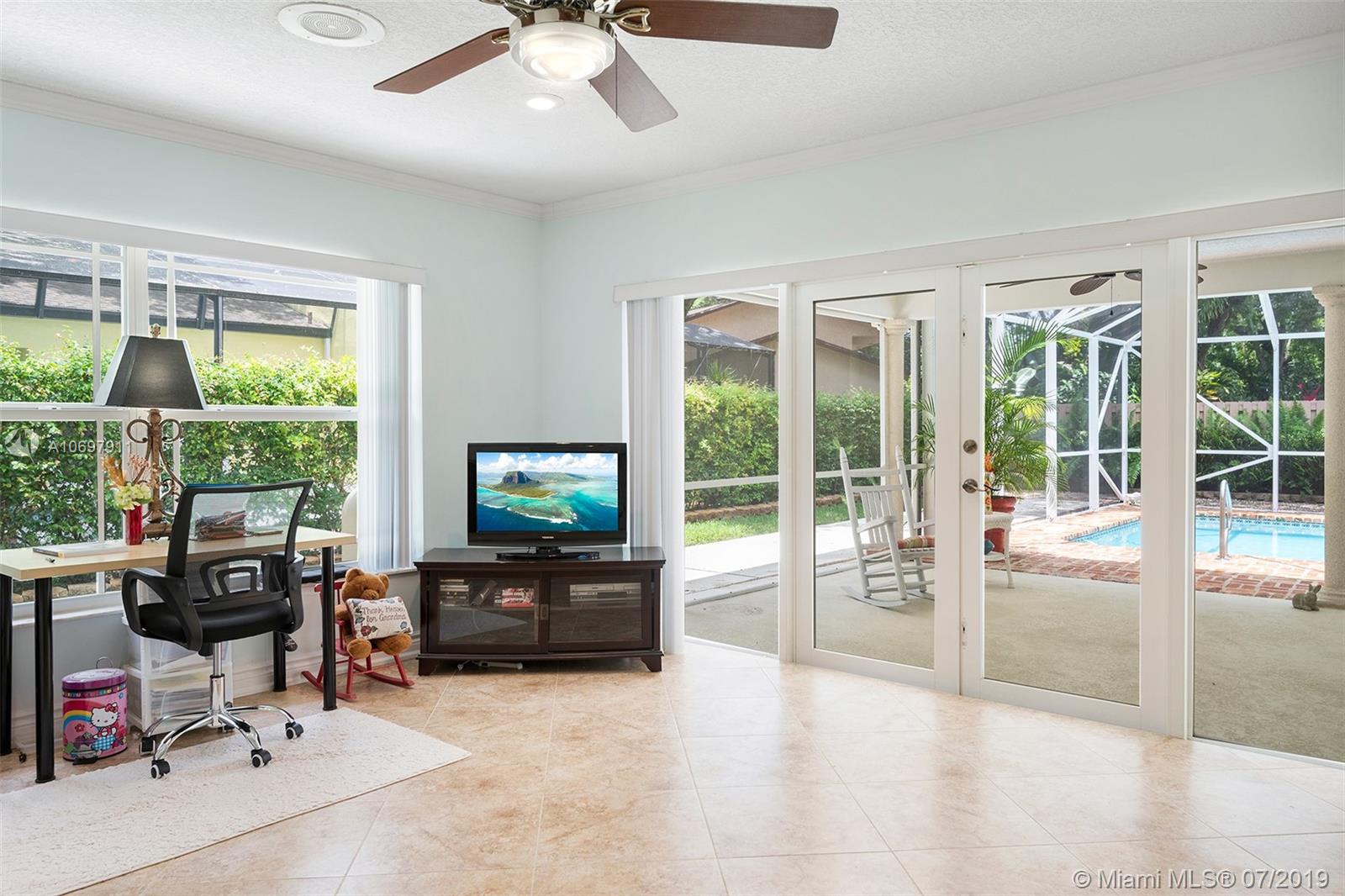 Entertainers paradise on secluded and private cul de sac street. Meticulously maintained and in spotless condition. Over sized rooms, including a huge open family room with wood floors, built in custom cabinetry and surround sound. Kitchen with granite counters, stainless steel appliances, double oven and cooktop. Master suite with wood floors, bay window and sitting area. Master bath has his and hers sinks, jacuzzi tub, shower and large walk in closet. Outdoor kitchen with built in grill. French doors lead to the covered patio and screened pool. Located close to houses of worship, the Hard Rock Casino, 595, 95, the Turnpike and all of South Florida!