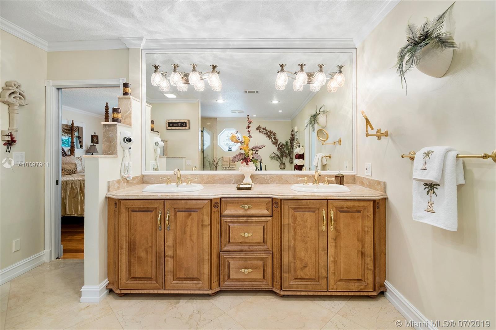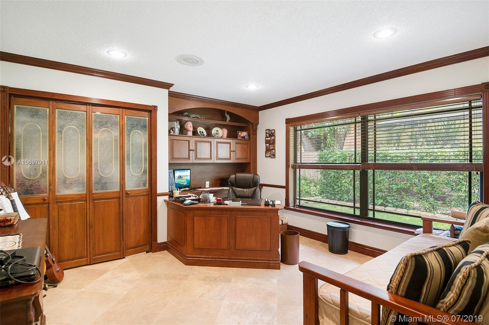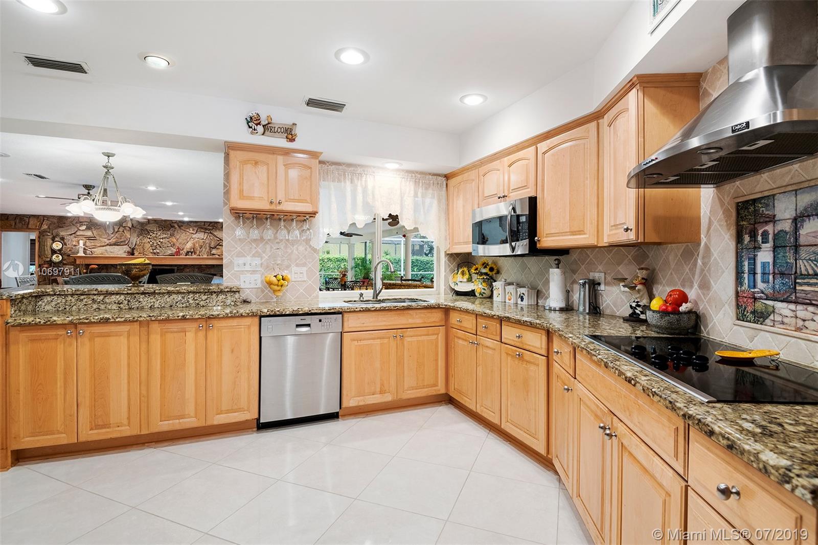 Entertainers paradise on secluded and private cul de sac street. Meticulously maintained and in spotless condition. Over sized rooms, including a huge open family room with wood floors, built in custom cabinetry and surround sound. Kitchen with granite counters, stainless steel appliances, double oven and cooktop. Master suite with wood floors, bay window and sitting area. Master bath has his and hers sinks, jacuzzi tub, shower and large walk in closet. Outdoor kitchen with built in grill. French doors lead to the covered patio and screened pool. Located close to houses of worship, the Hard Rock Casino, 595, 95, the Turnpike and all of South Florida!