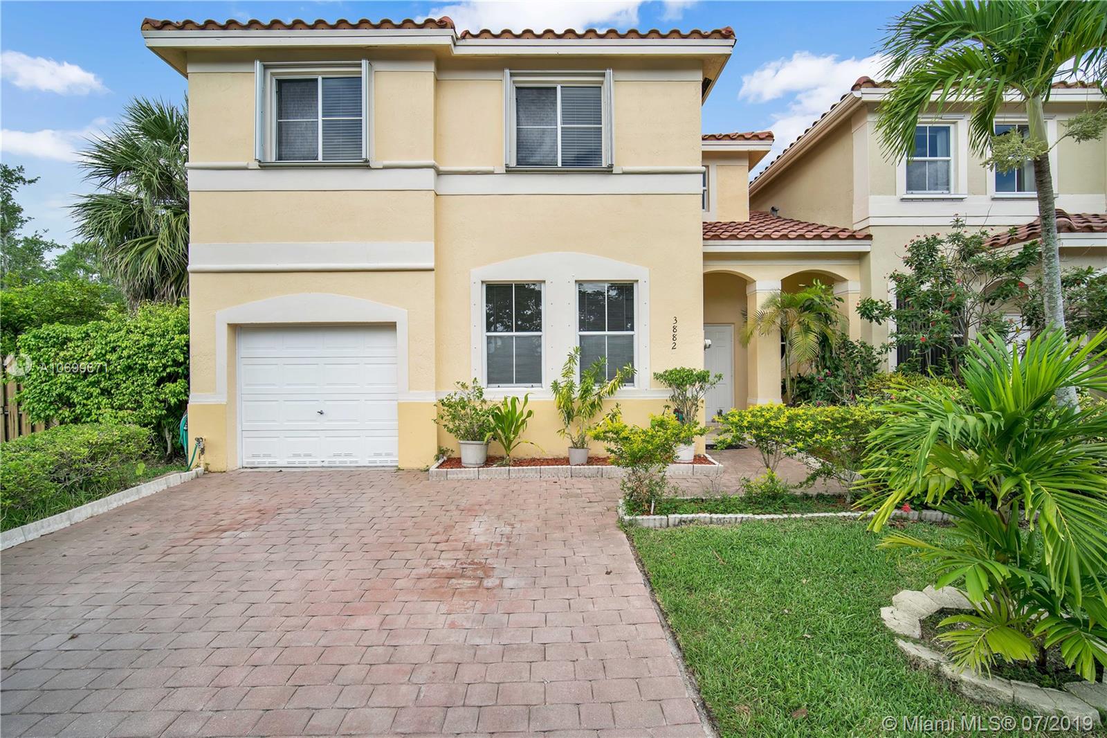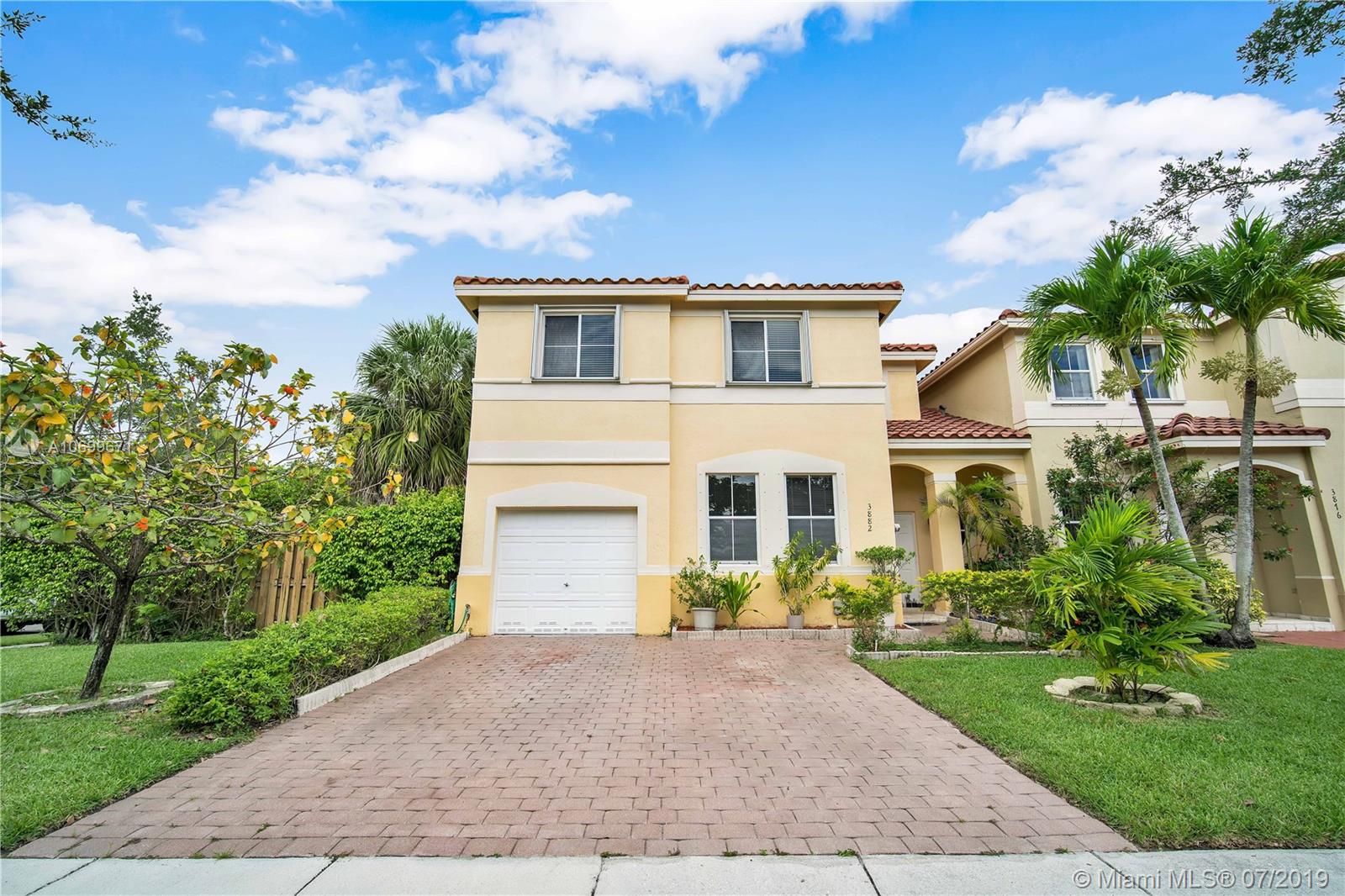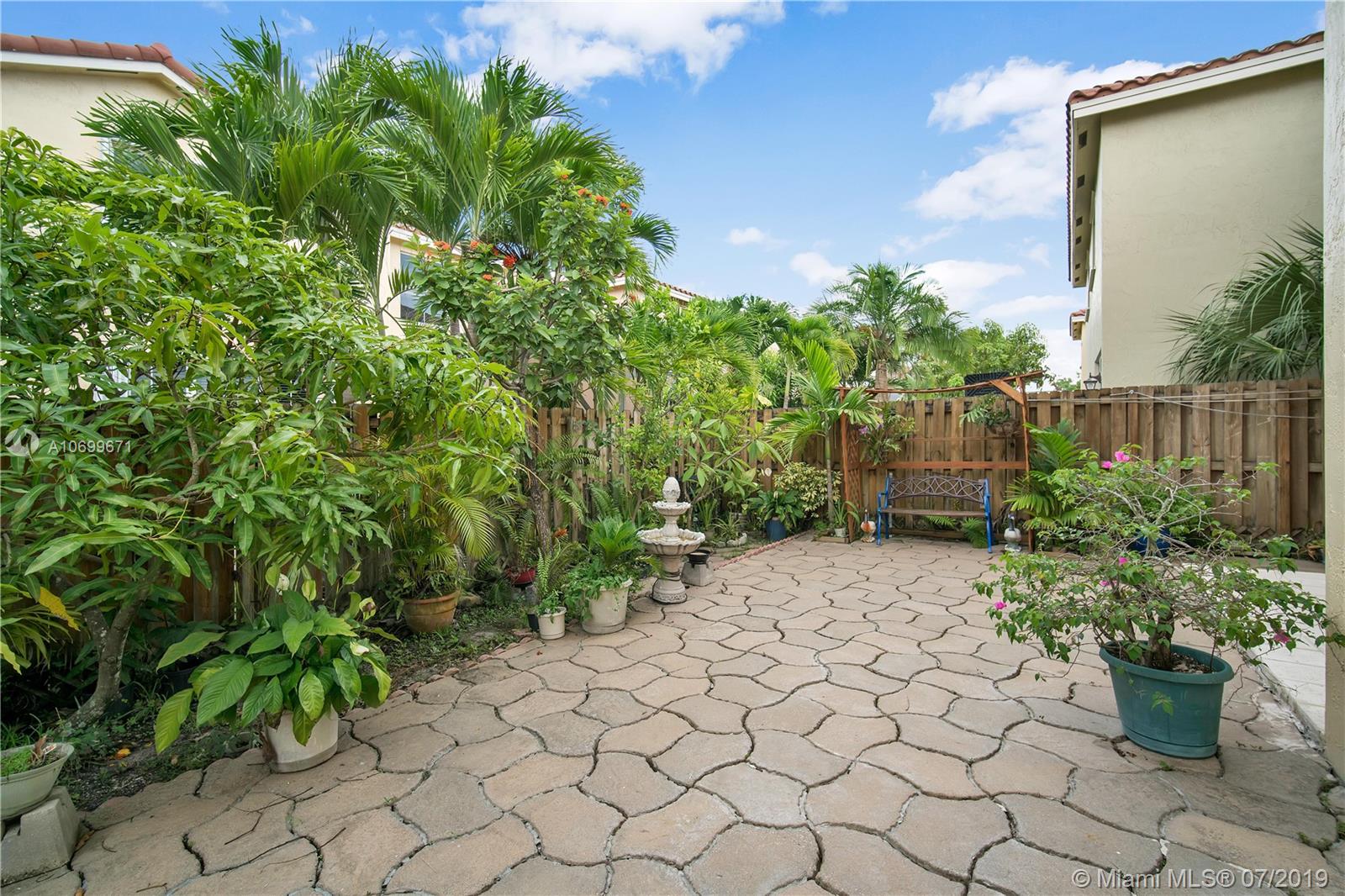 THIS CORNER TOWNHOME LOOKS LIKE A SINGLE FAMILY HOME. IT SITS IN THE HEART OF MUCH DESIRED CITY OF MIRAMAR IN THE PRESTIGIOUS GATED COMMUNITY NAUTICA. BEST VALUE FOR 3 BED/2.5 BATH & A LOFT THAT CAN BECOME 4TH BED. LARGE 1 CAR GARAGE & DRIVEWAY BIG TO PARK 2 CARS. BEAUTIFUL BACKYARD GREAT FOR ENTERTAINMENT. 1ST FLOOR TILE THROUGHOUT 2ND FLOOR NEW WOOD LAMINATE. ALL ROOMS IN 2ND FLOOR. MASTER ROOM HAS WALK IN CLOSET. HOME HAS NEW VANITIES, NEW AC, NEW WATER HEATER, SECURITY ALARM, ACCORDION SHUTTERS, CEILING FANS, STAINLESS-S APPLIANCES, CROWN MOLDING, VOLUME CEILINGS, SPRINKLER SYSTEM, LOTS OF CLOSET SPACE. LOW HOA 222 MONTHLY & NO APPLICATION FEE. COMMUNITY HAS KIDS PLAY AREA, POOL, GYM, PARTY ROOM, 2 TENNIS COURT, 1 BASKETBALL COURT & PETS ARE WELCOME. A MUST SEE EASY TO SHOW.