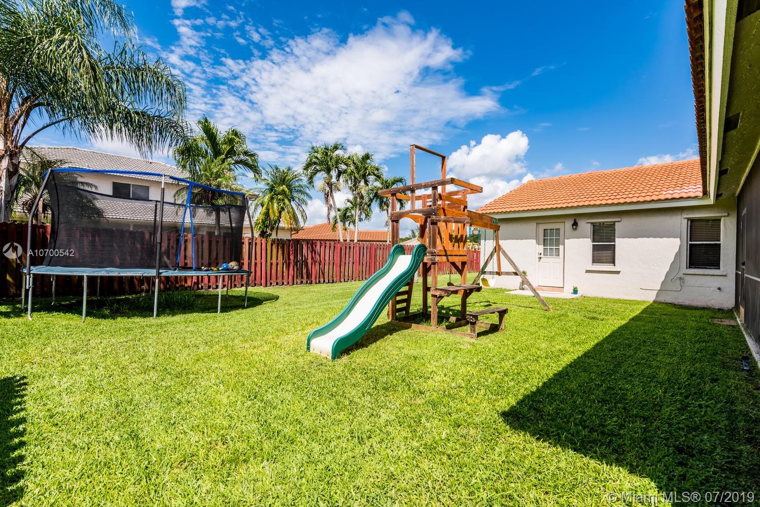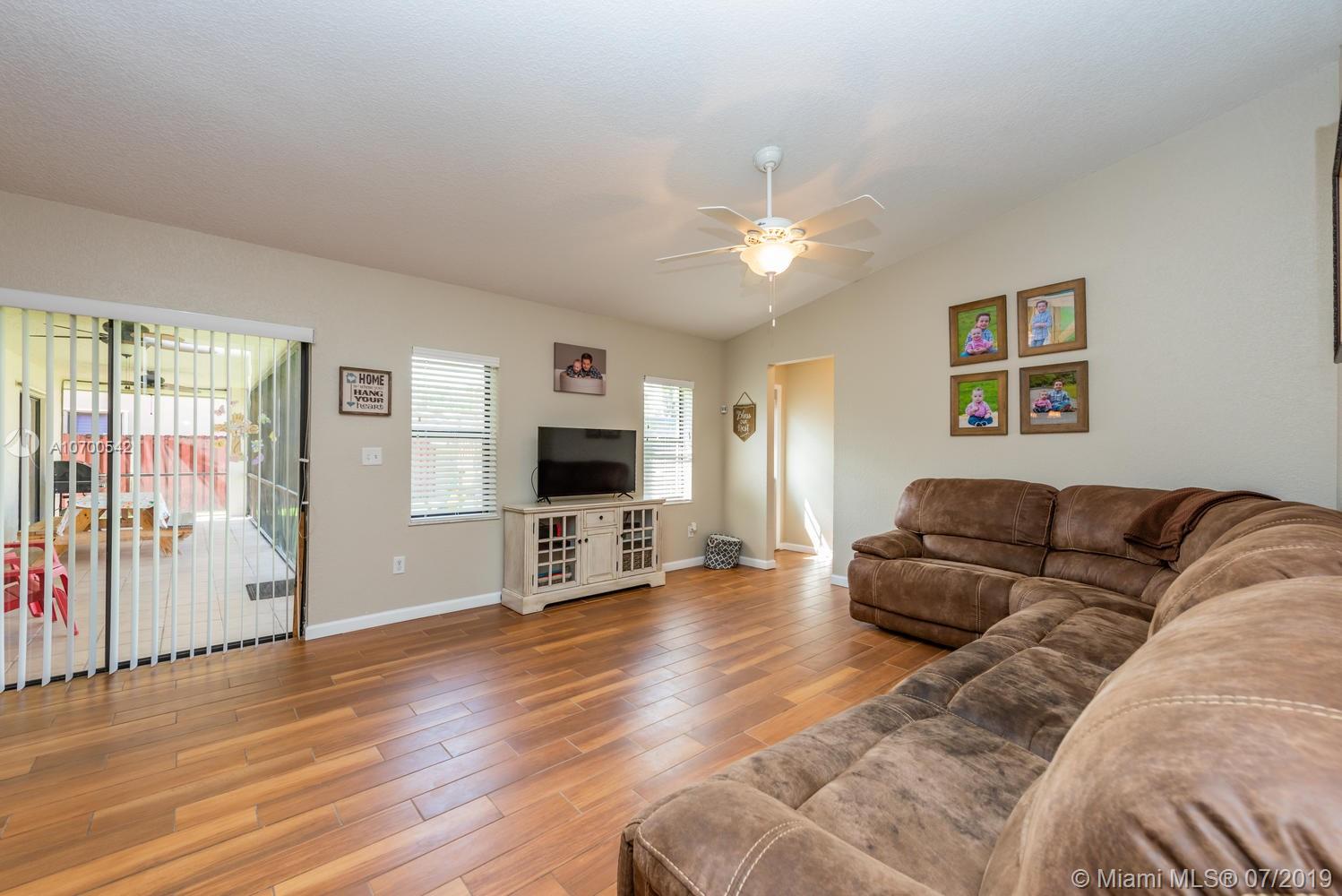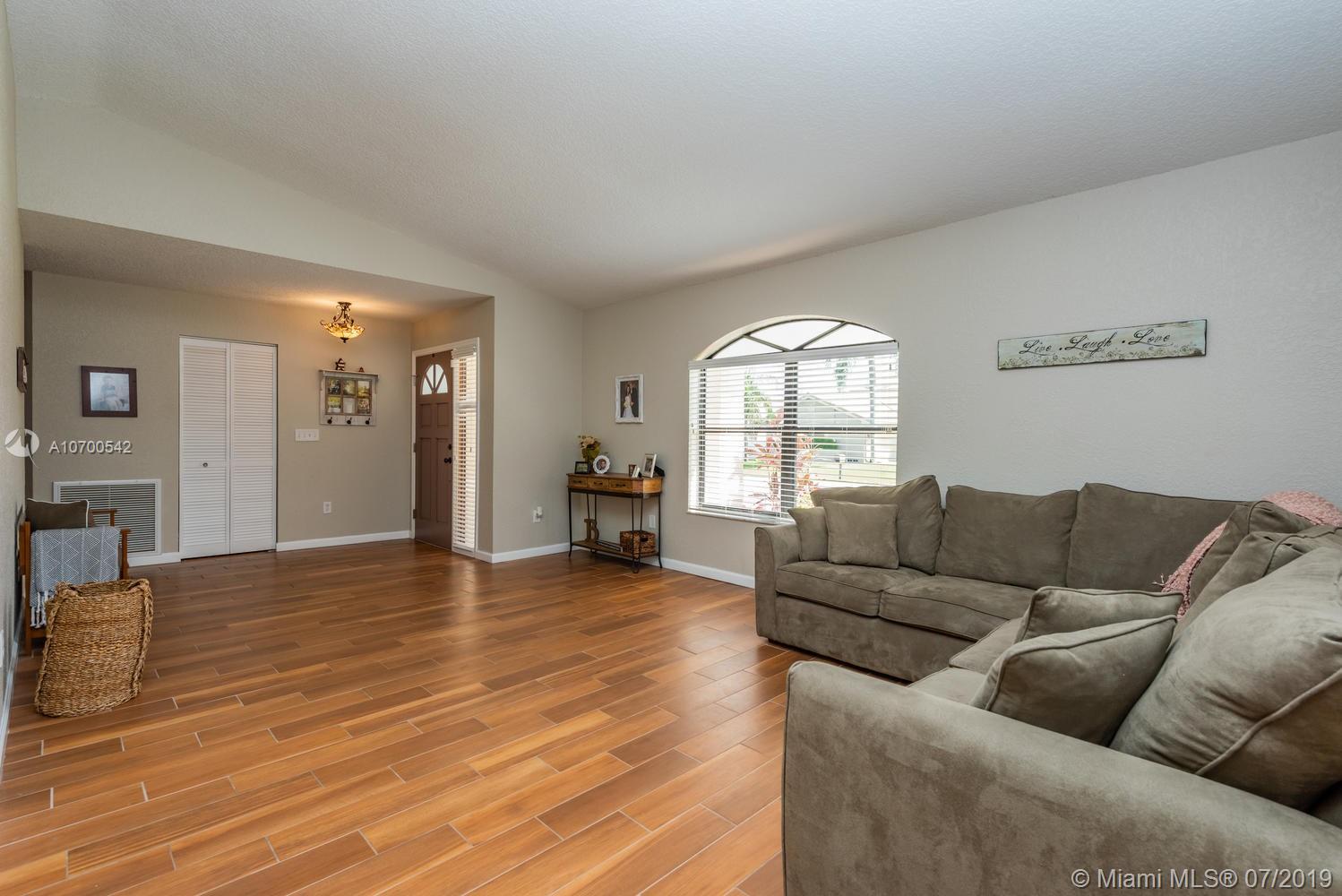 Stunning triple split 4 bedroom,3 full bathrooms! Kitchen is updated with granite countertops and newer stainless steel appliances. All common areas feature beautiful wood look tile. New knock down and baseboards thru out the house. New outlets, light fixtures, switches. Hurricane panels, Covered, screened back patio overlooking a great back yard! Concrete Circular drive. Fantastic School District!! ***Super low HOA fees.$320 a YEAR***