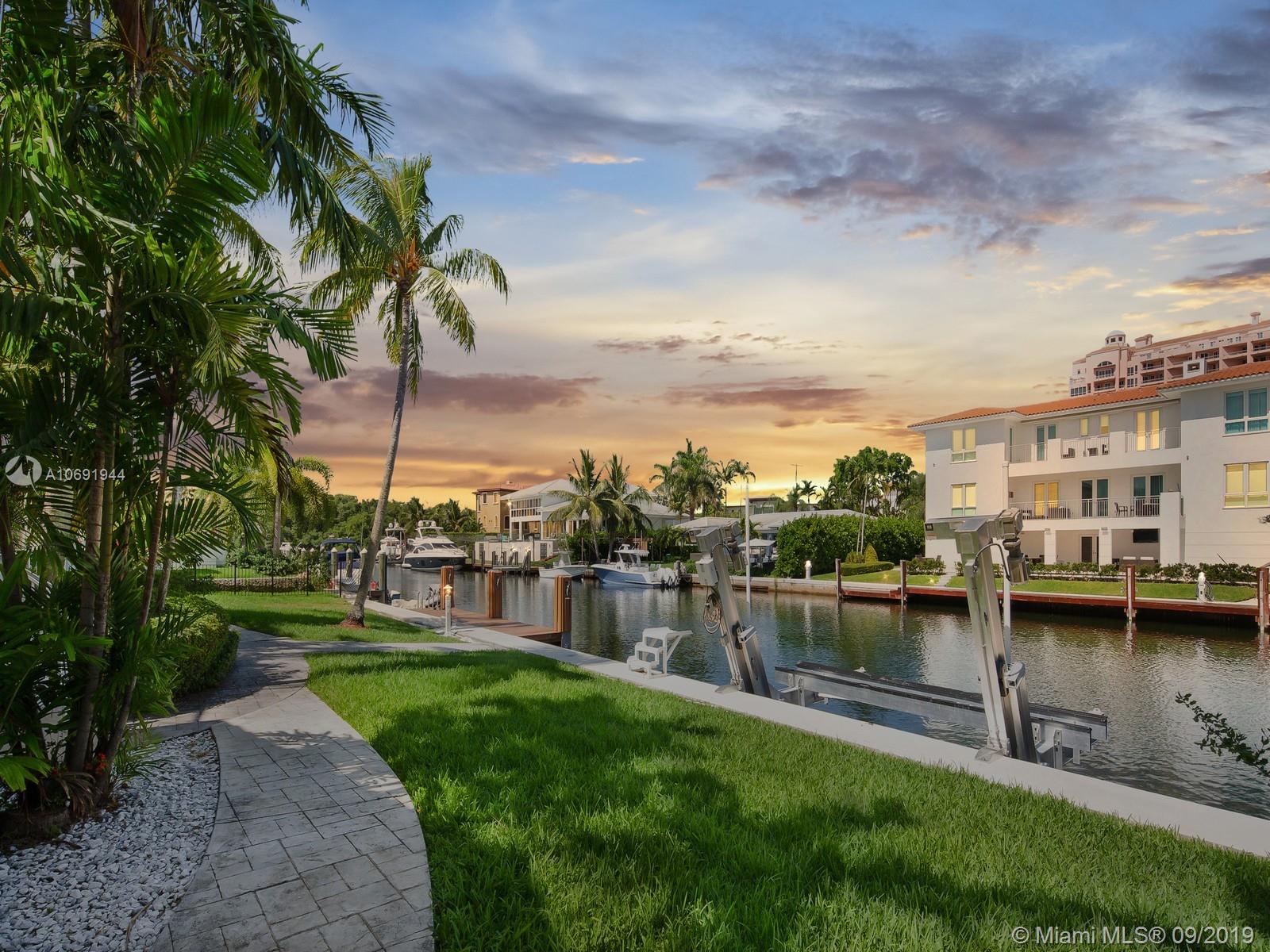 Contemporary residence with phenomenal value has the lowest price in community with 100ft of prime waterfront on wide canal. NO BRIDGES with direct ocean access. Private dock and boat lift allows for extra docking. Revel in breathtaking sunsets from your back yard. Grand two-story living and dining rooms. Unique design with open layout and large expanses of glass. Main floor wet bar can be enjoyed from social areas. Spiral staircase w/ Guggenheim flair leads to 2nd floor loft w/imposing views and multiple uses. Sleek, functional kitchen with S/S appliances. Breakfast area opens to family room. Secondary spiral staircase leads to private master complete w/ en-suite bath and walk-in closet. Perfectly situated in gated community near elite schools, shopping, dining, downtown & beaches.