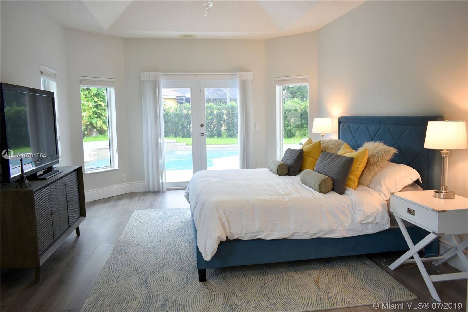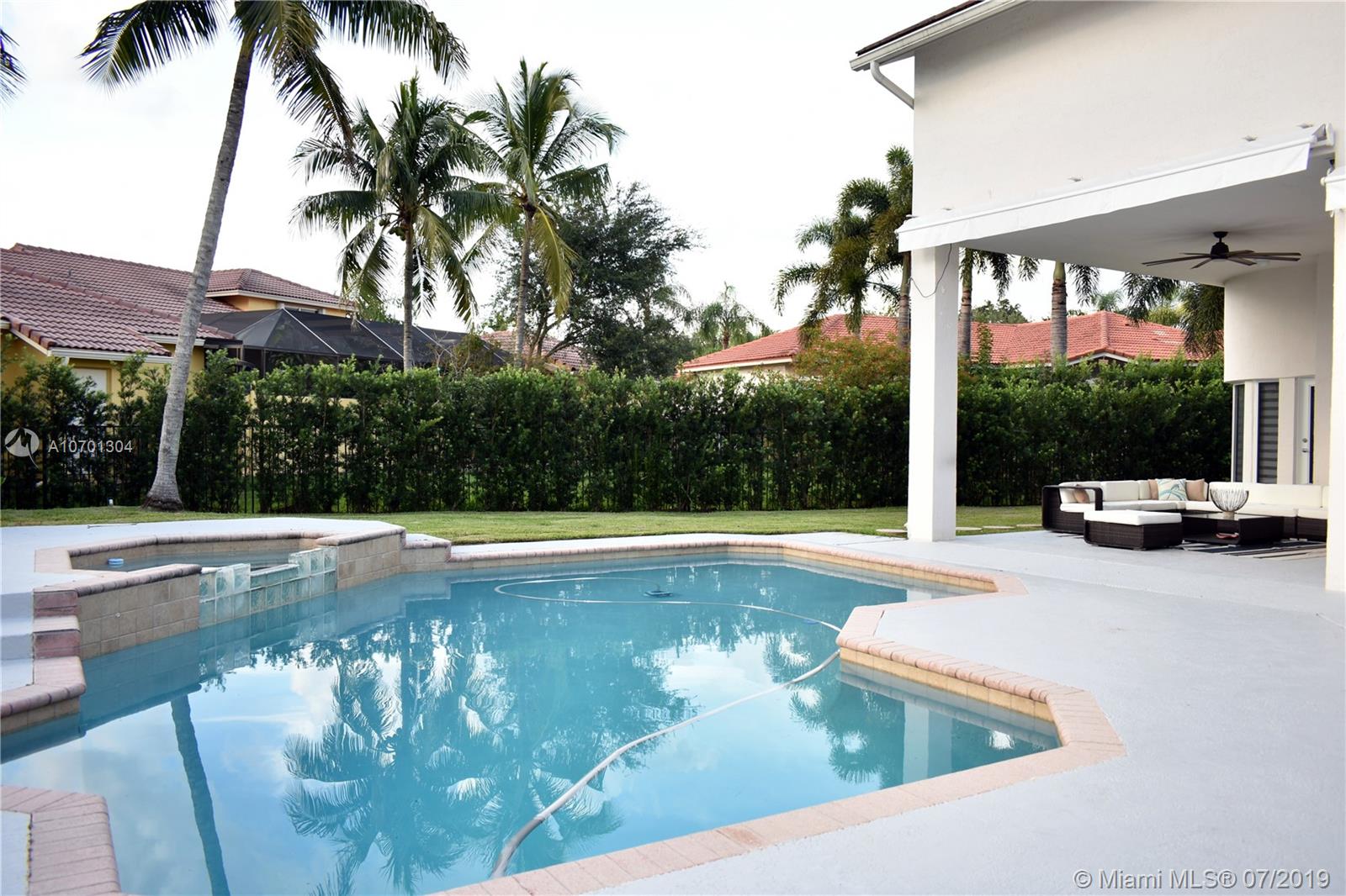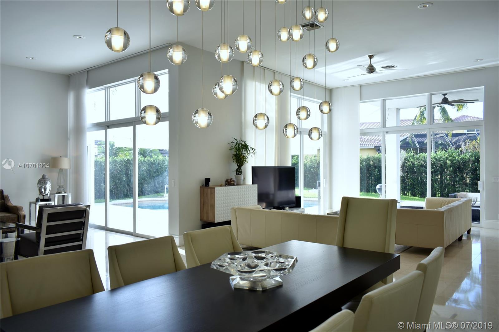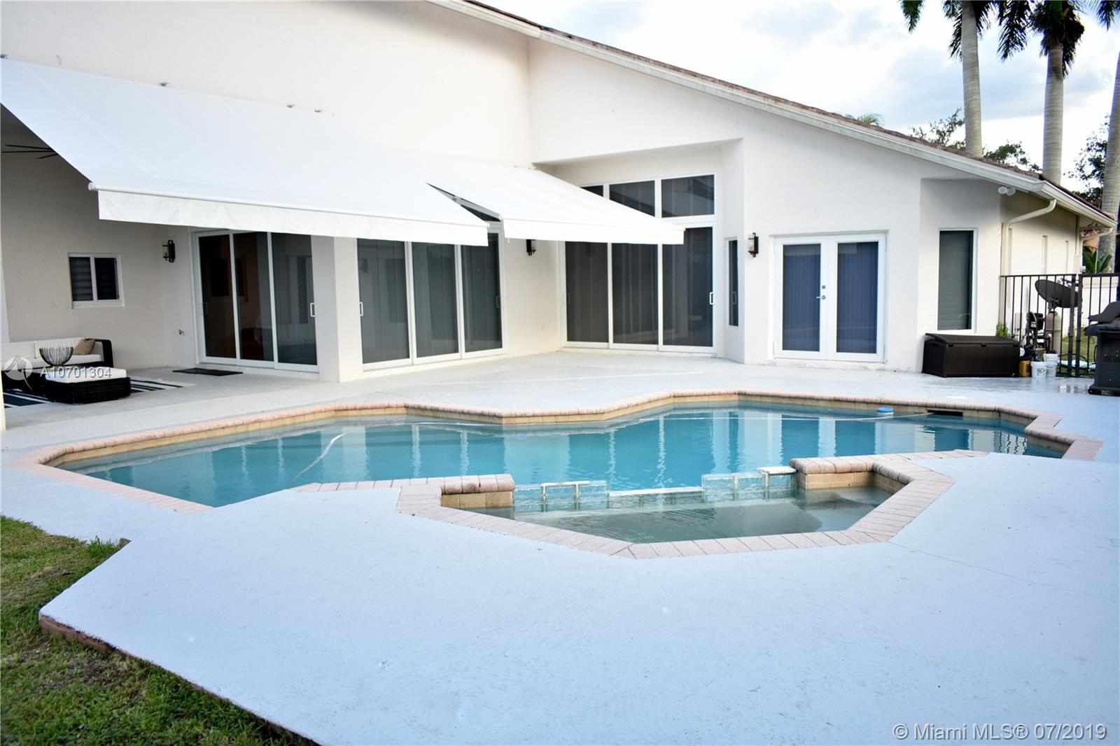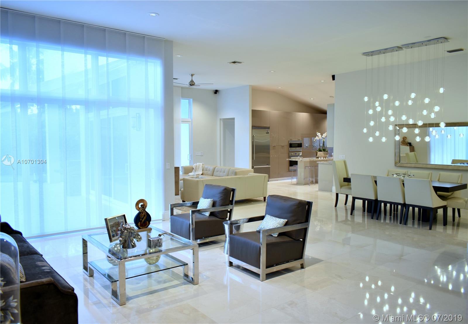 Warm Modern Masterpiece with 5 Beds / 4 baths set on an over 11,000 sq.ft. lot in prime Weston Hills. Newly renovated in 2016, this property offers high ceilings and open spaces. Designed for large scale entertaining, the vast living rm flows to the outdoor living rm & pool. Enter in the courtyard with a beautiful pond and Magnificent Custom Front Doors, Large dining, living, family rm and fabulous open chef's kitchen with full length islands, vaulted ceilings and loads of light. Top of the line Vikings appliances make it complete. Impeccable condition, all hurricane impact windows and doors (2018), 3 car garage, washer/dryer and AC units replaced in 2015. The master suite features beautiful pool views, walk-in closets & spectacular bath. 2 add'l bdrm suites with en-suite baths.
