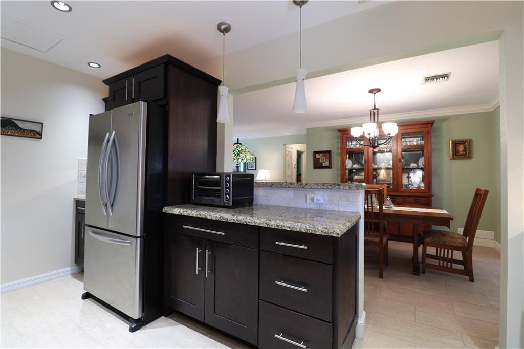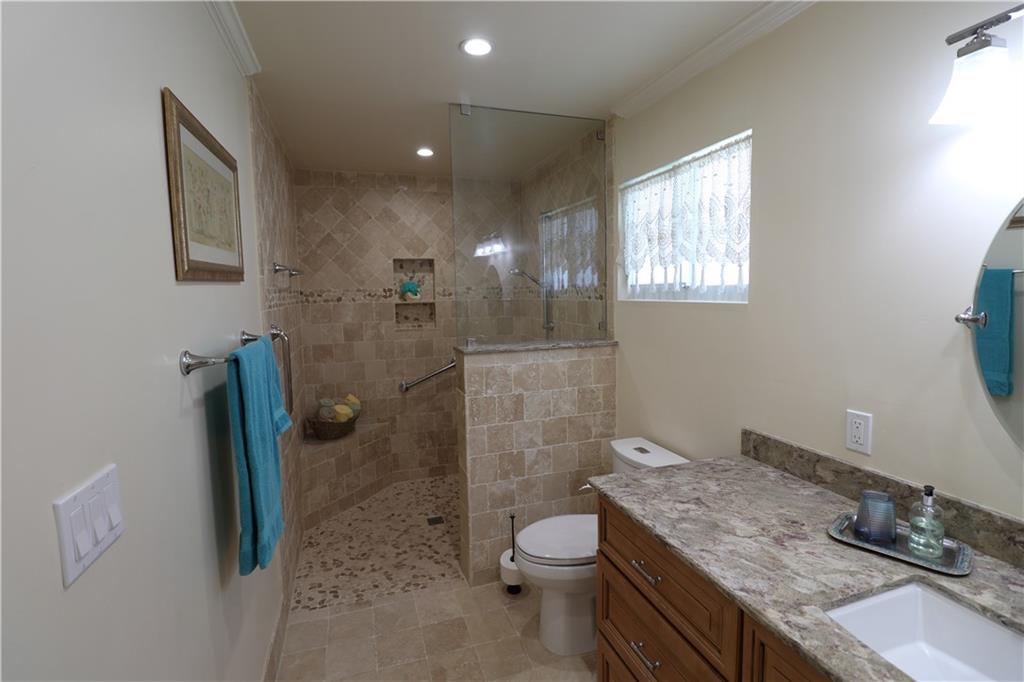 This beautiful ranch style home is truly remarkable inside and out. Features include, bamboo flooring through out, hardwood cabinets in the kitchen with travertine tile back splash, granite countertops, stainless steele appliances; Gas Stove, porcelain tile floors, granite counter tops. Crown molding. Impact windows provide plenty of natural lighting. All Impact doors, new A/C & water heater; (tankless). Bedrooms have large closets. Gorgeous remodeled bathrooms with travertine tiles, granite counter tops. crown moldings in Living room, dining & bathrooms A plus the florida room which leads to the fenced in private backyard with a pergola and it’s stunning landscaping. This is a wonderful neighborhood with great schools. No HOA.Come and take a look at this beauty....Don't miss out!”