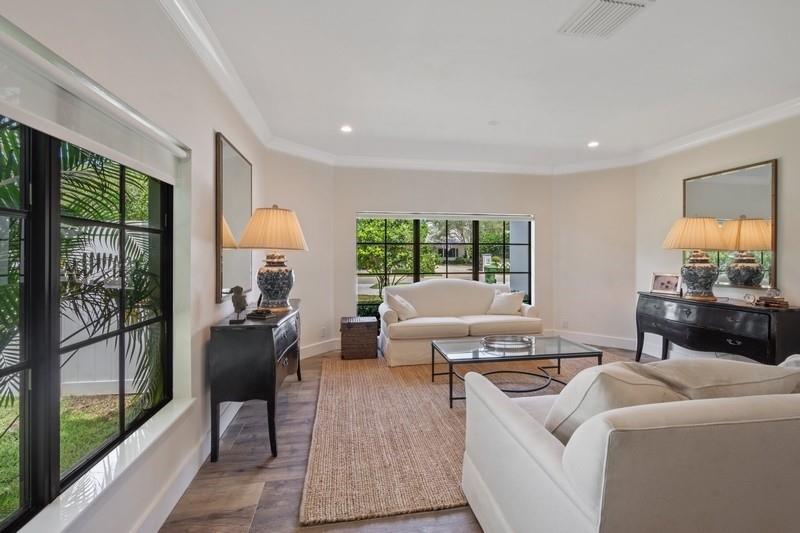 NEW PRICE!Classic, timeless, elegance. Stunning renovation located on a quiet street in Coral Ridge. The dramatic entrance leads you to this masterpiece that was carefully created by the current owners. No expense has been spared from the wide plank wood tile flooring to the fixtures and hardware found throughout this rare find. The kitchen is a chef's dream and offers gas cooking. There are three generously proportioned bedrooms, three bathrooms, and comfortable living and dining areas. Entertain at the built-in bar or relax on the lanai overlooking the pool. The laundry room has its own sink and the oversized two car garage has ample space for additional storage. Foam insulation ensures that this home is quiet but also surprisingly cool. Walk to Cardinal Gibbons school. Simply perfect!