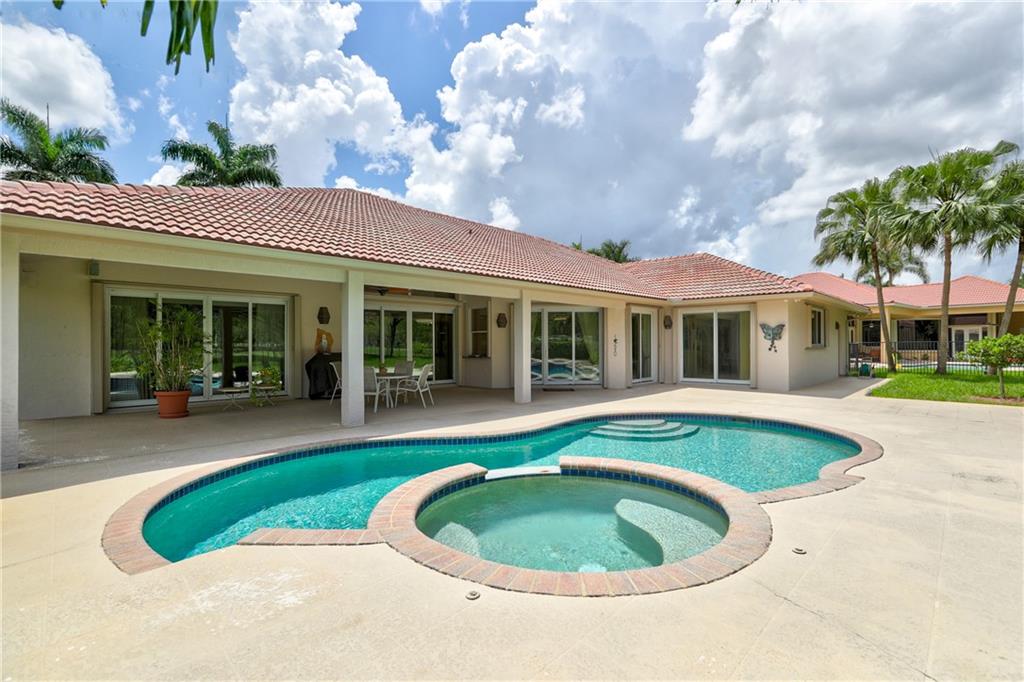 Directly on Par 3 11th hole on the Tour Course w/ Golf View makes your yard feel like an acre. *Priced below Appraisal $1,1m* Inspection Done. Brand New Roof. High Elevation 1 story Home w/ 14 ft ceilings, Open Floorplan w/lots of windows & natural light. Master Suite w/sitting room (could be office / 6th bedroom / or huge walk-in closet), Powder Room, Marble & Hardwood Floors in main areas, Junior Master 2rd Bedroom, Jack and Jill 3rd & 4th Bed, the 6th bed has ensuite Cabana Bath being used as a bonus room. Gas Heated Pool & Spa. Accordion Shutters on the whole house. Almost $500,000 in equity: Compare to 2490 Provence Cir (Closed $1,498,000 similar size 4111 sq ft). Enjoy Weston Hills Lifestyle, Guard Gated.