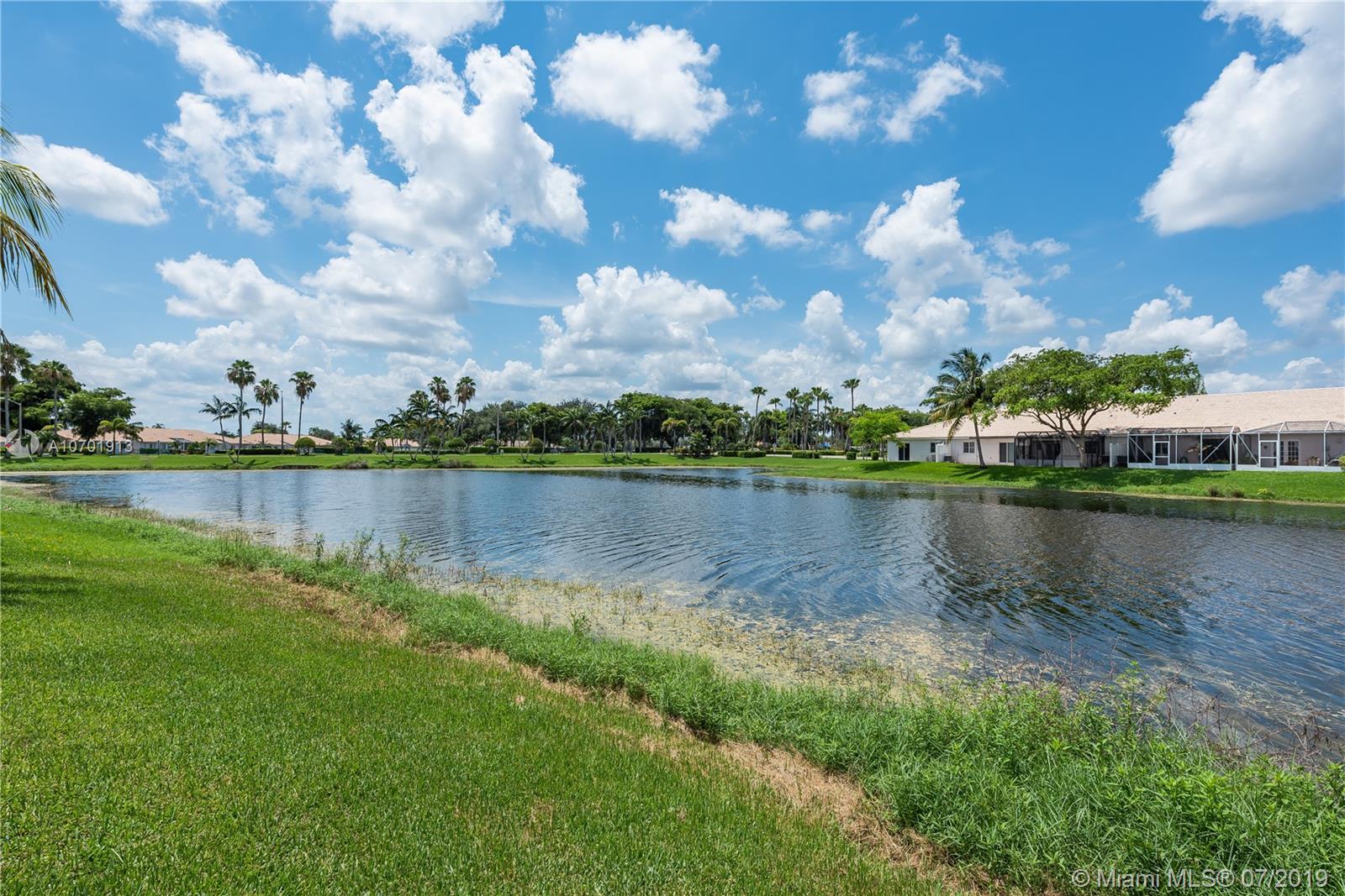 This Immaculate home is ready for a new owner. From the moment you enter you will notice the neutral tile & bamboo floors, volume ceilings, newer paint, a modern new kitchen with silestone counters, built in wine cooler & a stainless steel backsplash and appliances complete with remodeled and modern baths. Step outside and you are welcomed to a private oasis with a custom free form heated pool and automated spa overlooking the serene lake. This property is also fully fenced.Ideally located near shops, malls, transportation and highways. The community is pet friendly, offers tennis and a community pool along with low Assoc fees. Sq Ftg obtained from BCPA