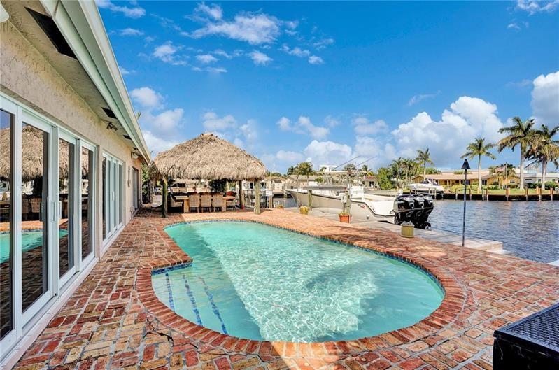 Amazing 3 bedroom 3 bath home, 75 feet of waterfront with ocean access. Only one fixed bridge. Impact windows. Updated kitchen with top of the line appliances. Owner Suite bathroom is like no other! Over sized shower with Spa shower heads. Walk in closet in Owner Suite and 2nd bedroom. Air conditioned 1 1/2 car garage. Great outdoor living with water view and over sized Tiki Hut in the pool area.