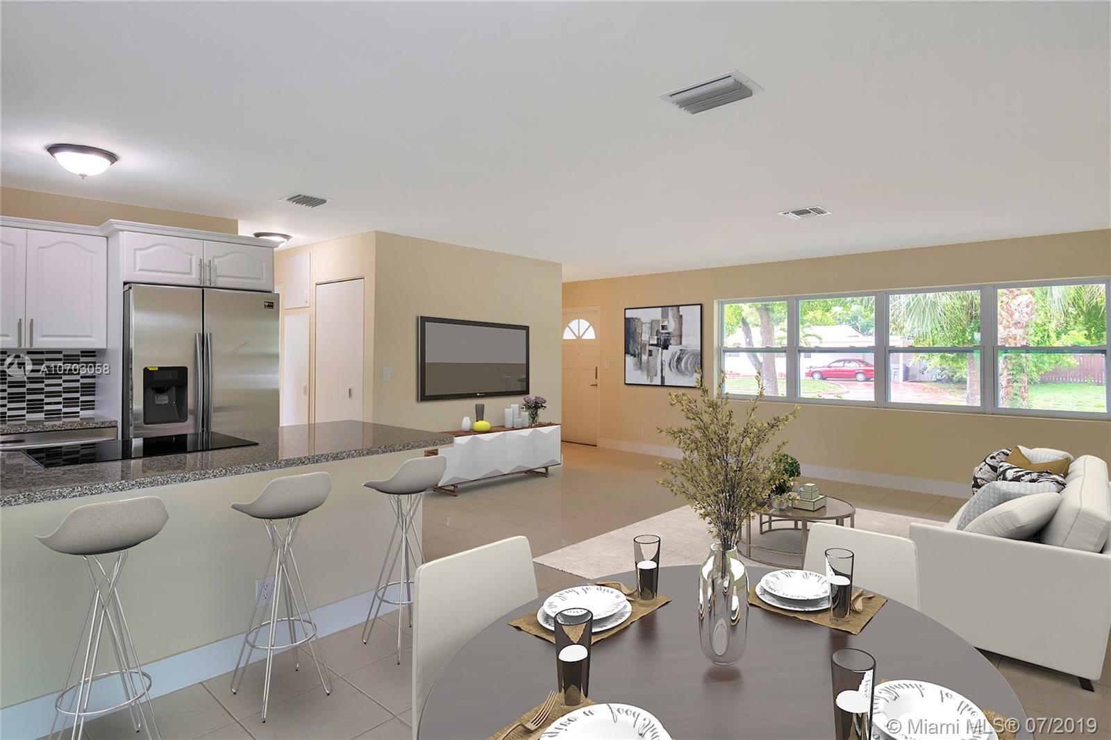 Come preview this fully renovated 2 bedroom, 1 bathroom home with an attached garage. The open and bright floor plan features an upgraded kitchen with stainless steel appliances, recently serviced roof, impact windows, new water heater, ceramic tile floors and brand new laminate flooring through out the home. Patio lanai and large backyard with plenty of room for a boat or simply to build your dream pool. Perfect Pompano location near shopping, dining, and entertainment. The beach is only 10 minutes away! Golfing located around the corner. Very easy to show, book your viewing today! FHA & VA APPROVED!