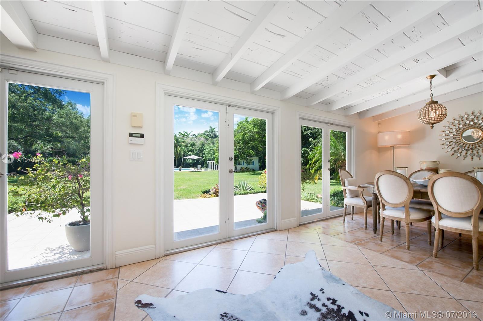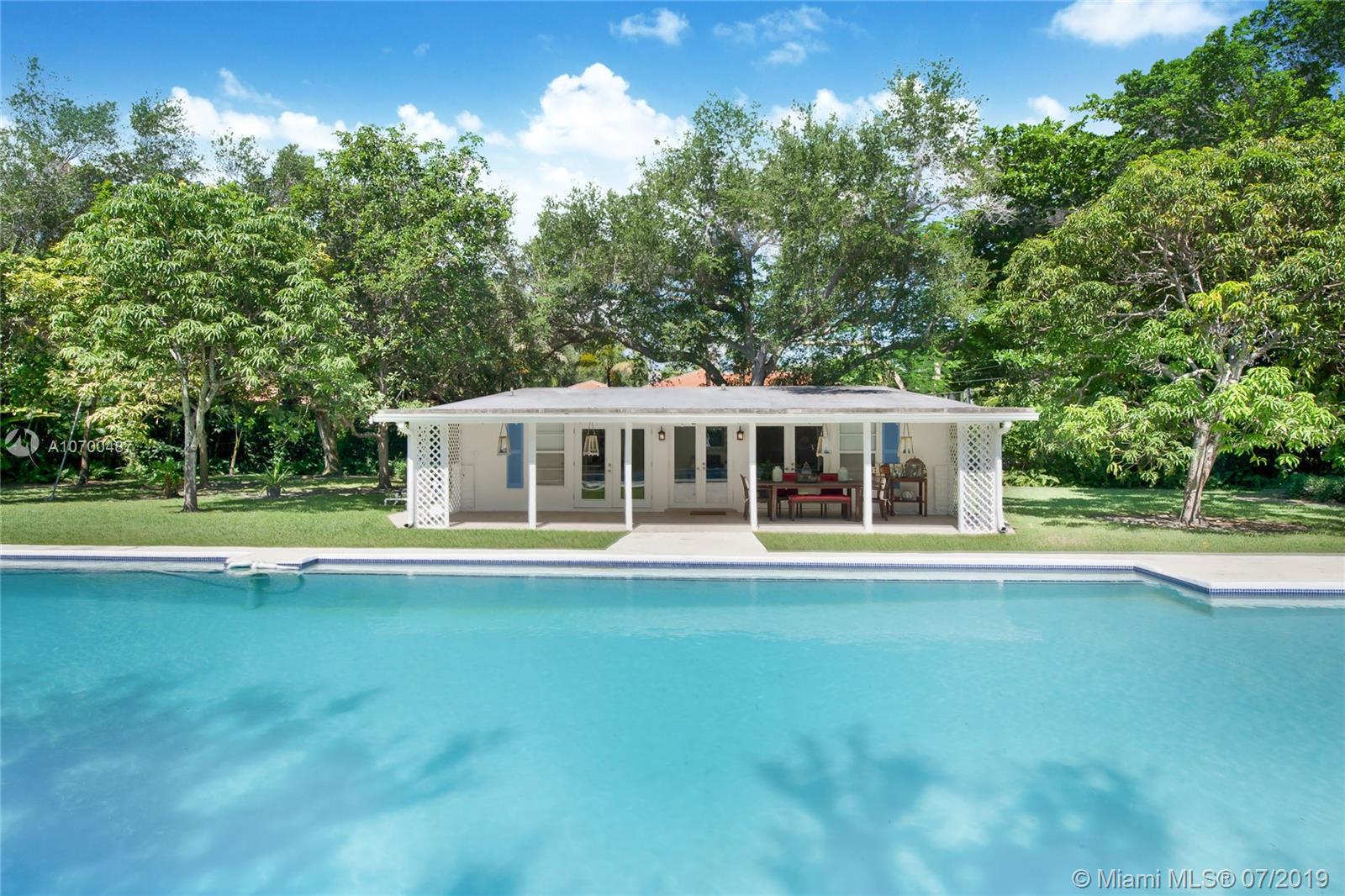 The stage is set for fabulous in this gated North Pinecrest private oasis. Enjoy a coveted location on a quiet cul-de-sac street with 45,738 SF of property to enjoy extensive long views of open land bordered by mature trees & foliage. Cottage style 3 bed 2 bath renovated main house, with open floor plan & white Pecky Cypress beam ceilings. Living room with fireplace, dining room, beautiful kitchen with triple glass doors overlooking an 80’ pool & separate guest house. Main house has impact glass and 1 car garage. The guest house features white Pecky Cypress ceilings, living area, kitchen and choice of 2 bedrooms & 1 bath, or one bedroom plus a multi-purpose room. Inviting front porch to relax & enjoy the incredible surroundings. This is a one of a kind opportunity you don’t want to miss!