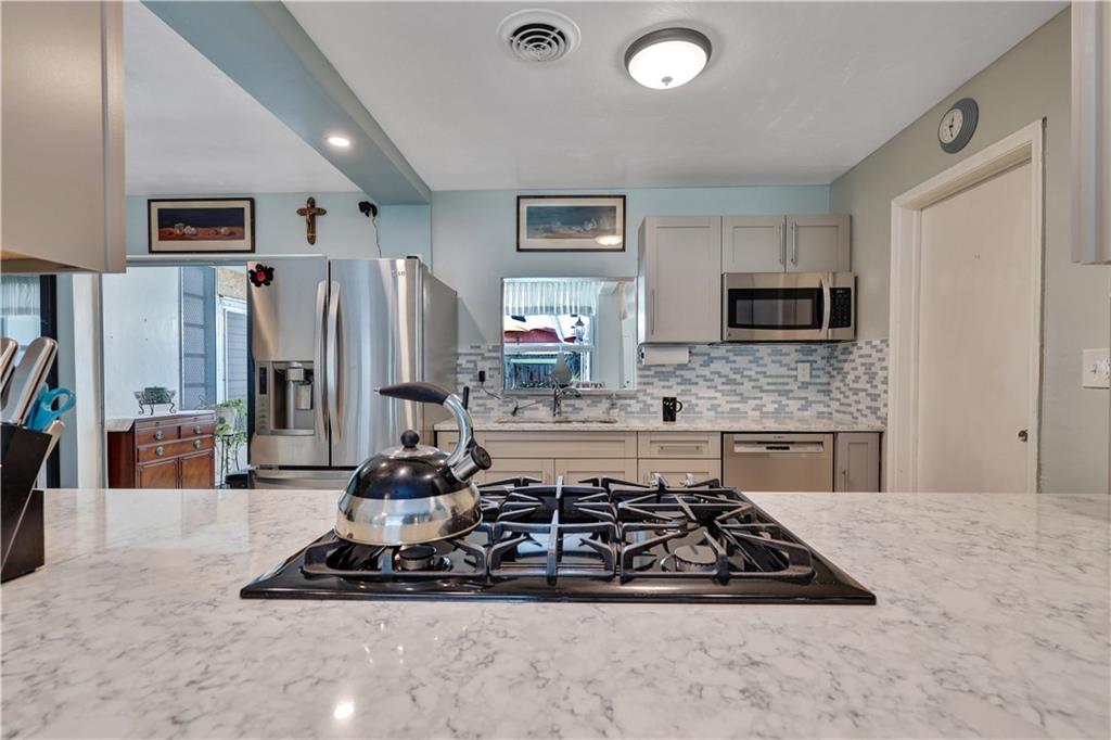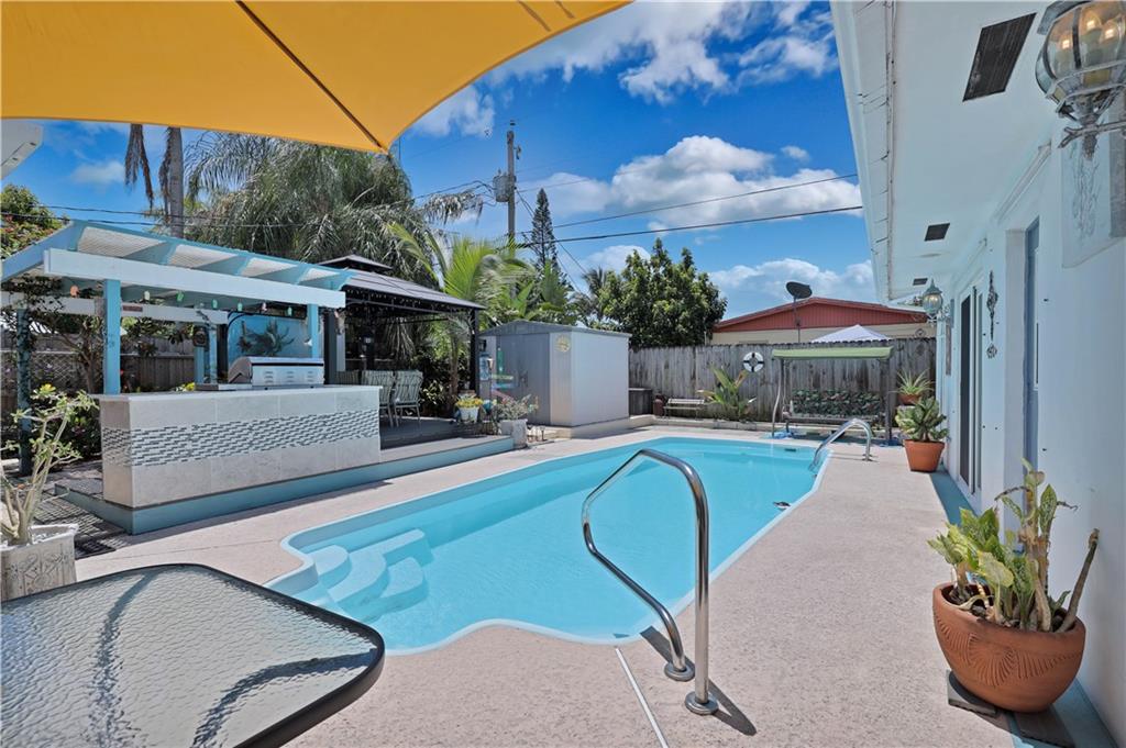 This meticulously maintained home offers 3 bedrooms, 2 bathrooms, 1 car garage, and a pool! This home has updated flooring throughout and no carpet anywhere! The beautifully remodeled kitchen is equipped with shaker style cabinets, granite countertops, updated backsplash, SS appliances, and a gas range! The welcoming backyard is finished with a large swimming pool, outdoor kitchen, fire pit and an cabana! This home has an open concept great for entertaining guests. It is conveniently located to shops and restaurants and has NO HOA!
