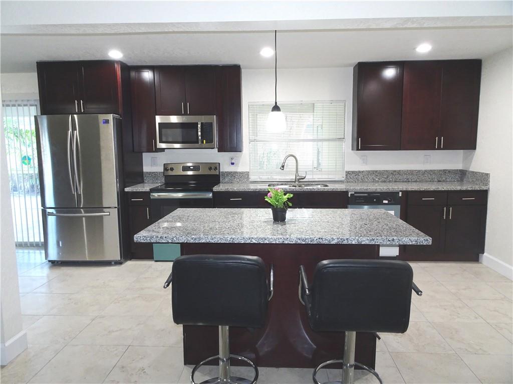 Nicely updated 4 bedroom, 2 bath Single Family Home in desirable East Pompano Beach neighborhood. This lovely home has many luxurious features including; 42 inch Espresso Wood Cabinetry, kitchen island, modern Brazilian granite counter-tops, stainless steel appliances with balance of 1 year warranty, new HVAC unit to be installed prior to closing with 10 year warranty, modernly updated bathrooms, walk-in closet in the master, grey oversized tiles in the living areas, updated laminate flooring in the bedrooms, open spacious floor plan, new baseboards, fresh paint in and out, covered patio, no HOA fees, close to beaches, shopping, and fine dining, FHA and VA are always welcomed.