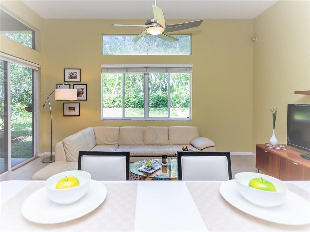 Beautifully maintained 4Bed/2.5Ba/2CG single story residence with covered patio, situated on private berm lot in desirable enclave of Camellia Island, in the very heart of Weston! Spacious split floor plan, with high volume ceilings and tile flooring throughout living area. Kitchen with snack bar & breakfast bar niche features newer stainless steel appliances including newer refrig & dishwasher plus new oven 2019. Pristine master bedroom has gorgeous wood lam flooring, walk-in closets and gorgeous renovated master bathroom. Other newer features include new hot water heater 2018, washer/dryer 2017 & AC 2012. Low quarterly HOA includes 24hr guard gate & lovely neighborhood park just up the road. Nearby trendy Weston Town Center & world class recreational facilities! A+ schools! Welcome Home!