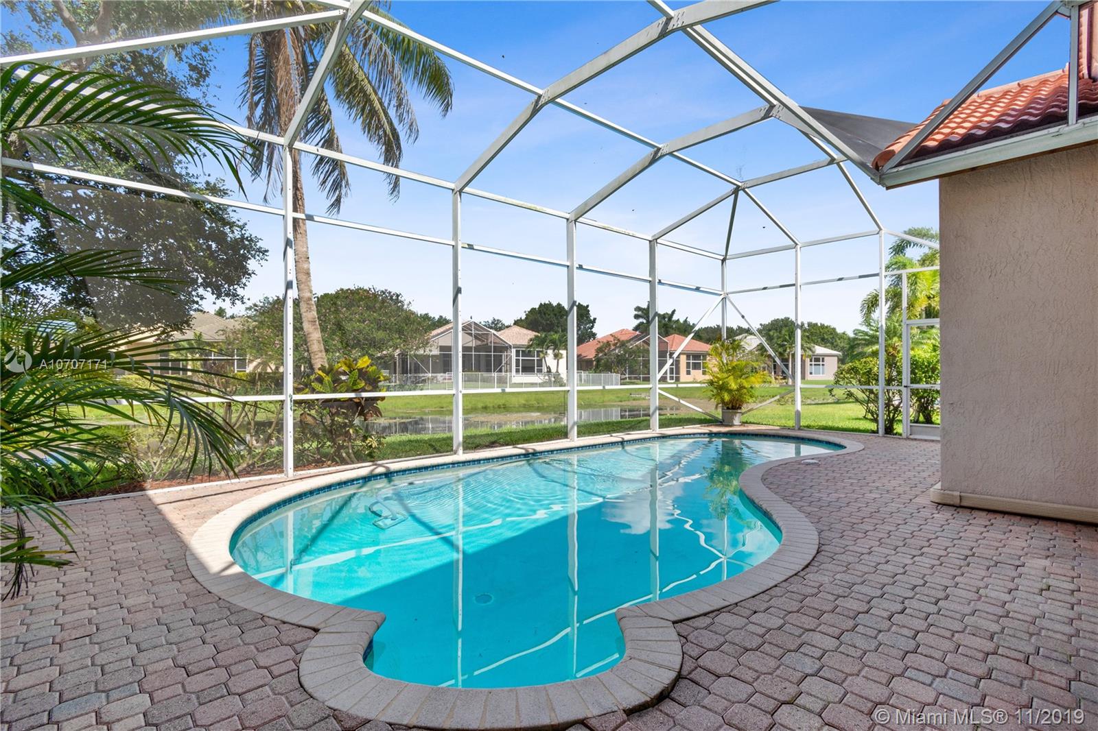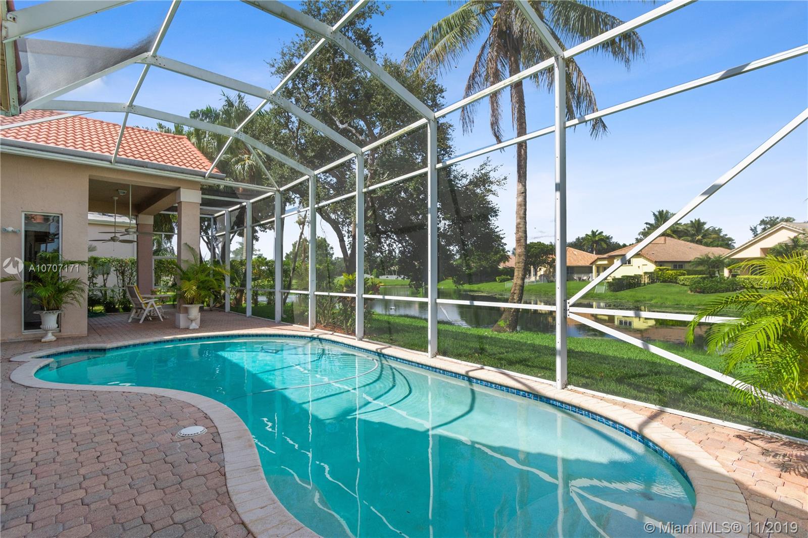 New laminate floors in bedrooms and living areas. New tiled master shower with frameless enclosure. Interiors freshly painted. Cheerful, bright 4 bedrms, PLUS an office, overlooking lake. New roof (May 2019), A/C, kitchen appliances & washer/dryer are all new too. Open layout and triple split bedrm plan, 3 bathrooms. Huge picture windows all along the back. Backyard features pool with screen enclosure and lake view. Lot is 80x136. Central Vacuum, 12'volume ceilings, hurricane shutters, sprinkler system draws from lake for savings on water bill. Low HOA dues $267/mo. incl: Basic cable with HBO, High-speed internet, alarm monitored and gate-guarded 24/7. Lake Estates at Rolling Hills is a prestigious community, located close to NSU, Grand Oaks golf course. Top schools. In move-in condition.