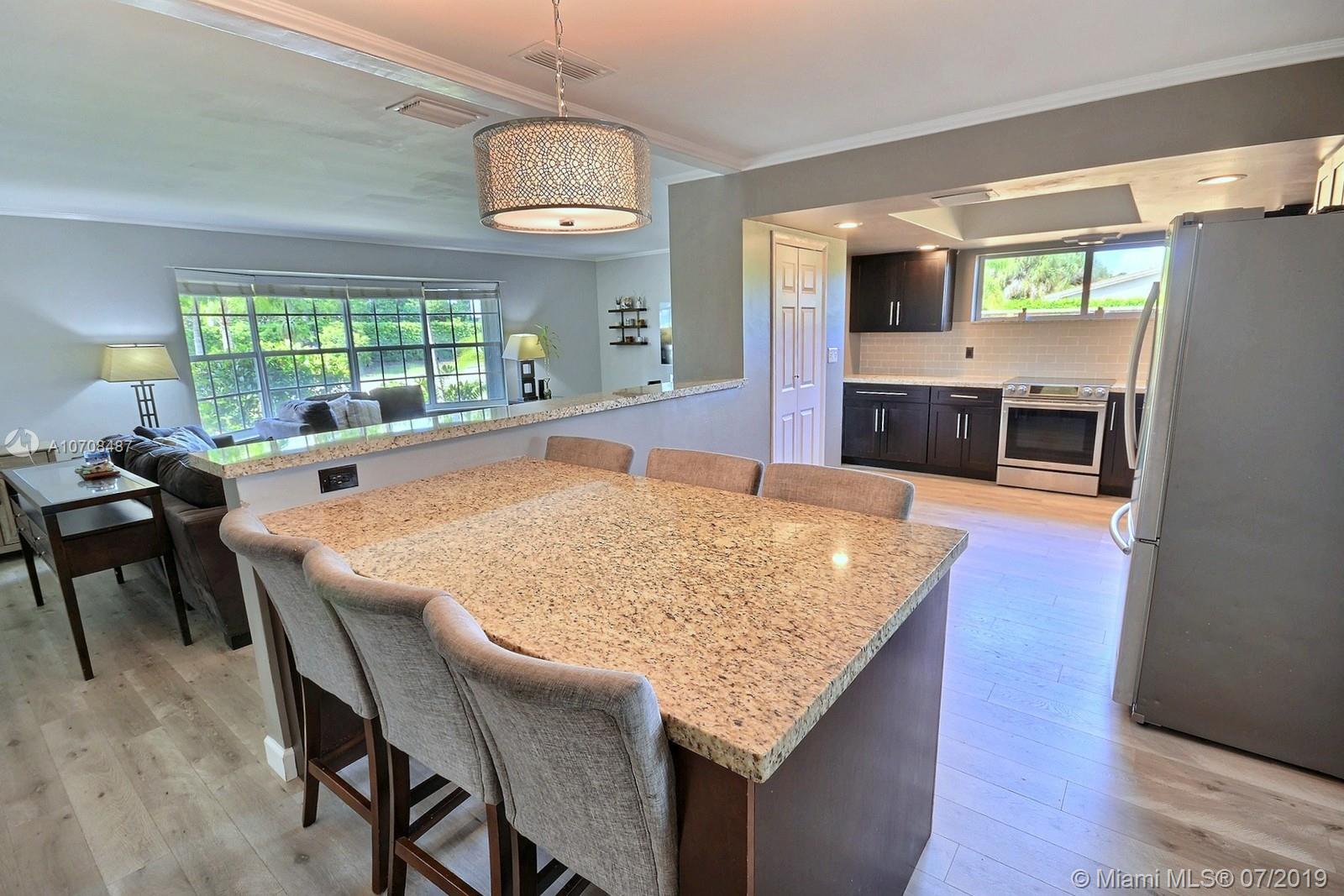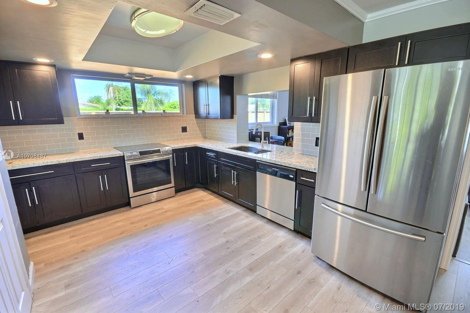 BEAUTIFUL CORNER LOT HOME IN HOLLYWOOD HILLS WITH OPEN FLOOR PLAN, REMODELED KITCHEN, STAINLESS APPLIANCES, GRANITE TOPS, BUILT EAT-IN COUNTER, GORGEOUS FLOORS, LOTS OF NATURAL LIGHT, ELEGANT FIXTURES, LAUNDRY ROOM, ACCORDION HURRICANE SHUTTERS. LARGE BACKYARD WITH ROOM FOR A POOL, NEW HORIZONTAL WOOD FENCE, LONG DRIVEWAY AND ONE CAR GARAGE. NICE CURB APPEAL, HOME FRESHLY PAINTED, CIRCULAR DRIVEWAY, NO HOA.