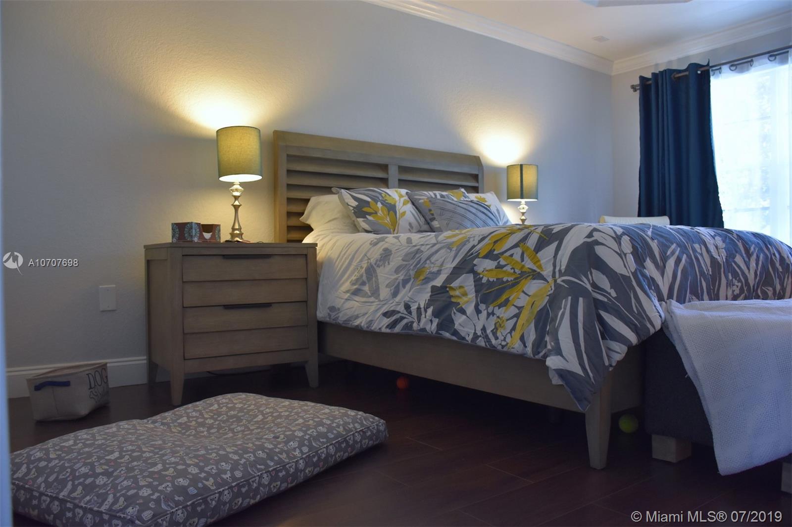 BRIGHT AND MODERN, 4 bedroom, 2.5 bathroom townhome in the desirable Silver Falls community. Crown molding throughout the house. Upgraded kitchen with quartz countertops. CUSTOM zebra shade. Upgraded bathrooms. Spacious master suite with tray ceiling and TWO walk-in closets with built-in organizers. Upstairs laundry with newer washer and dryer. Modern stair railing. Beautiful back patio with privacy fence. Accordion shutters for every opening. Impact garage door and front door. Spacious two-car garage with new lighting and ceiling storage rack. HOA fee includes: cable TV, landscaping maintenance, insurance (exterior walls and roof), 24 hour guard gate and wonderful community amenities( tennis, and basketball courts, clubhouse, pool and playgrounds). Truly move-in ready. Bring your offers!