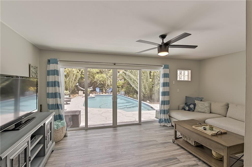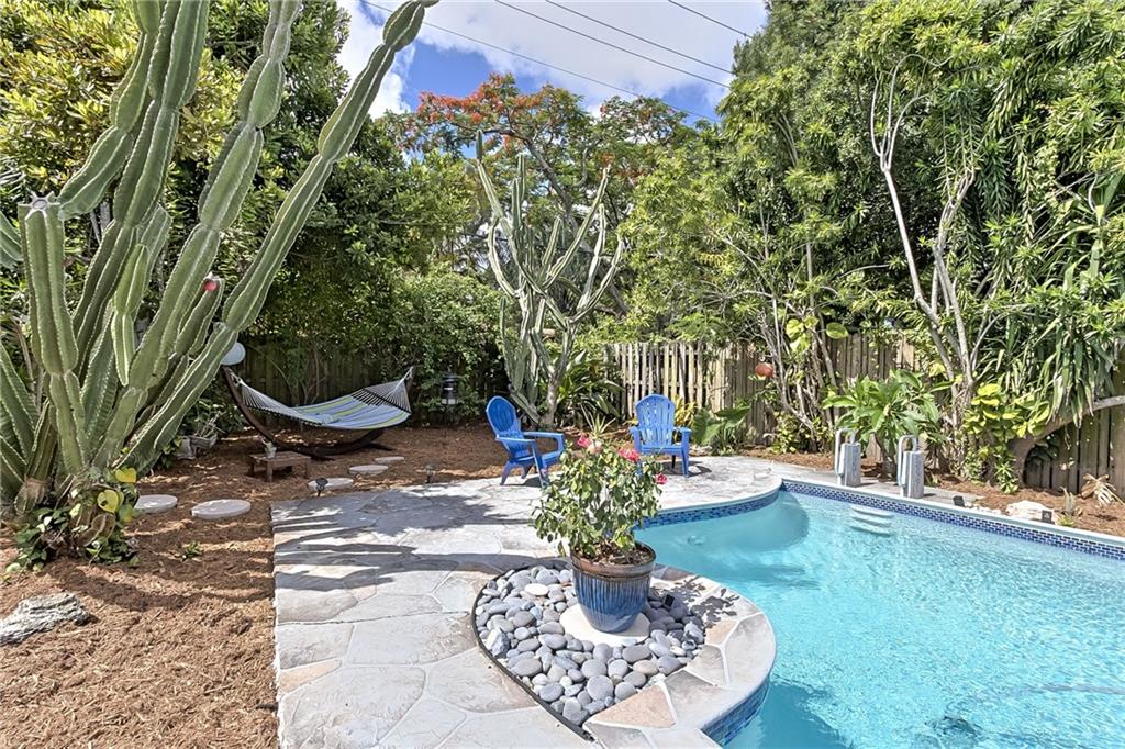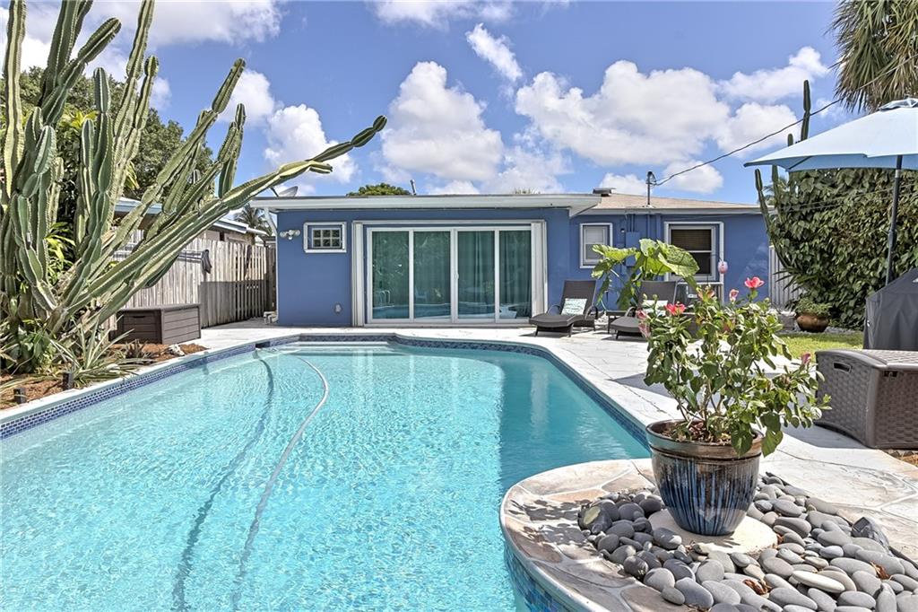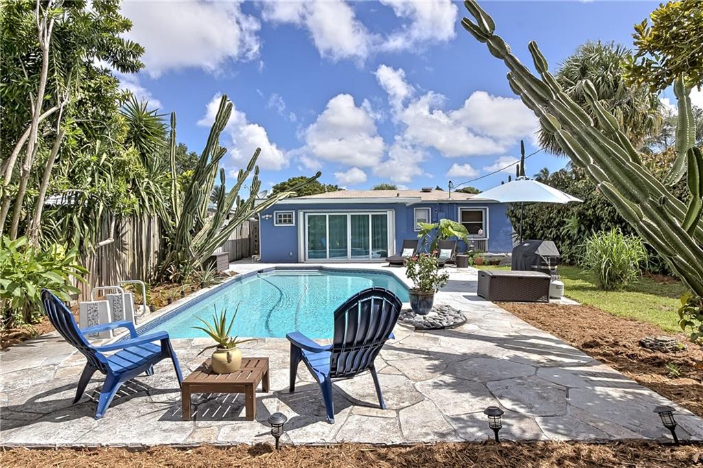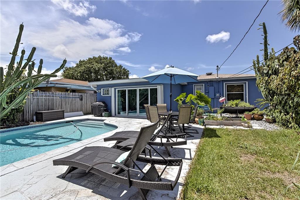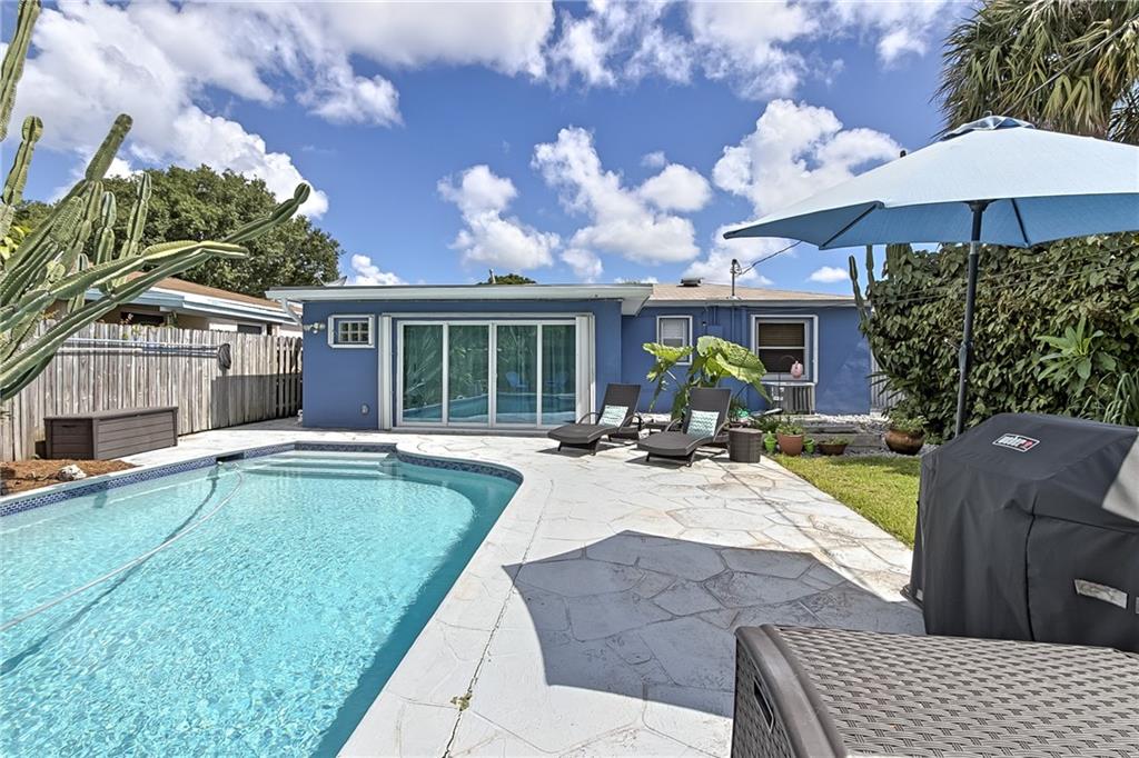 Remodeled 2 bedroom 1 bath spacious pool home. Newer kitchen with granite counters,gas stove & upgraded appliances. Home offers room at entrance that can be used as an office or sitting area, living room, dining & family room. Family room has sliders that lead out to the pool. Bathroom recently completely remodeled with walk in shower. Newer engineered wood flooring throughout entire home. Home has hurricane protection for windows and doors. Recently painted inside and out for nice fresh look. Large backyard with big pool that was recently resurfaced & also with new pump and filter system. Water heater and central a/c are newer as well. Double wide driveway is newer with one car carport. Washer and dryer are in carport area. Nice residential area close to downtown and airport. SHOWS WELL!