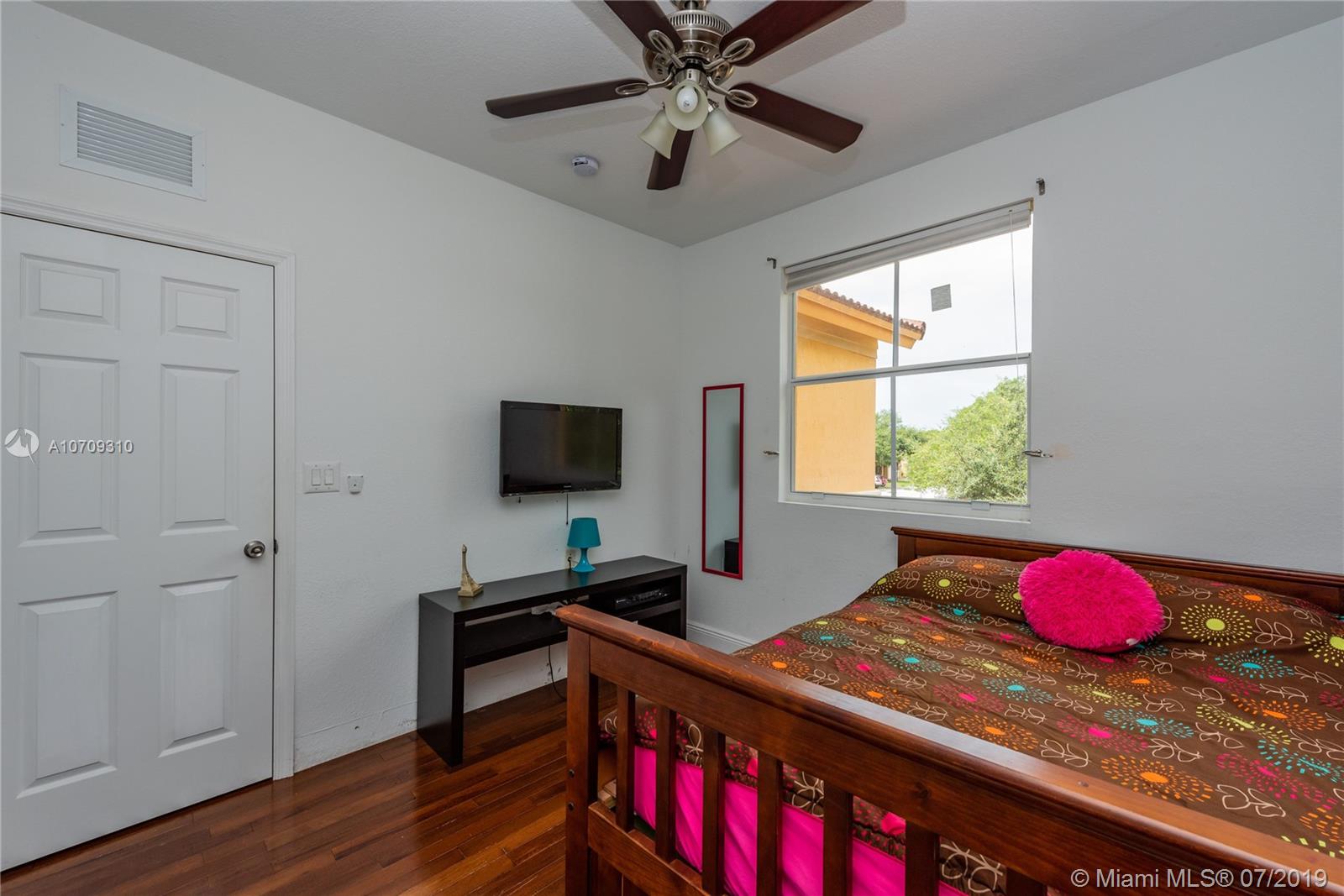 Great corner townhome located in Antilles - Islands at Doral. This 3 bedroom, 2.5 bath home offers tile flooring on the 1st floor, wood flooring on the 2nd floor, granite kitchen countertop, stainless steel appliances, and paved patio. Large master bedroom w/ huge walk-in closet. Great amenities and low association fees. Easy to show.