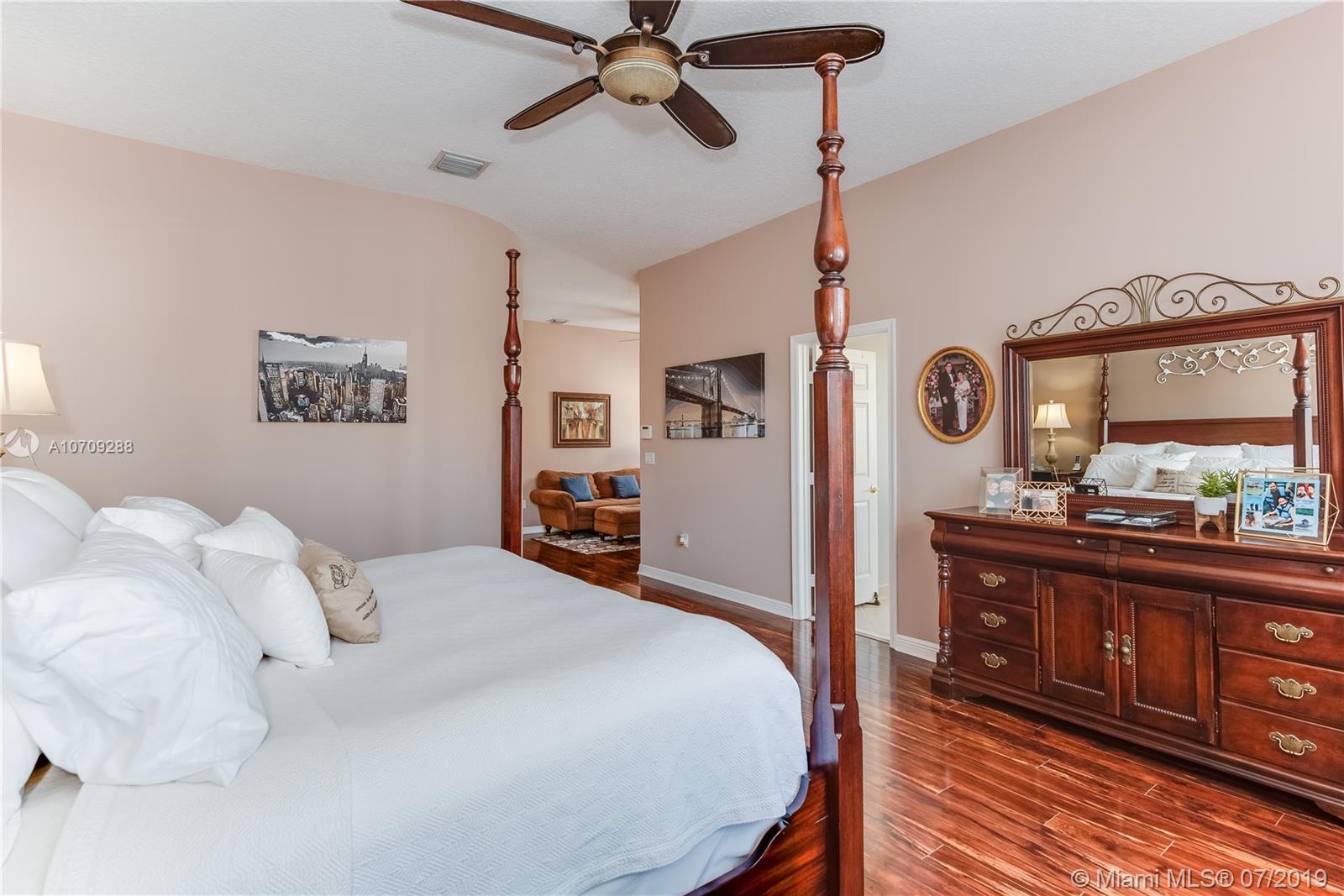 SPECTACULAR CAMBRIA MODEL IN SOUGHT AFTER RIVIERA ISLES ** THIS POPULAR FLOOR PLAN FEATURES 4 BEDROOMS, 3 BATHROOMS AND TWO CAR GARAGE ** ONE BEDROOM WITH A FULL BATH CONVENIENTLY LOCATED ON THE FIRST FLOOR ** HUGE MASTER BEDROOM WITH SEPARATE SITTING AREA AND WITH HIS AND HERS BATHROOM AREAS ** AMPLE KITCHEN WITH UPGRADED CABINETS, STAINLESS STEEL APPLIANCES AND BREAKFAST AREA ** BEAUTIFUL PORCELAIN TILE ON FIRST FLOOR AND HARDWOOD ON STAIRS AND SECOND FLOOR ** ACCORDION SHUTTERS ON SECOND FLOOR WINDOWS ** ELEGANT CUSTOM DRAPES AND WINDOW TREATMENTS ** UPGRADED GLASS DOUBLE DOOR AT MAIN ENTRANCE ** AMAZING CURB-APPEAL WITH PROFESSIONAL LANDSCAPING FRONT YARD WITH ROCKS WATERFALL FOUNTAIN ** “PRIDE OF OWNERSHIP” EXCELLENT MOVE IN CONDITION ** CALL TODAY!