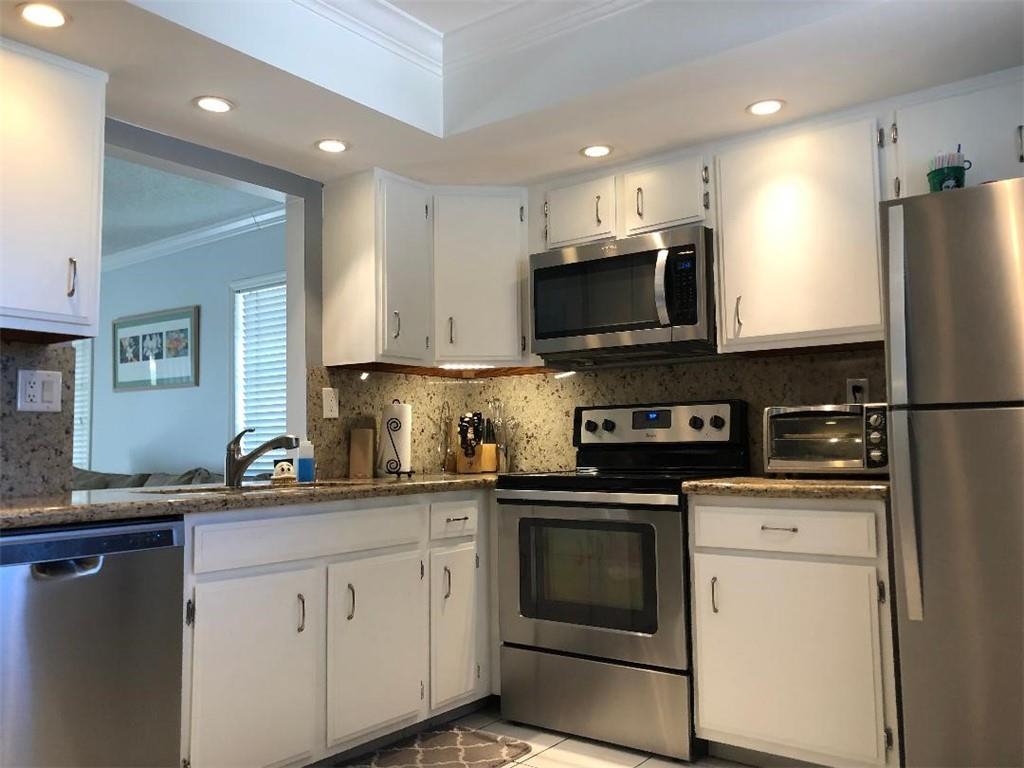 Seldom available, beautifully updated 2/2 townhome w/private one car garage; brand new kitchen w/granite, stainless appliances, passthrough & room for table/chairs; featuring crown molding, recessed lighting, accordian shutters, master bath w/granite/shower, hall bath w/granite/tub; huge walk-in closet. Conveniently located across from Lighthouse Point, many restaurants, shopping, banking, pharmacies & great parks. Lighthouse Village offers resort style amenities including a clubhouse, community heated pool & tennis court and it is pet friendly!