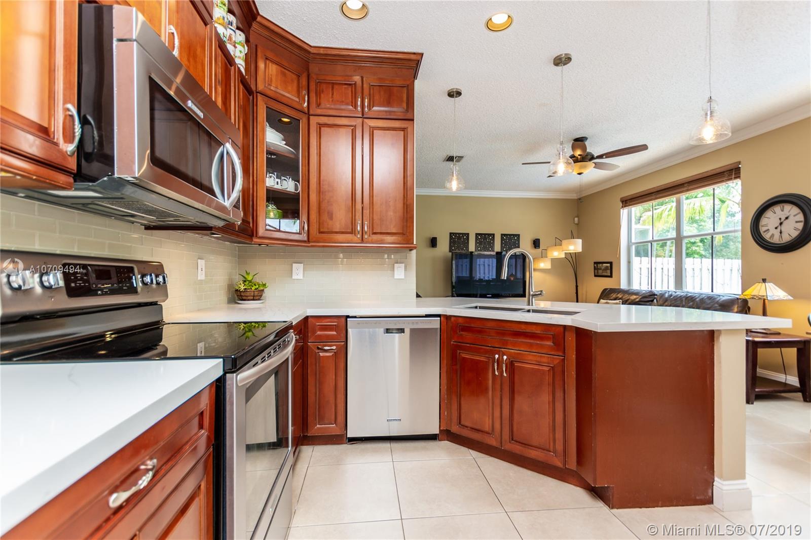 Beautiful 4 bedrooms , 2.5 bath home with an amazing outdoor oasis. Home Features updated kitchen and baths, with real hardwood doors, Cortez counter tops and stainless steal appliances. Home also has accordion shutters, Large heated salt water pool with waterfall and a built in custom BBQ grill perfect entertaining. Must see won't last.