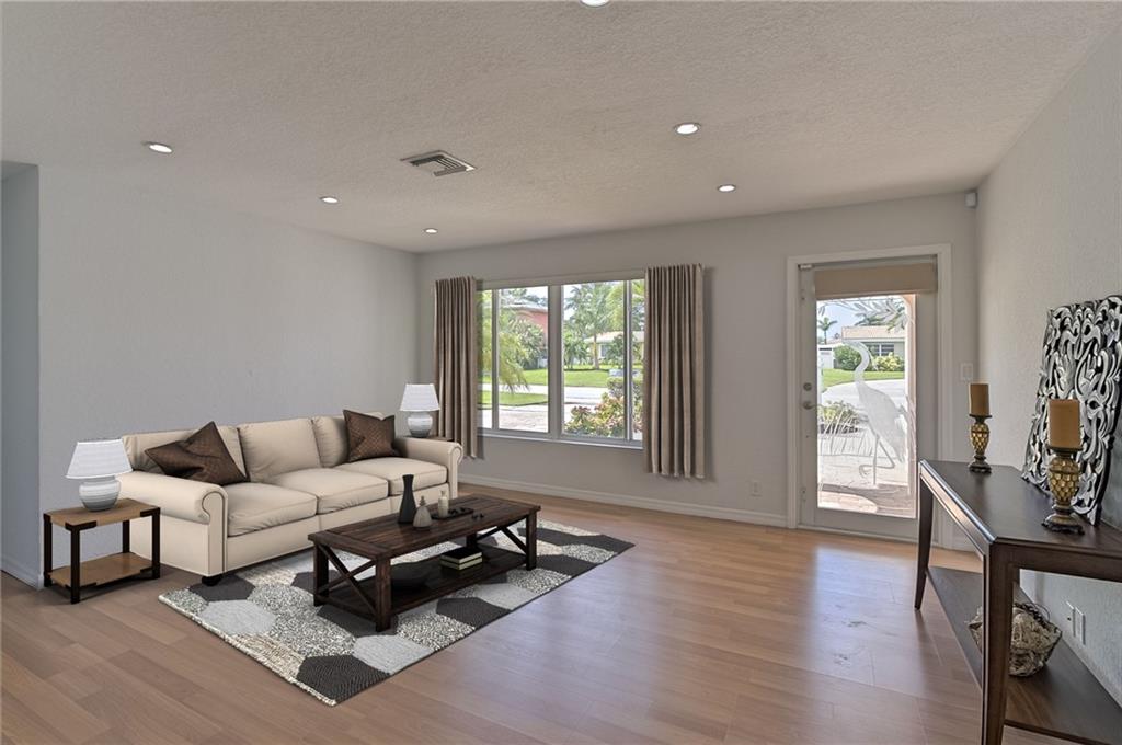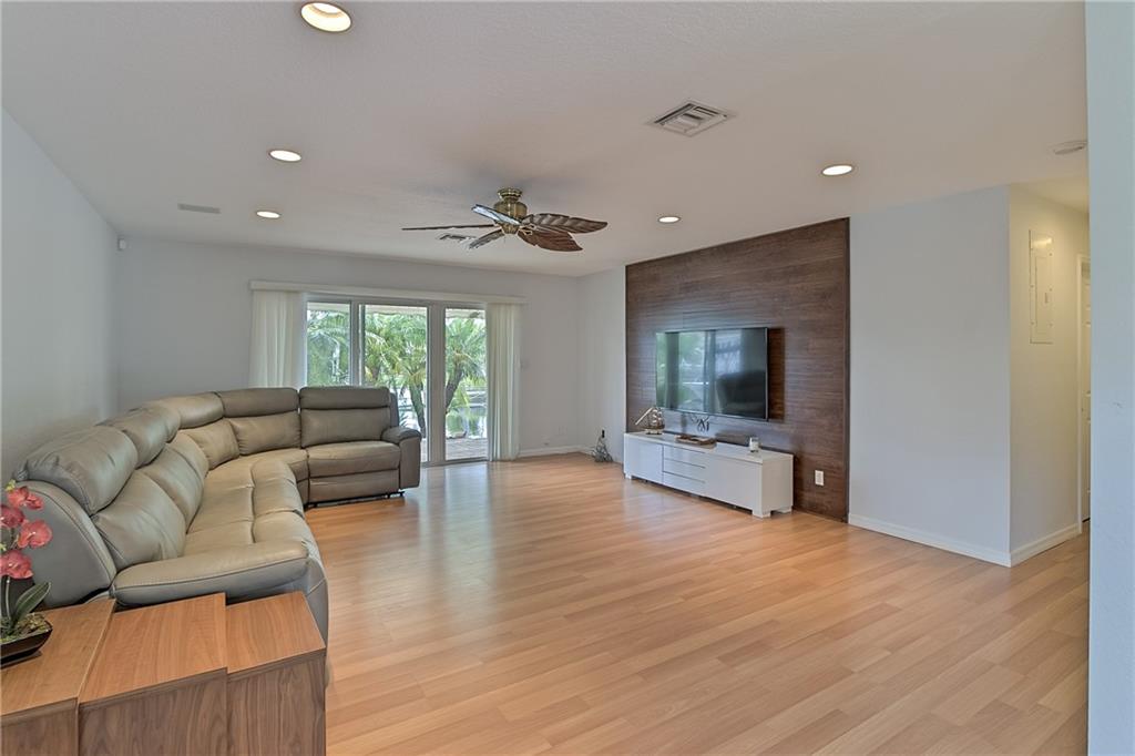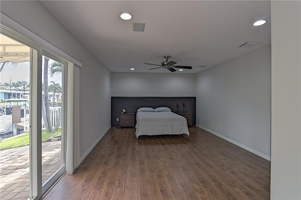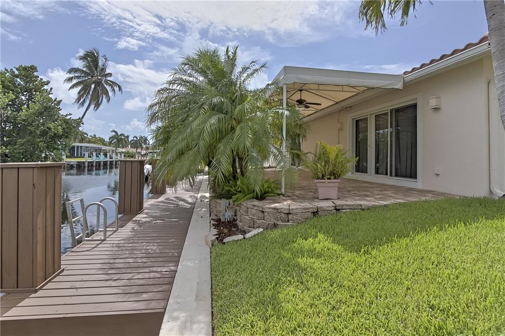 Renovated and spacious waterfront home at desirable Cypress Harbor. New Boat Dock on the 70ft of water frontage w/ Intracoastal & Ocean access (with 2 fixed bridges). Gracious covered patio overlooking the water. Open floor layout with split bedrooms. Large family room w/ sliding doors leading to patio and water view. Highlights of this lovely home are: high ceilings, 2 car garage, large master bedroom w/ walk in closet, closest w/ built-ins, modern master bathroom, recessed lighting, handicap accessibility throughout the home, hurricane impact doors and windows, kitchen w/ granite tops and SS appliances, new washer and dryer, sprinkler system, paved circular driveway. A must see. Lovely neighborhood minutes from beach, shops and entertainment and no HOA!