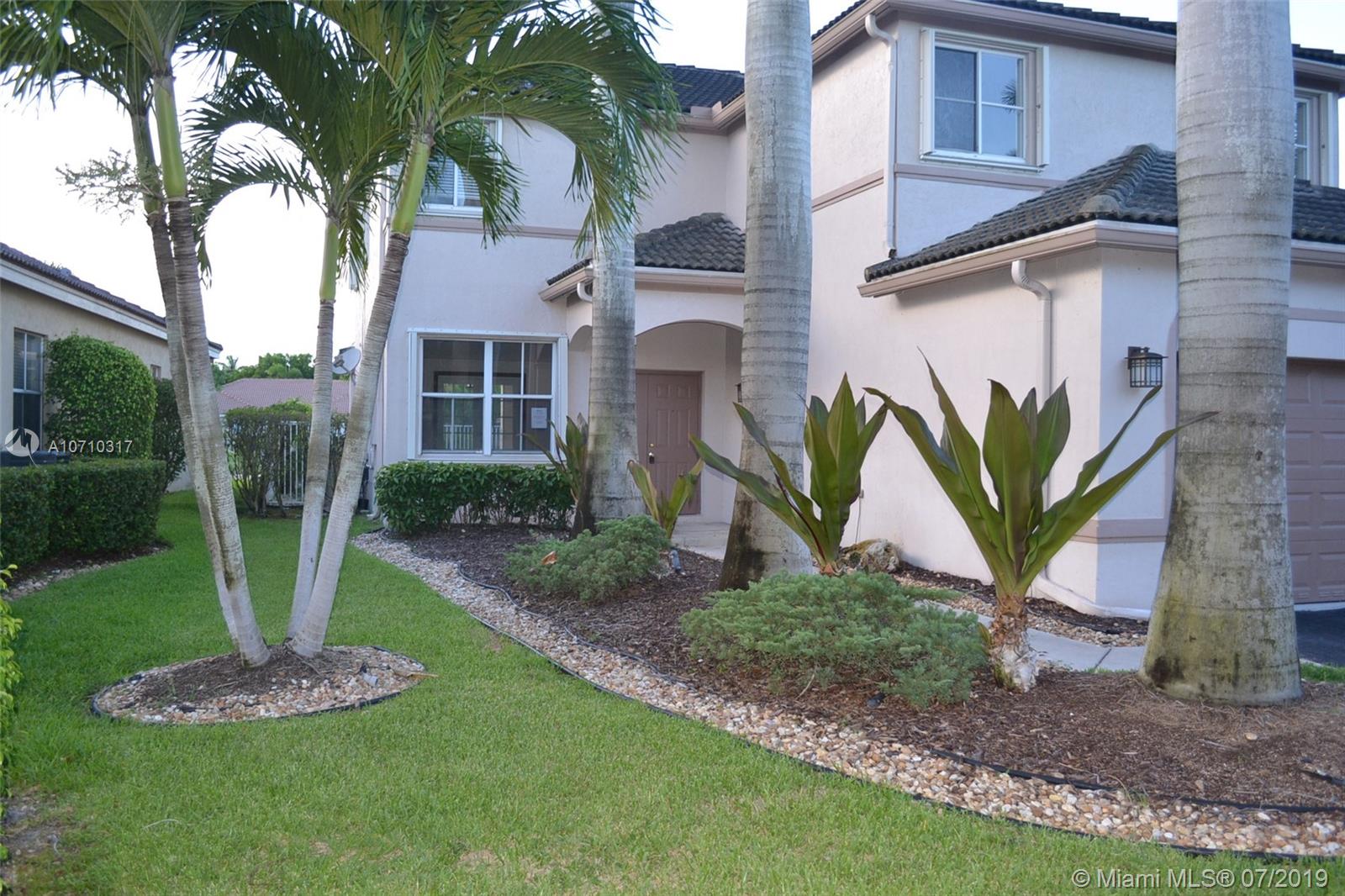 Two-story single-family home featuring 4 bedrooms plus a den and 3 1/2 bathroom, travertine floors, swimming pool with a serene lake view and a covered terrace to enjoy family or friends gatherings . Huge family room with lots of closets and accordions shutters. Enjoy the resort-style community and its amenities such as mini-golf, water slide, roller-hockey rink, soccer field, basketball court, clubhouse with classes, soccer fields, party rentals, four community pools and 24/7 security guard at the gate.