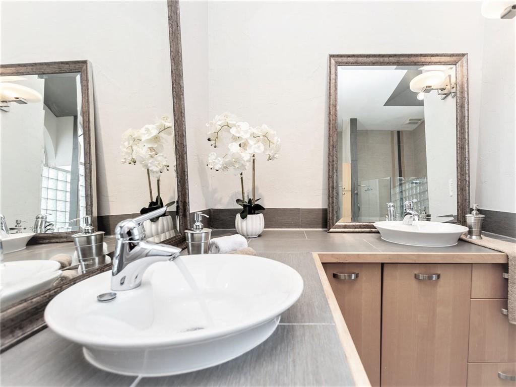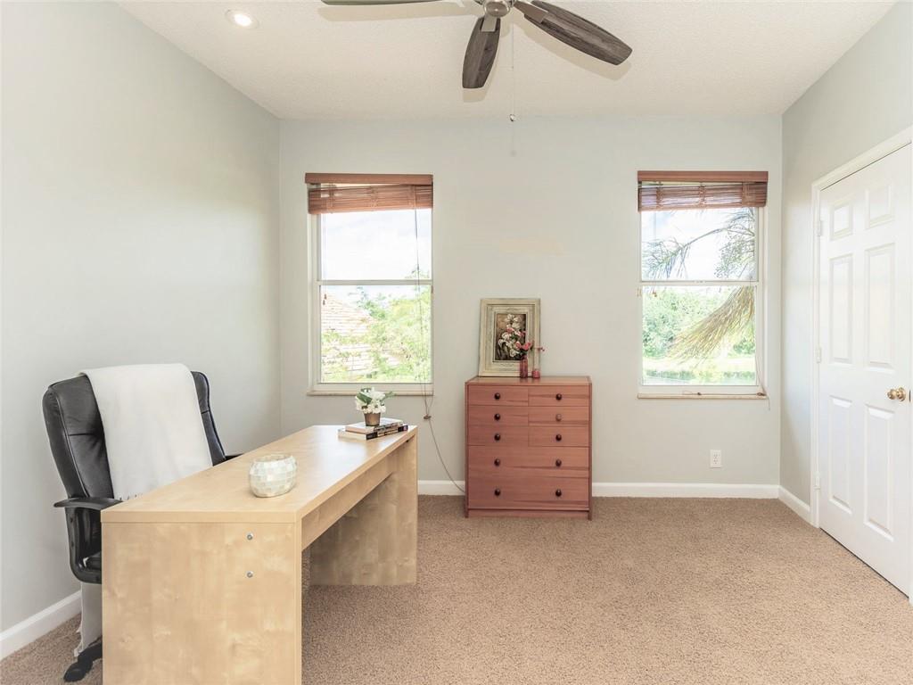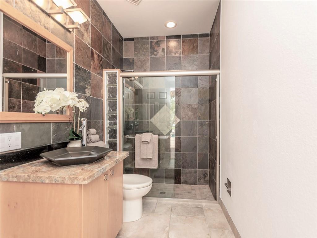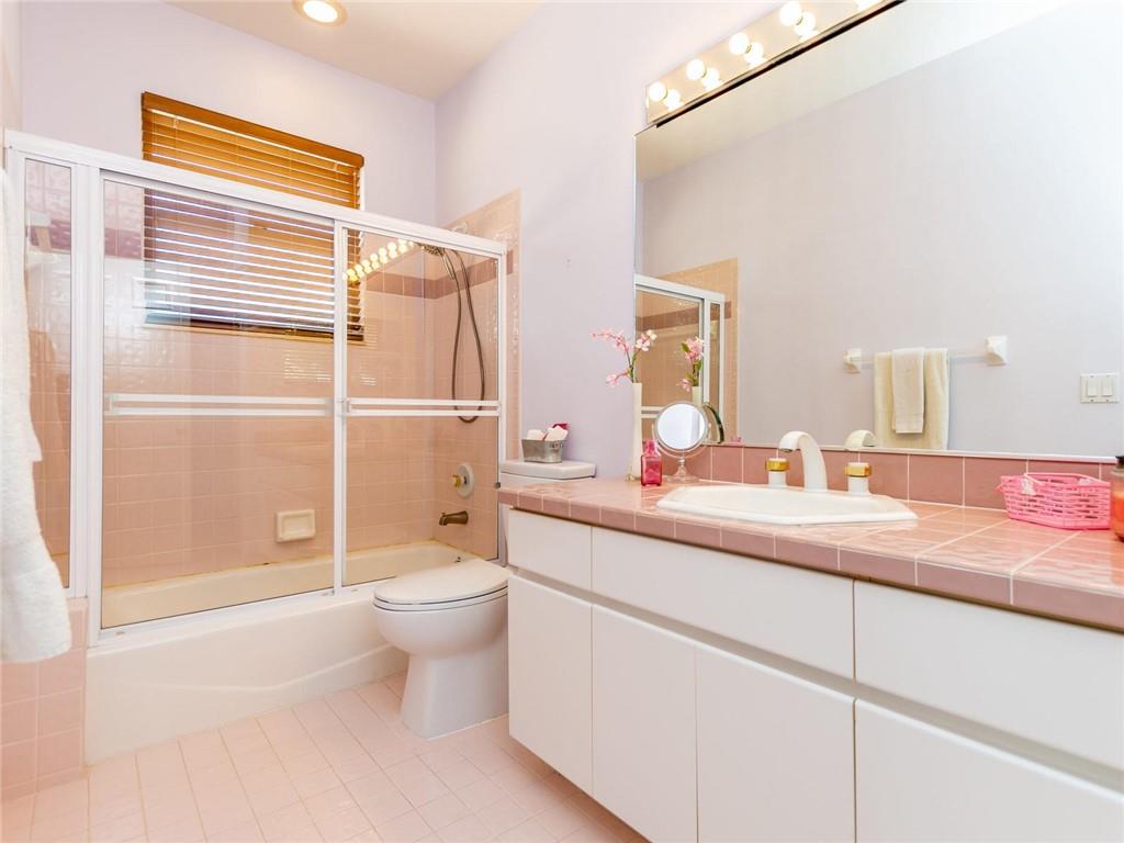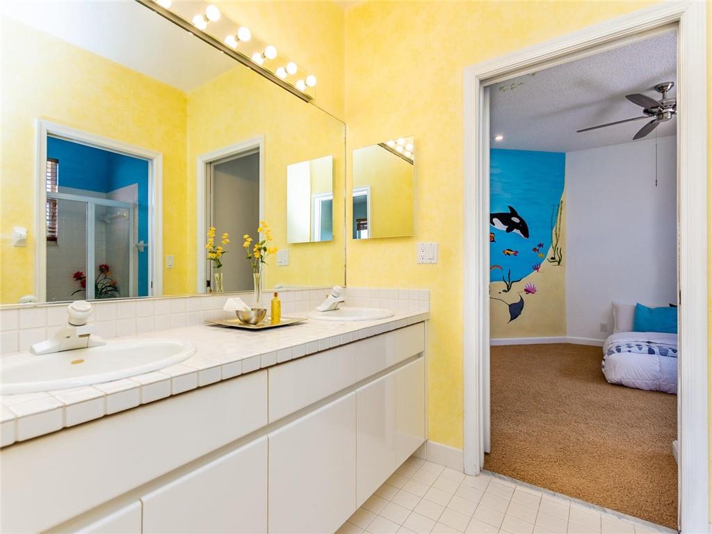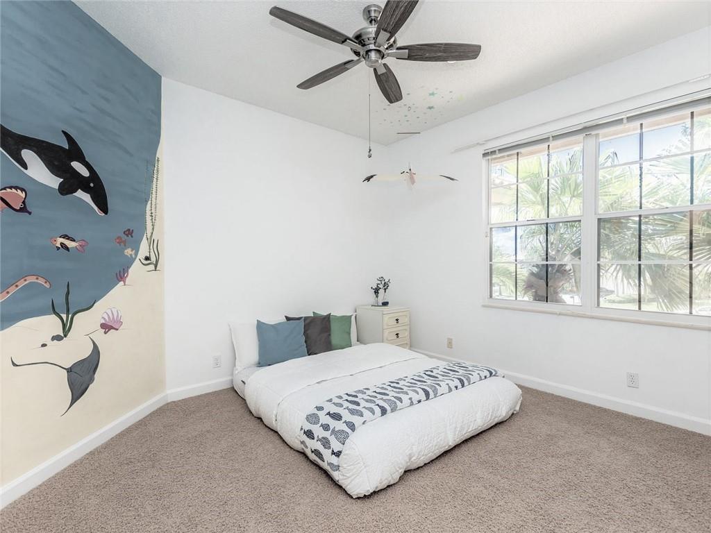 AMAZING HUGE pie-shape culdesac LAKEFRONT lot, OVER half acre, wrap-around WATER views & tons of LAND in upscale boutique Palm Island! Professionally staged, beautifully maintained 5/5/3CG w/salt-chlorinated heated pool/raised spa & long covered patio, screened for year-round comfort! Downstairs spacious Master Suite, Inlaw/Guest Suite + Full Cabana Bath, all with updated bathrooms! Upstairs, 3/2 Kids wing. Stainless/Granite Kitchen w/center island, trendy lighting. Freshly painted interior, new garage epoxy floors, 5-Ton AC compressor 2018. New fans, rose-wood floors in master & living area, new irrigation piping, pool pump, landscape. 3ACs, 2 Hot Water Heaters (one hybrid), custom closets & more! Tot lot, A+ Schools! (Price reflects no shutters, upstairs has original bathrooms & carpet).