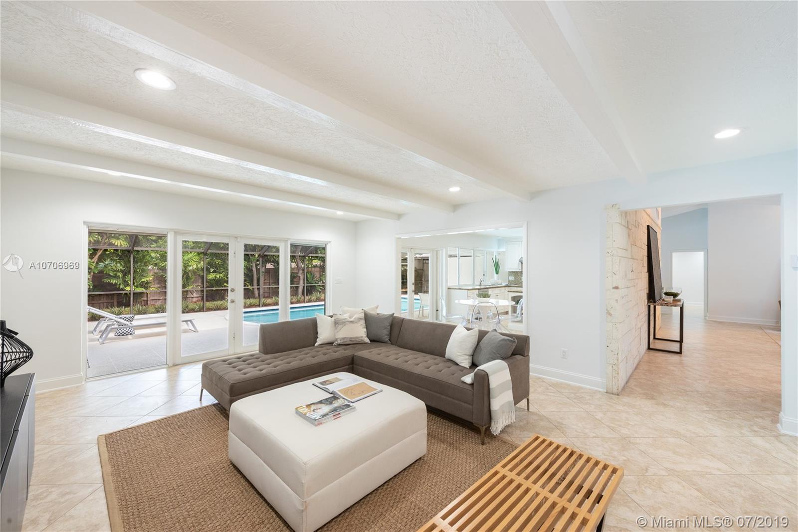 North Pinecrest home on quiet cul-de-sac. 3 bedrooms 2.5 baths with Den off Master that could easily be converted into 4th bedroom. This home has been fully renovated and features high ceilings, marble floors throughout and a fabulous floor plan. Designer eat in kitchen with granite countertops and stainless steel appliances opens into spacious family room. Master Bedroom has beautiful view to the pool with vanity area and walk-in closet. Master Bath with double sinks, skylight shower and private atrium. Formal Dining room, Living Room, Laundry Room, 2 car garage and enclosed pool & patio. Schools are Pinecrest Elementary, Palmetto Middle/Senior.