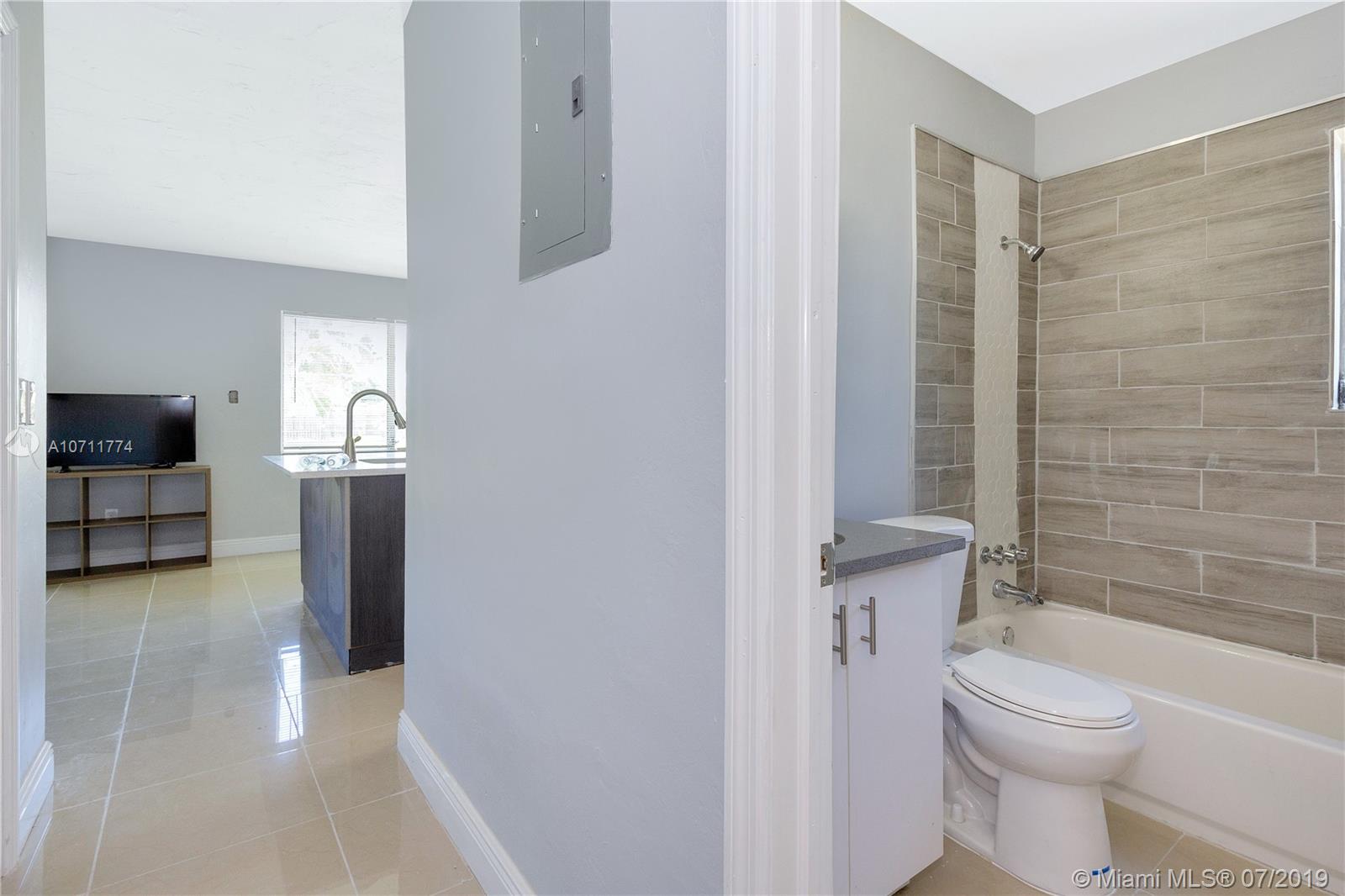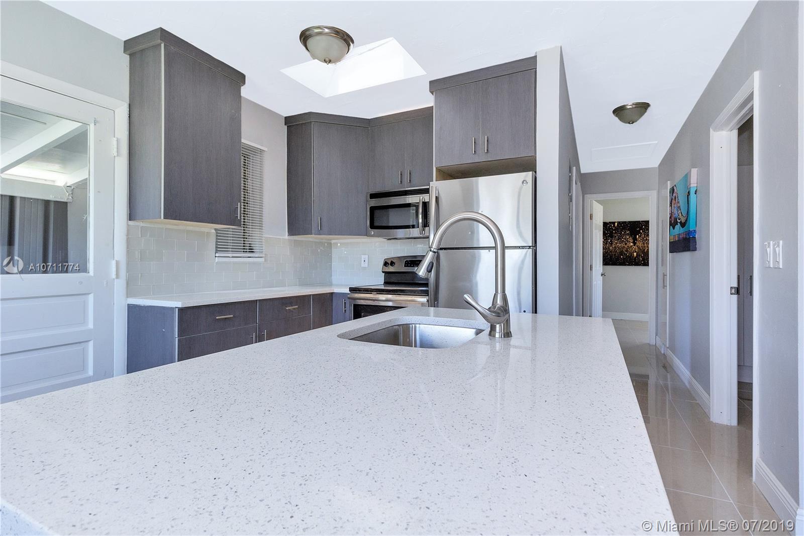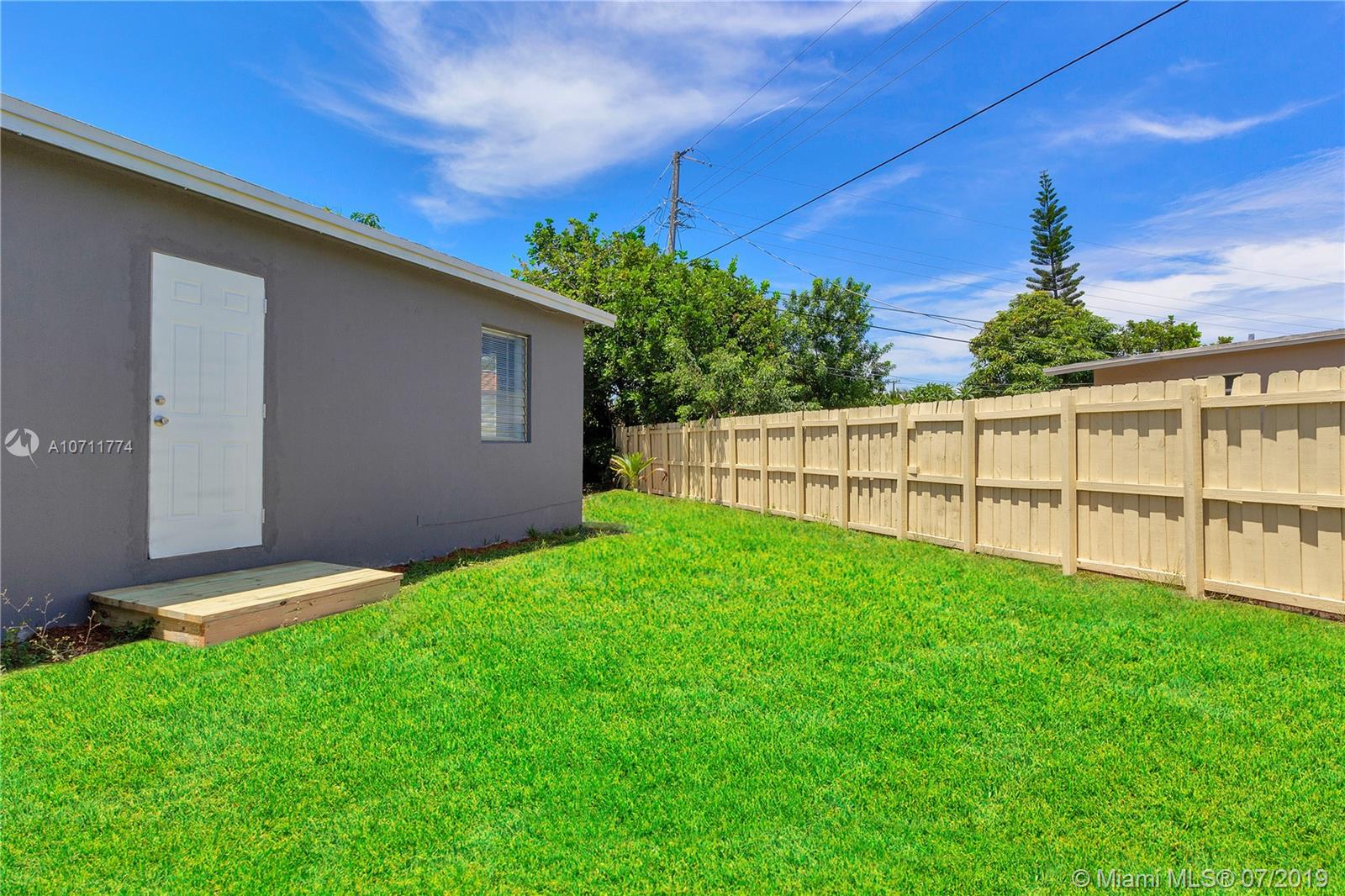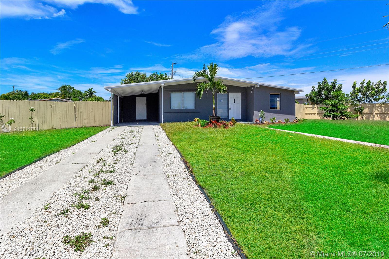 Fully renovated 4 bedroom 2 bathroom single family home sitting on a oversized corner lot. New porcelain floors throughout the house; brand new island kitchen cabinets with granite countertops, new backsplash and stainless steal GE appliances (stove, microwave, refrigerator and dishwasher). Fully renovated bathrooms with backsplash, new toilets, new vanities and granite countertops as well. Property also features a large front and back yard with a mango tree and an avocado tree. Brand new shed installed in the back yard, perfect for extra storage space. Easy to show, on lockbox; contact listing agent for showing instructions. All offers must be submitted with pre approval letter, proof of funds and escrow deposit letter. Property won’t last long!