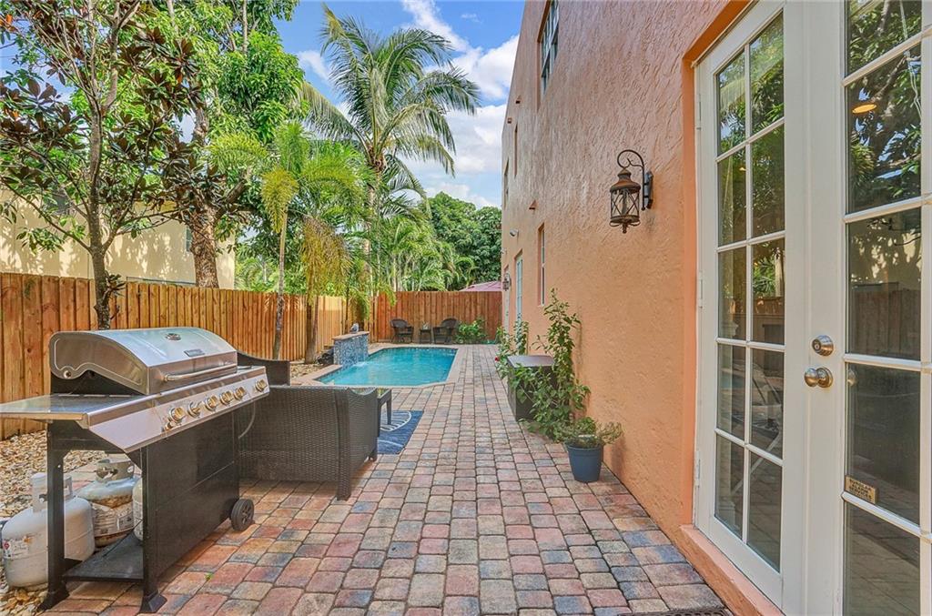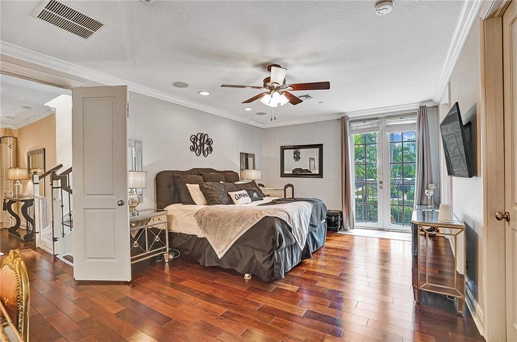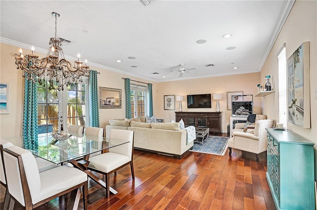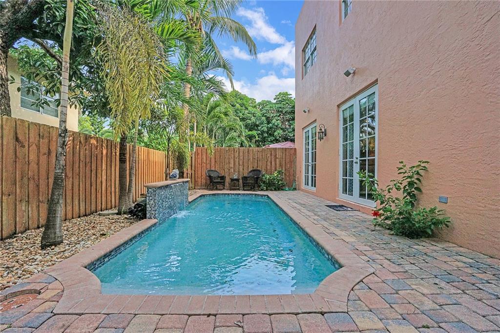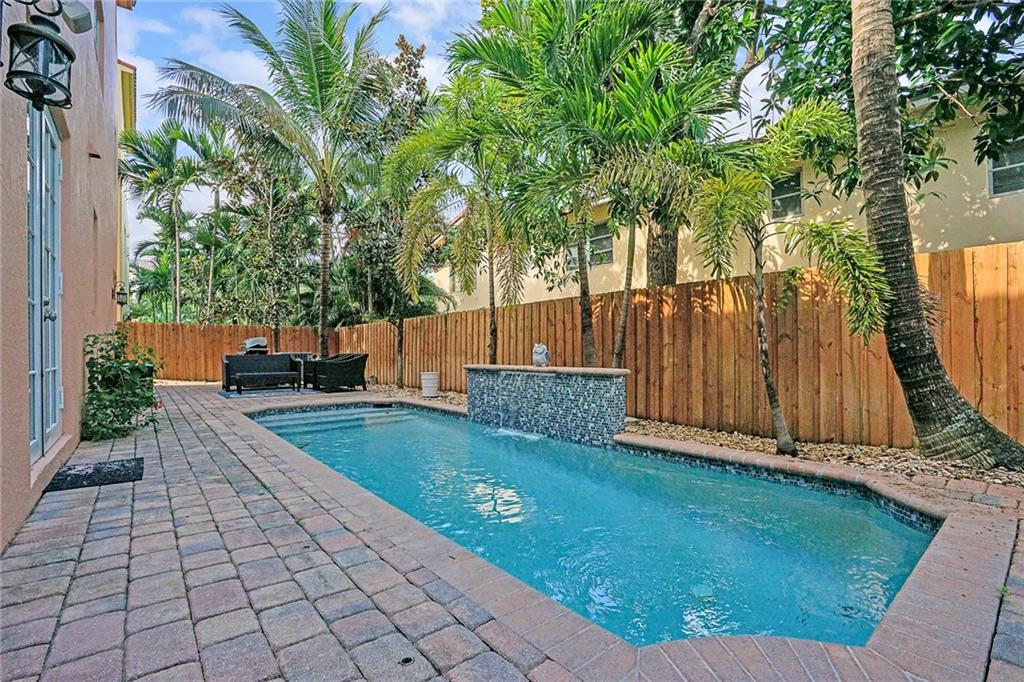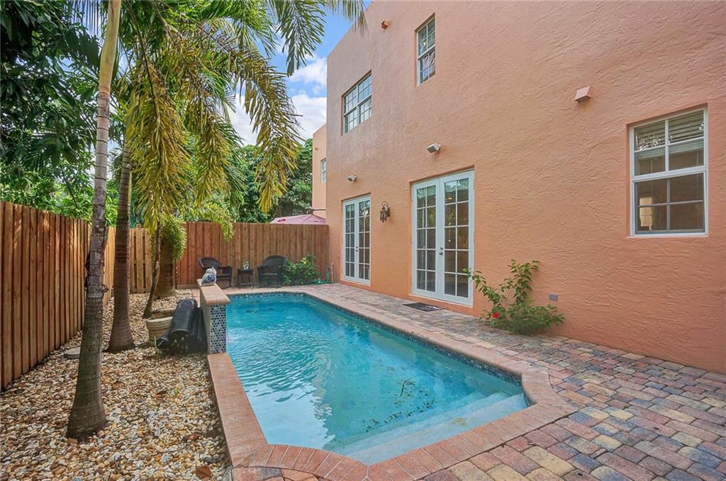 PRICED TO SELL!! Stunning 4/3.5 town-home with private swimming pool and tranquil waterfall. Largest unit in the complex with gorgeous wood flooring throughout, impact resistant windows/doors, 2 new A/C units, lots of storage and ceiling fans and speakers in every room! Large eat in kitchen with stainless steel appliances, wood cabinets, and granite counter-tops.