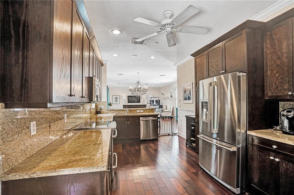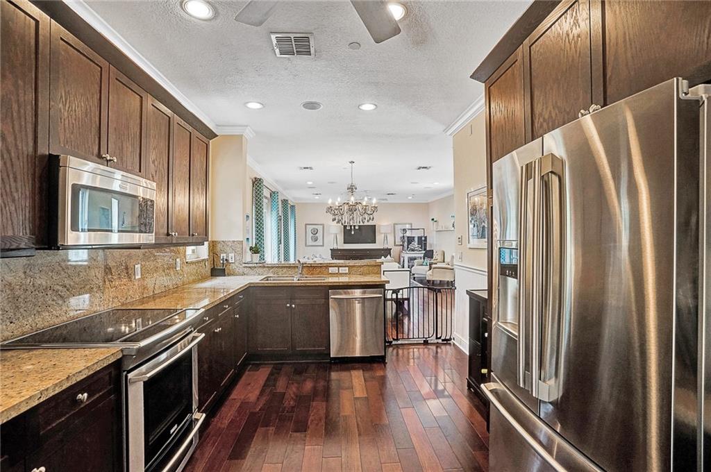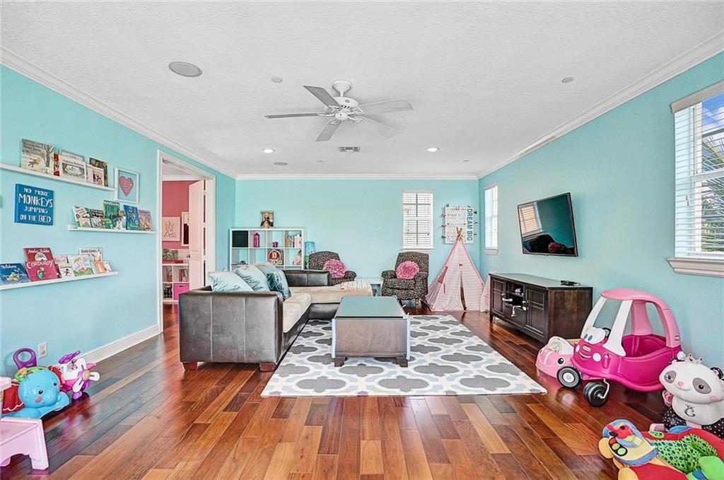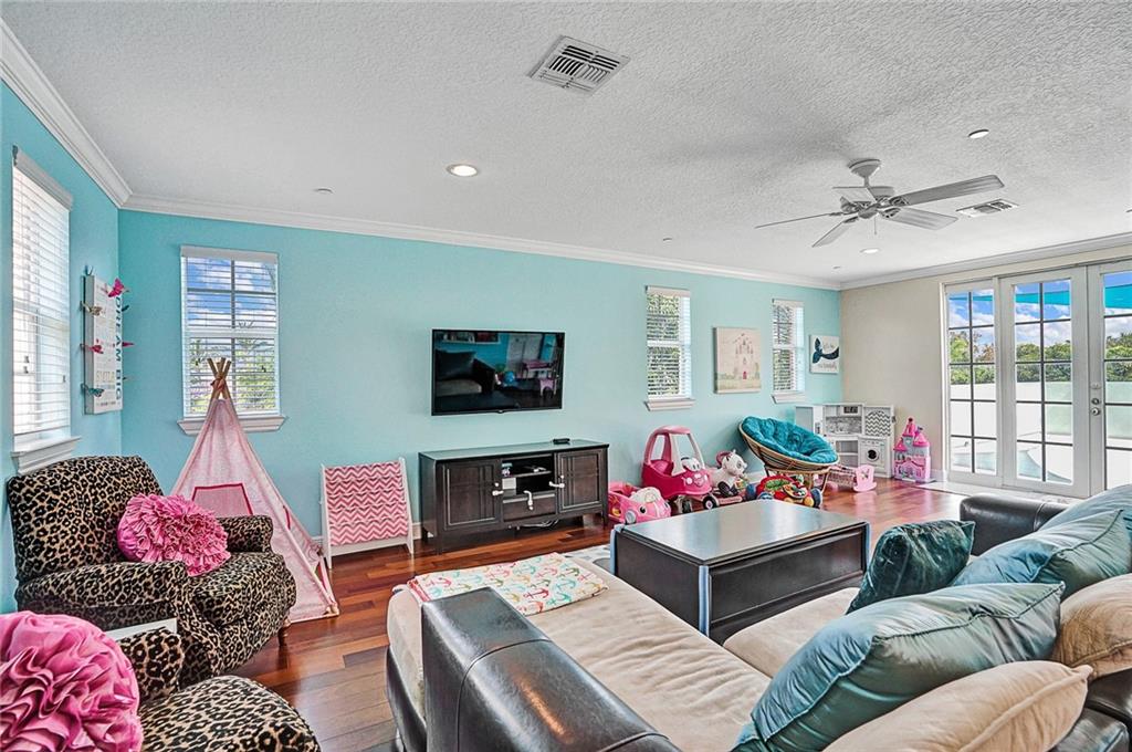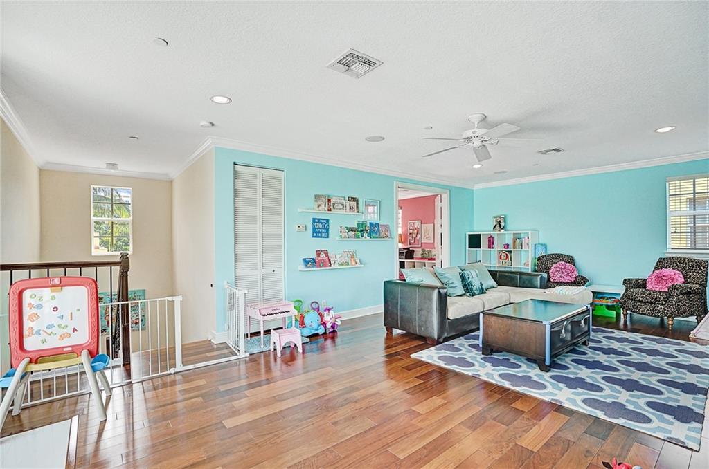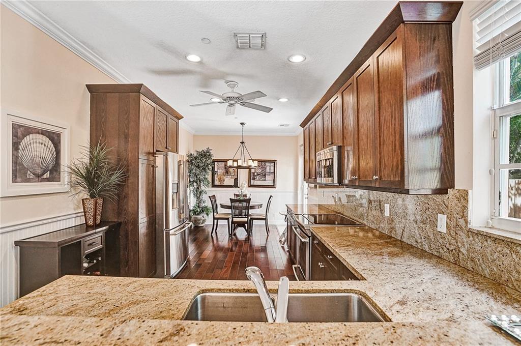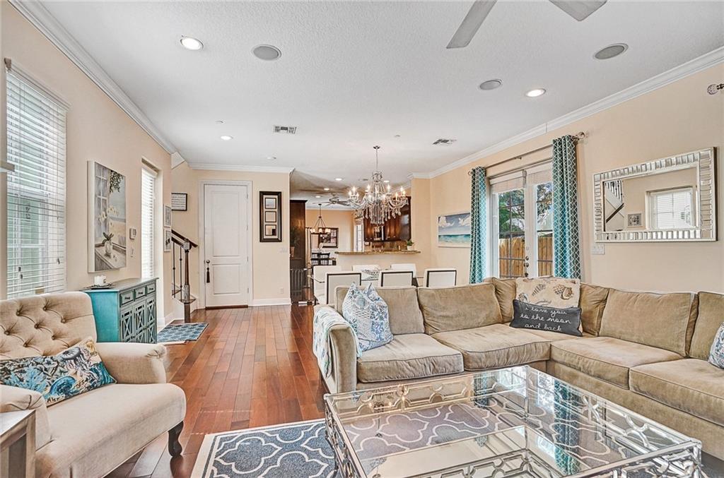 PRICED TO SELL!! Stunning 4/3.5 town-home with private swimming pool and tranquil waterfall. Largest unit in the complex with gorgeous wood flooring throughout, impact resistant windows/doors, 2 new A/C units, lots of storage and ceiling fans and speakers in every room! Large eat in kitchen with stainless steel appliances, wood cabinets, and granite counter-tops.